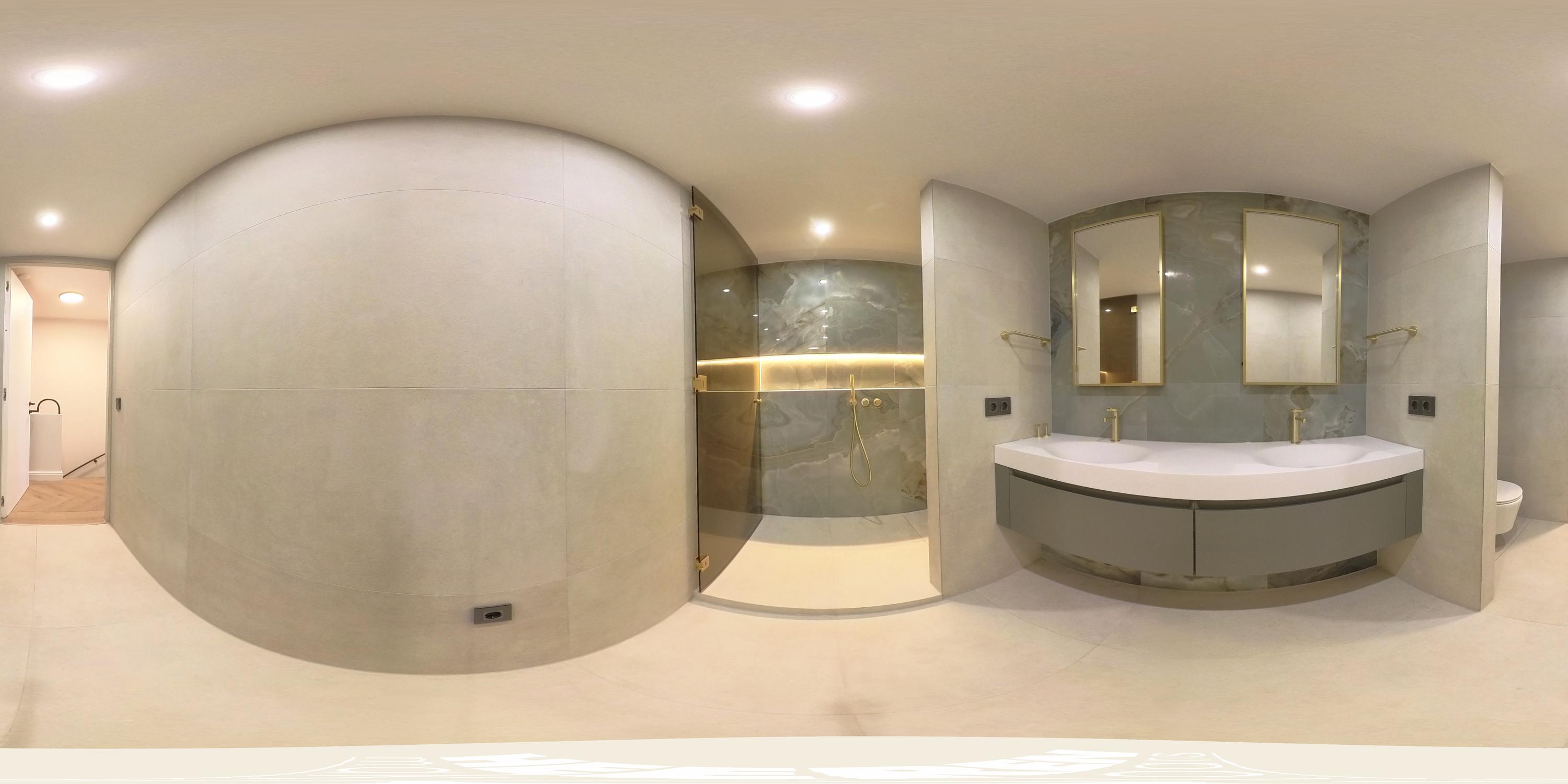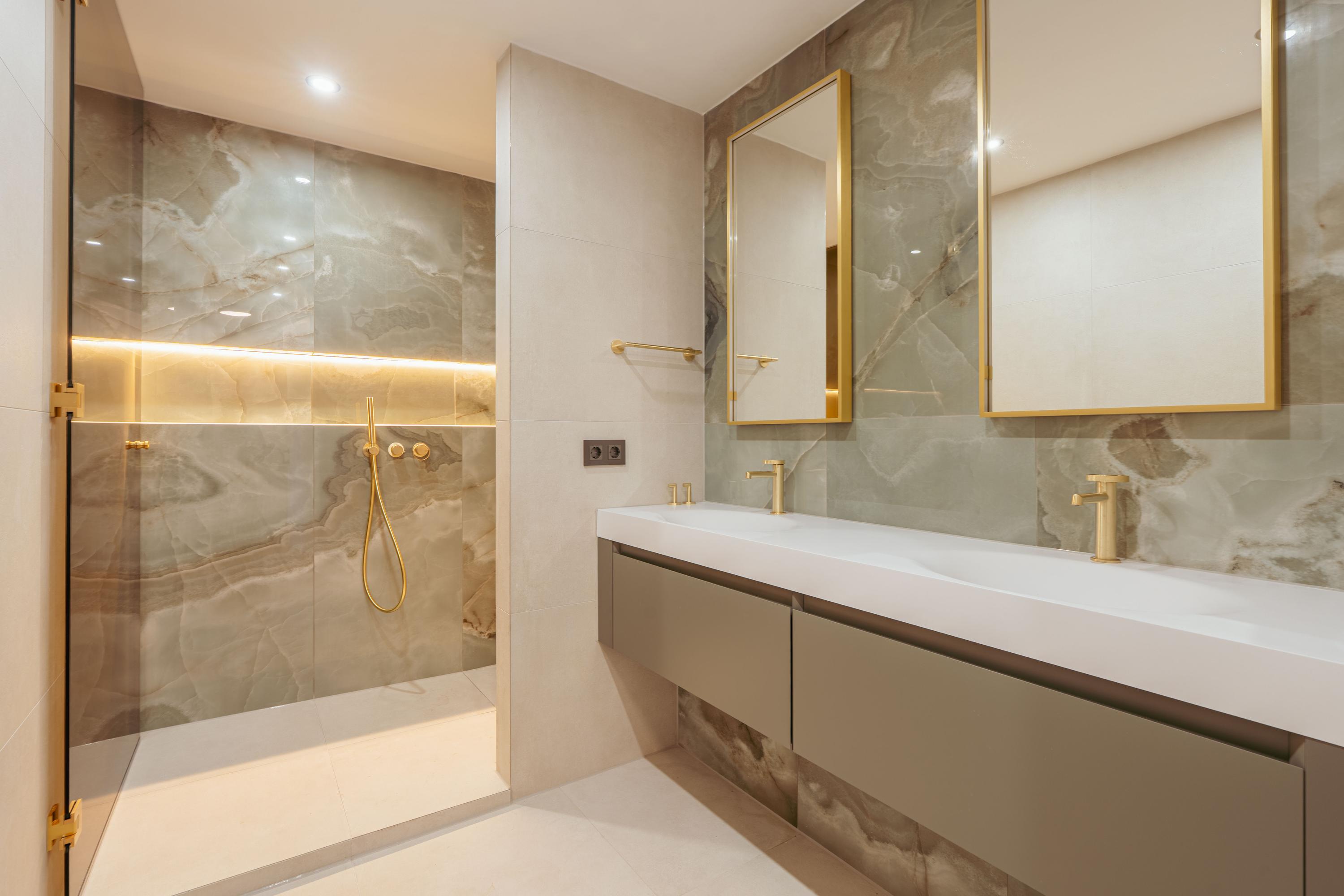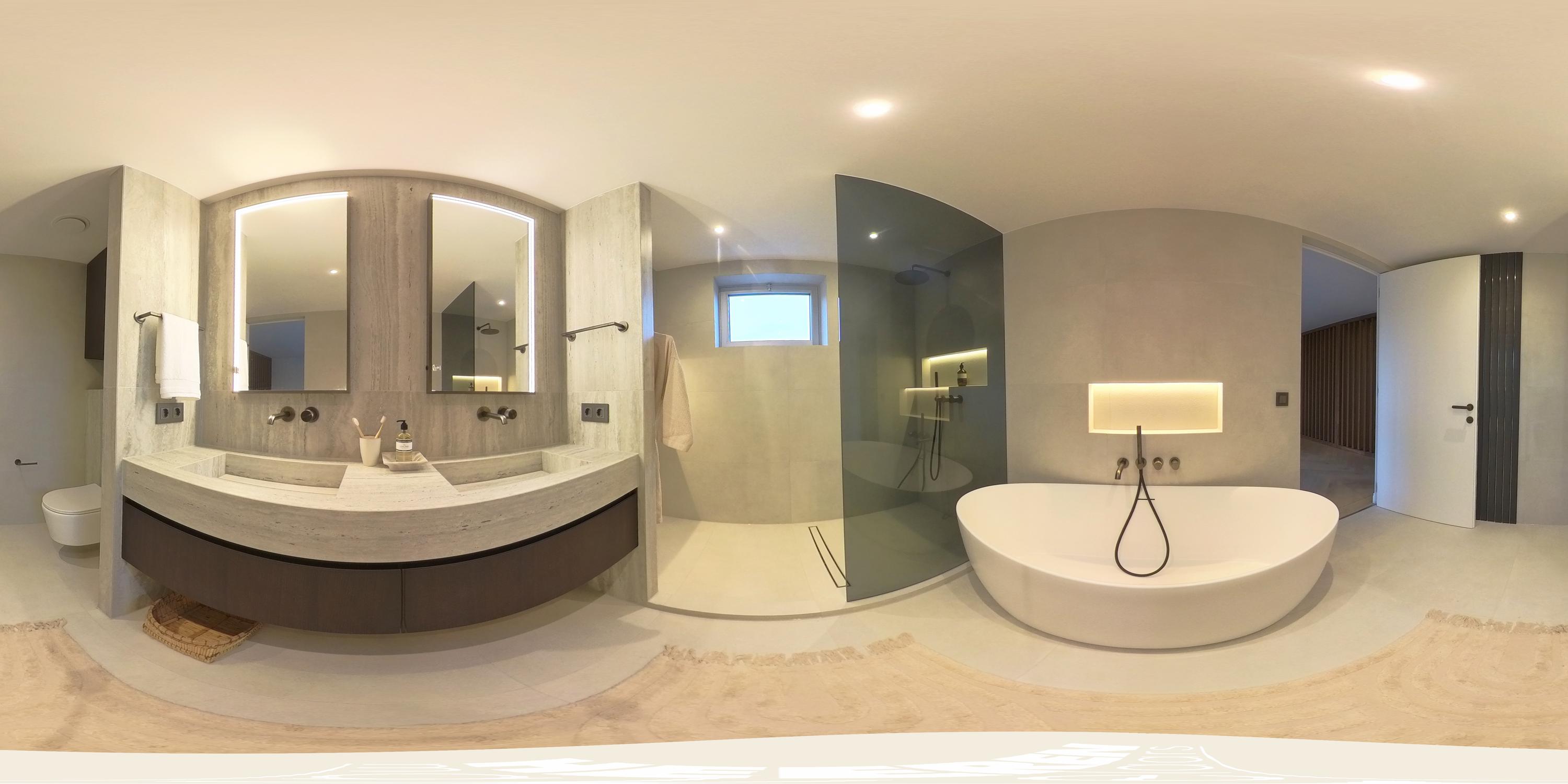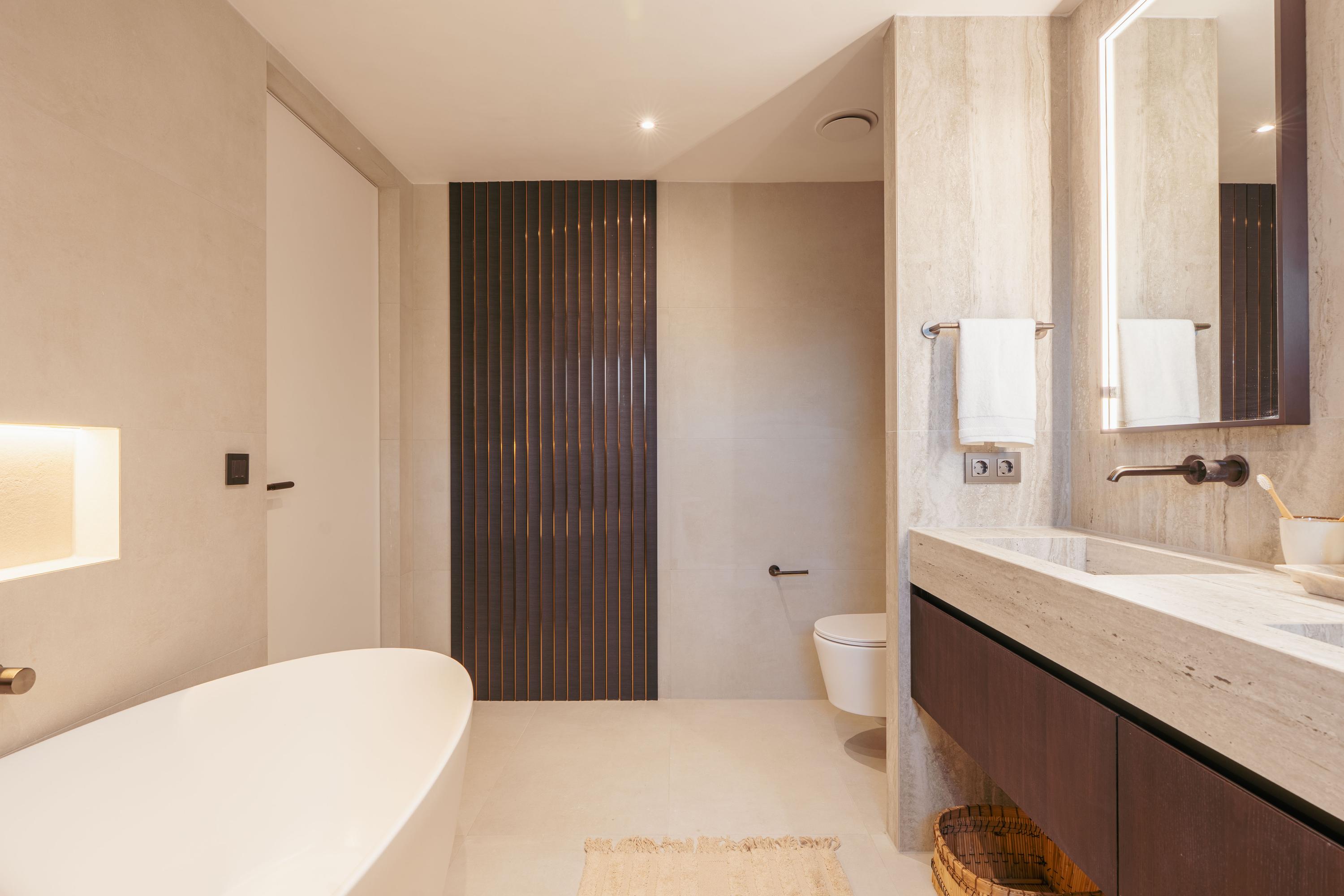 جزيرة المطبخ الأنيقة تدعمها مجموعة من الأجهزة الحديثة، وتغمرها إضاءة هادئة طوال المساء. الجناح الرئيسي بمساحة تقارب 22 متر مربع، مع إطلالة على سينجلغراخت، ويخدمه حمام داخلي هادئ مزود بحوض مستقل ودش مشي. في الطابق العلوي، تحافظ غرفتا نوم إضافيتان وحمام ثانٍ على توازن الشقة وخصوصيتها.