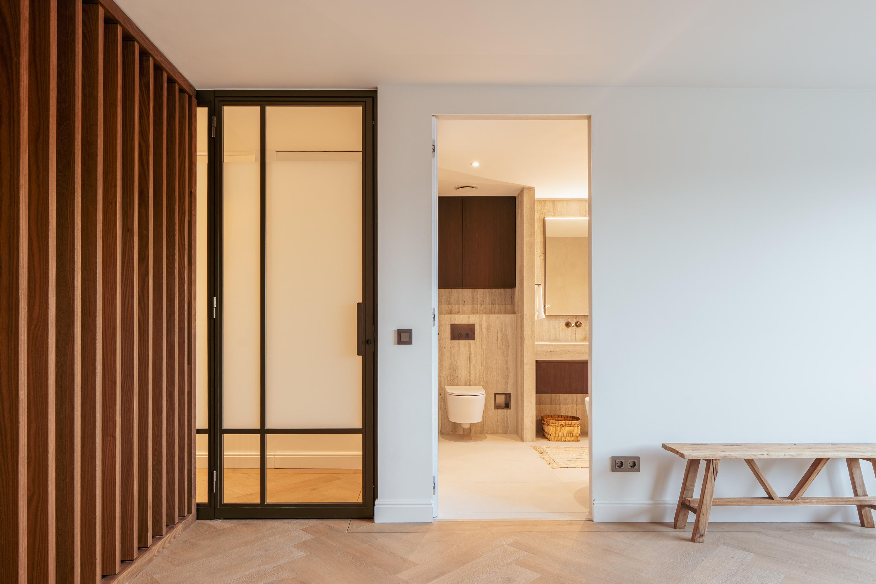 شقة أمستردام ستادهودركيد تمثل مثالًا راقيًا للمعيشة العصرية في قلب أمستردام، وتقع ضمن مجمع بيزنطيوم المرموق بجوار فوندل بارك. تم تجديد هذه الشقة بالكامل بمساحة 157 متر مربع وتمتد على مستويين، وتوفر خصوصية وترابطًا في آن واحد، مع ثلاث غرف نوم وحمامين، وهي مثالية لأولئك الذين يقدرون الجودة والمساحة. تتعزز مساحة المعيشة الرئيسية بنوافذ تمتد من الأرضية حتى السقف وأبواب منزلقة، وتنفتح على شرفة مواجهة للجنوب الغربي بمساحة تقارب 8 متر مربع، مما يسمح بدخول الضوء والانفتاح في جميع المواسم.