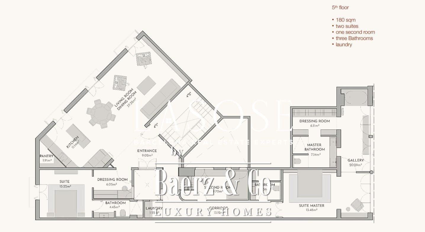 تضع شقة Flat Barcelona معيارًا هادئًا للمعيشة المعاصرة في قلب المدينة، حيث تحتل مساحة 184 مترًا مربعًا في الطابق الخامس لمبنى جُدد بالكامل في عام 2021. هذه الشقة المميزة تضم ثلاث غرف نوم وثلاثة حمامات، تم اختيار الأرضية الباركيه الخشبية الطبيعية فيها بعناية بجانب النوافذ المزدوجة عالية الأداء التي تحافظ على الهدوء والراحة. يضمن نظام التكييف المركزي والتدفئة بمضخة حرارية تحكمًا مثاليًا في المناخ الداخلي طوال العام.