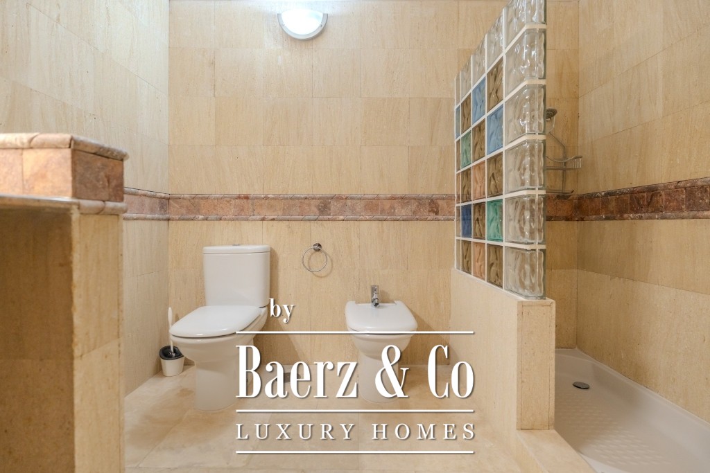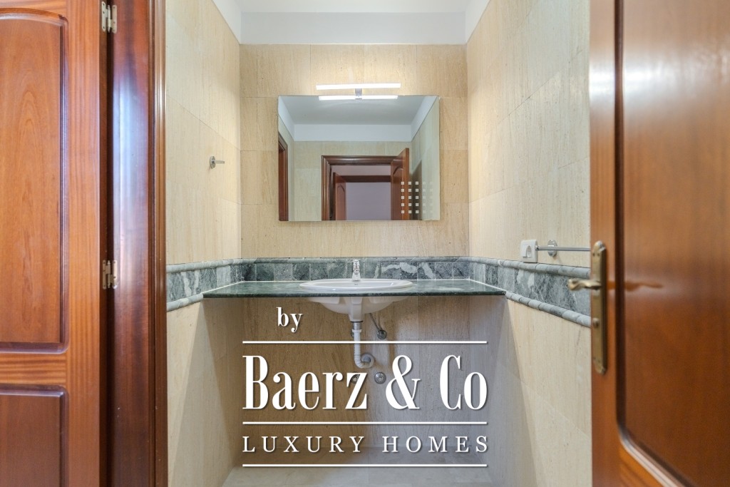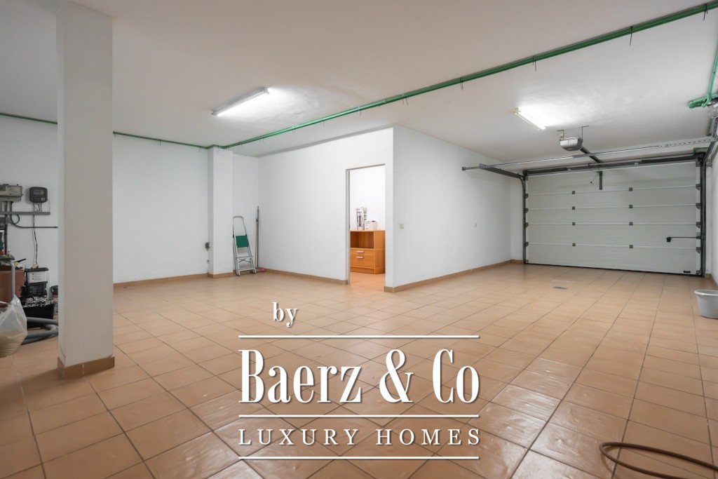في الأسفل، يوجد قبو بمساحة 77 متر مربع يضم جراجاً خاصاً يتسع لسيارتين إلى ثلاث سيارات، وغرفة تخزين، ومساحة تخزين تحت الدرج. يتمتع السكان بحوضي سباحة مشتركين، أحدهما مدفأ، محاطين بمناطق خضراء هادئة ومُعتنى بها جيداً. تبلغ رسوم المجتمع السكني 265 يورو شهرياً، وضريبة IBI السنوية 925 يورو، مما يعكس التوازن النادر بين سهولة الوصول والخصوصية والراحة لهذه الفيلا.