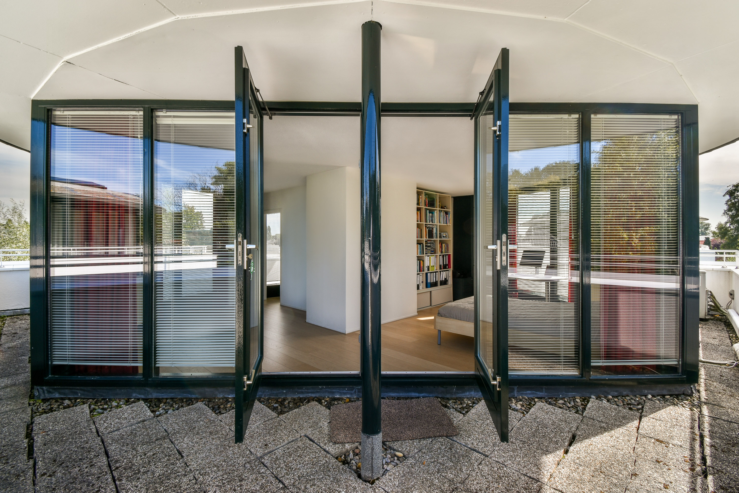 فيلا منفصلة في دوردريخت تُجسّد تلاقيًا نادرًا بين الروعة المعمارية ورفاهية العيش، وتقع في منتزه بورخمايستر بييليرتس، أحد أرقى الأحياء في دوبلدام. هذا السكن البالغة مساحته 197 م²، من تصميم المعماري الشهير سيز دام والمكتمل عام 1995، يجمع بين الخطوط النقية والمنحنيات الأنيقة، ما يمنحه حضورًا تعبيريًا متوازنًا ومتناغمًا. جسر خاص يقود إلى المدخل، مشترَك فقط مع العقار المجاور، فيما تفتح قطعة الأرض المشذبة بمساحة 497 م² على المياه من الجهة الأمامية وحديقة مواجهة للغرب تغمرها الشمس من الخلف.