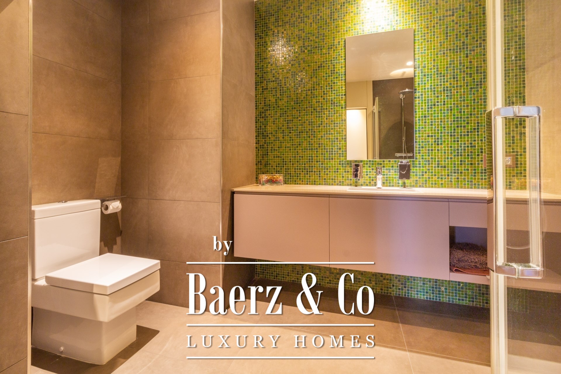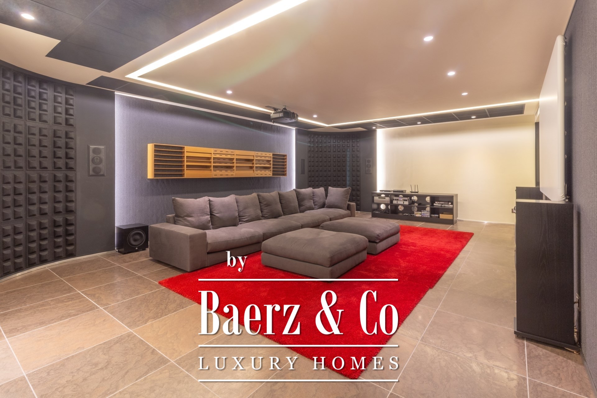 في الخارج، تحيط الحدائق الناضجة بالمسبح مع شلال، ومطبخ خارجي مع منطقة شواء، ومساحات جلوس واسعة للاسترخاء. تدفئة أرضية، وتكييف مركزي عبر القنوات، ونوافذ كهربائية، وصوت مدمج، ونظام مراقبة متكامل، ومصعد جميعها تؤكد على معايير الراحة والأمان.