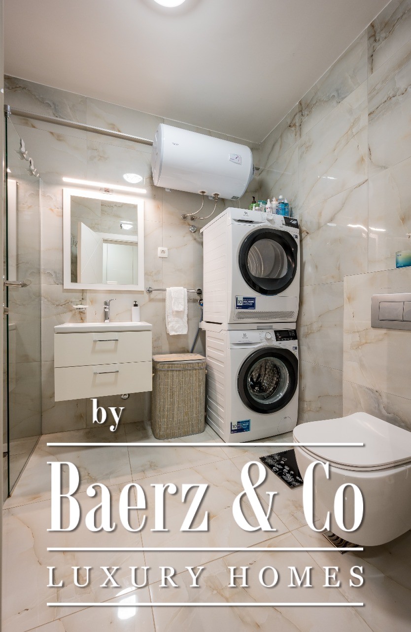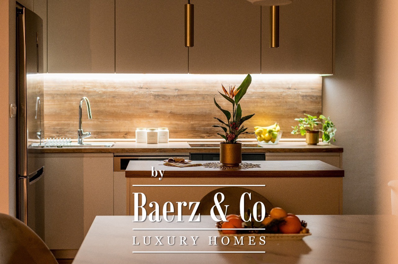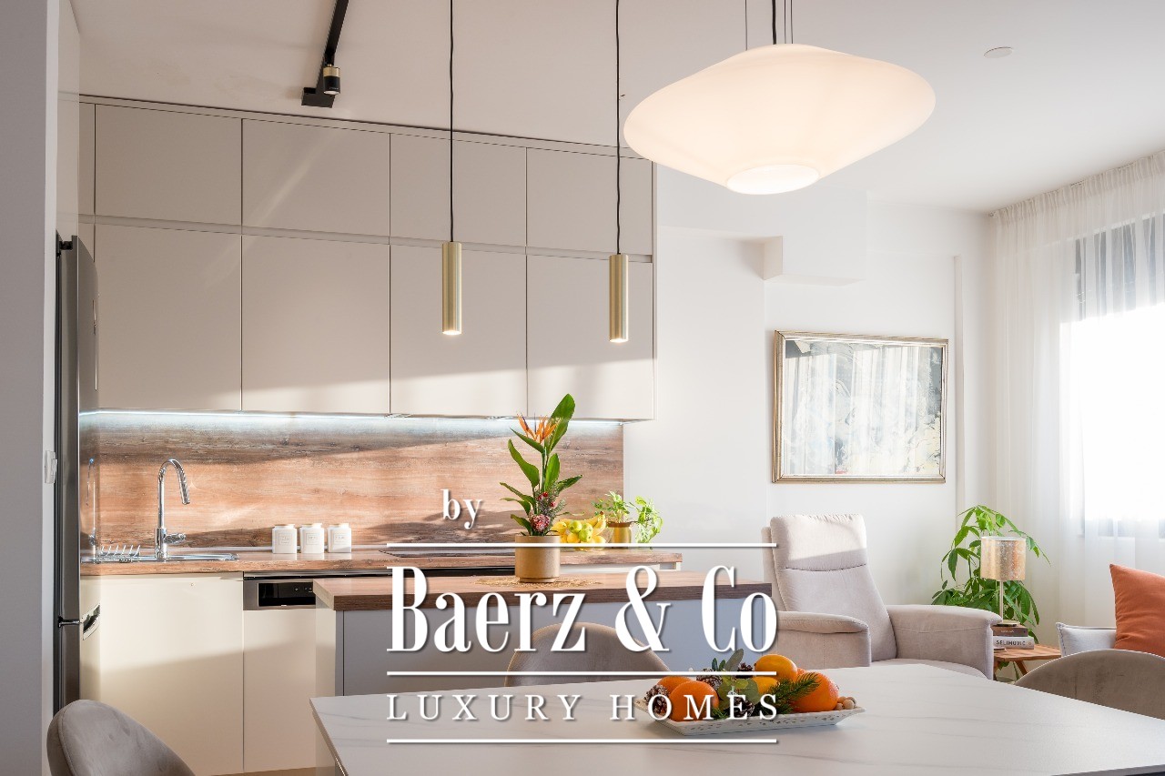 تصميم الشقة يعزز أسلوب الحياة المتوسطي مع ممر يقود إلى مساحة معيشة ذات تخطيط مفتوح تضم المطبخ ومنطقة الطعام. النوافذ الكبيرة تبرز إطلالات بحرية مريحة، بينما تدعو غرفتا النوم والتراس أشعة الشمس والهواء النقي على مدار اليوم. حمام واحد وأثاث مُختار بعناية يضفيان الفخامة والاستعداد للانتقال الفوري، سواء للإقامة الخاصة أو لاستثمار الإيجار.