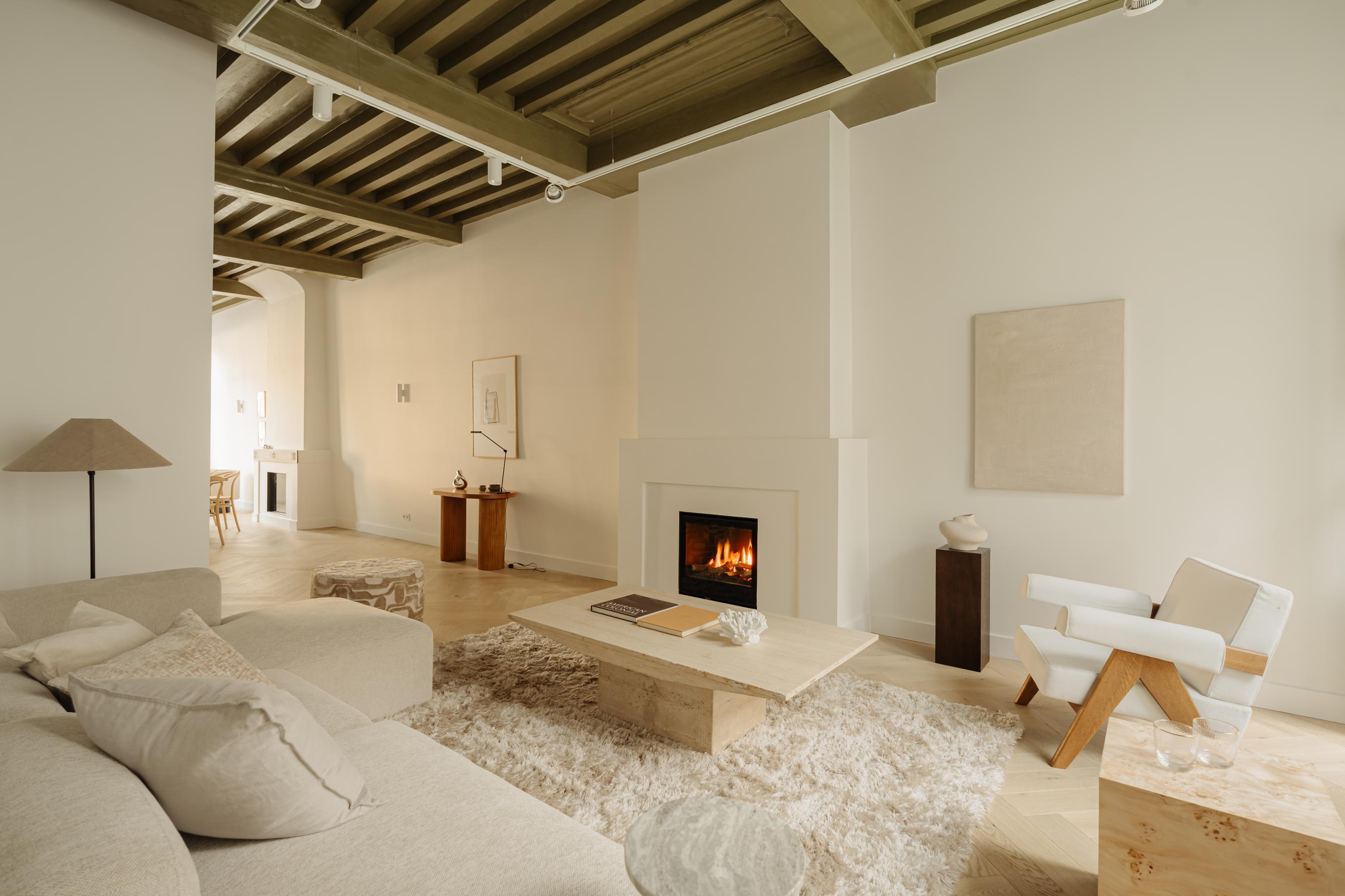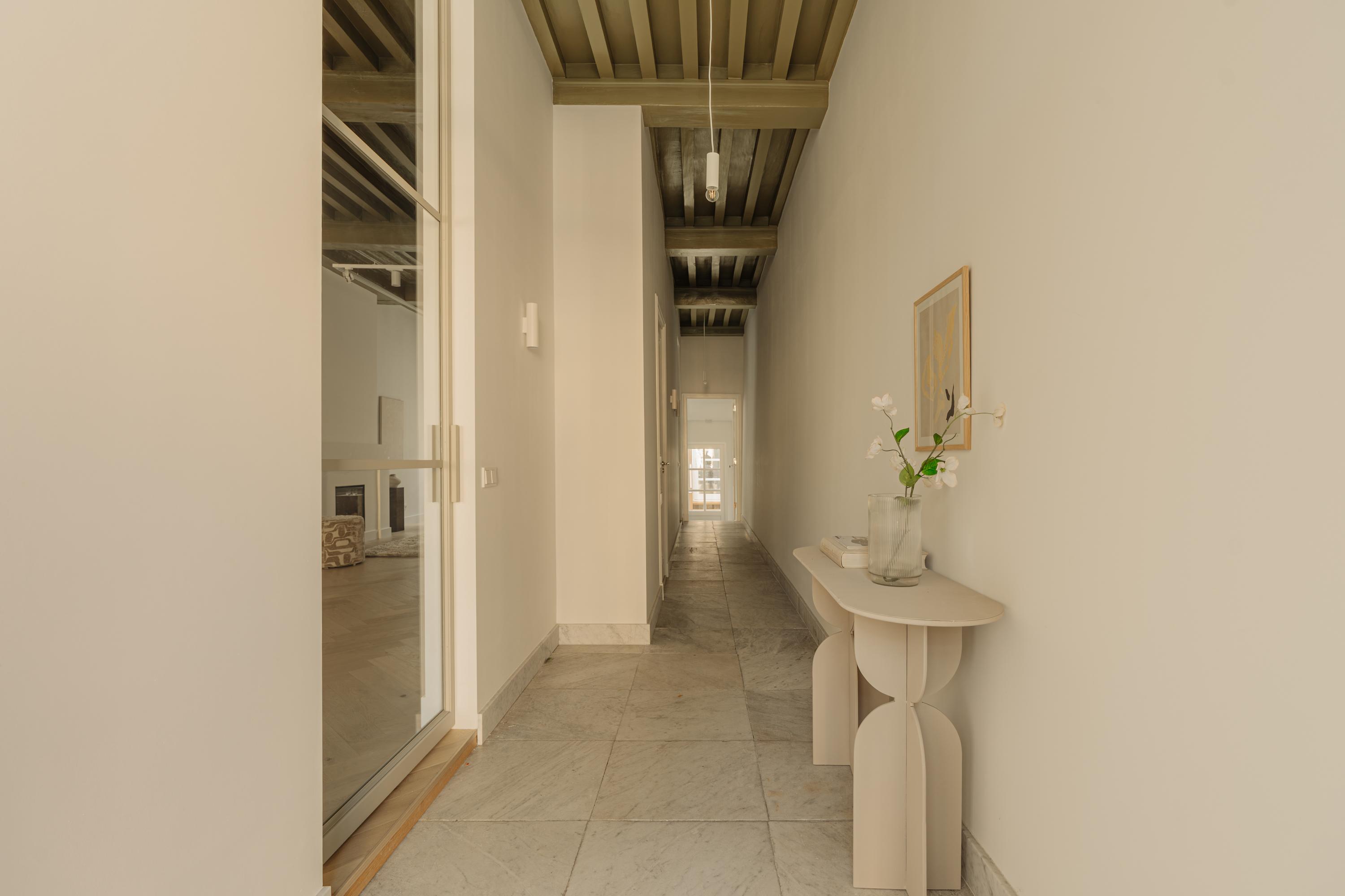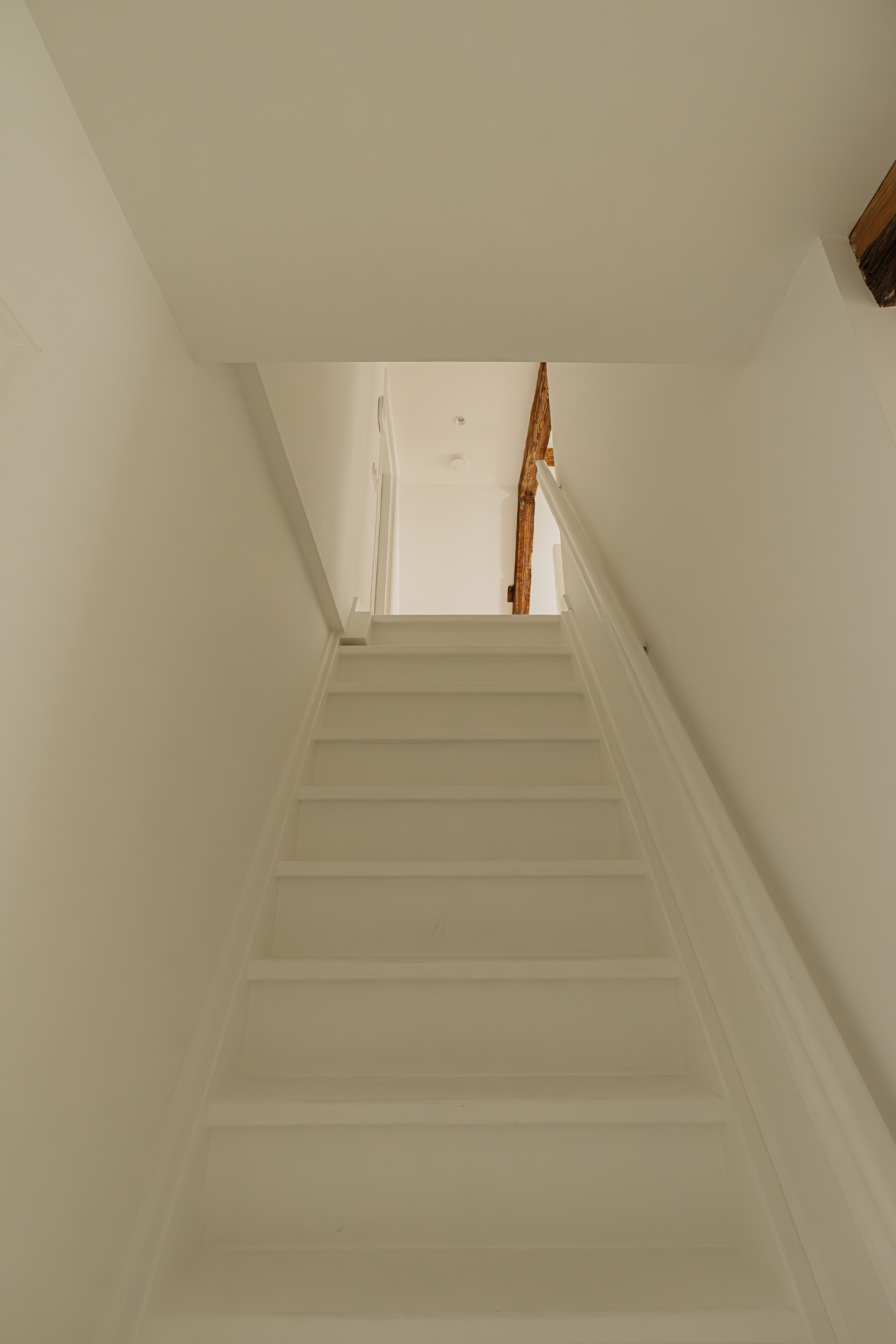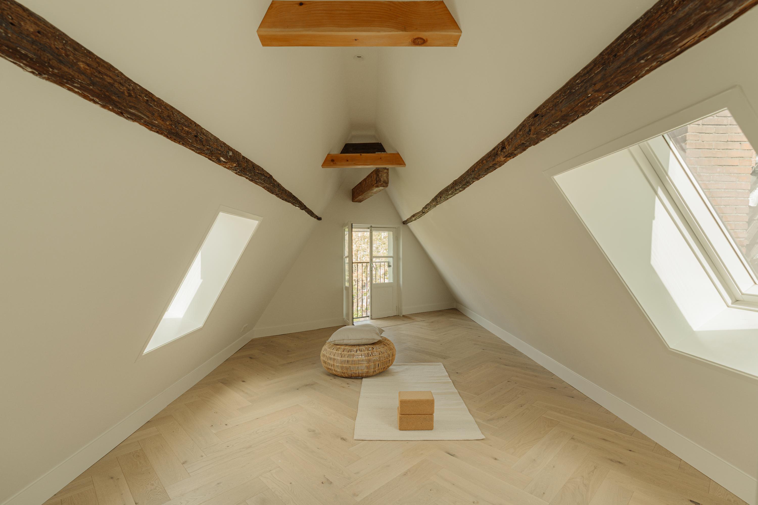 Die erste und zweite Etage beherbergen eine Reihe von Schlafzimmern, die jeweils mit ruhigen Materialien und maßgefertigten Einbauschränken ausgestattet sind. Die Hauptsuite bietet Ausblick zum Wasser, einen französischen Balkon, eine freistehende Badewanne und ein Ensuite-Bad aus Naturstein und Holz. Weitere Schlafzimmer blicken auf die Innenhöfe und eignen sich für Gäste oder flexible Nutzung. Das dritte Obergeschoss umfasst zwei weitere Zimmer, wobei der rückwärtige Bereich Zugang zur Dachterrasse mit Blick über die historische Stadtsilhouette bietet.