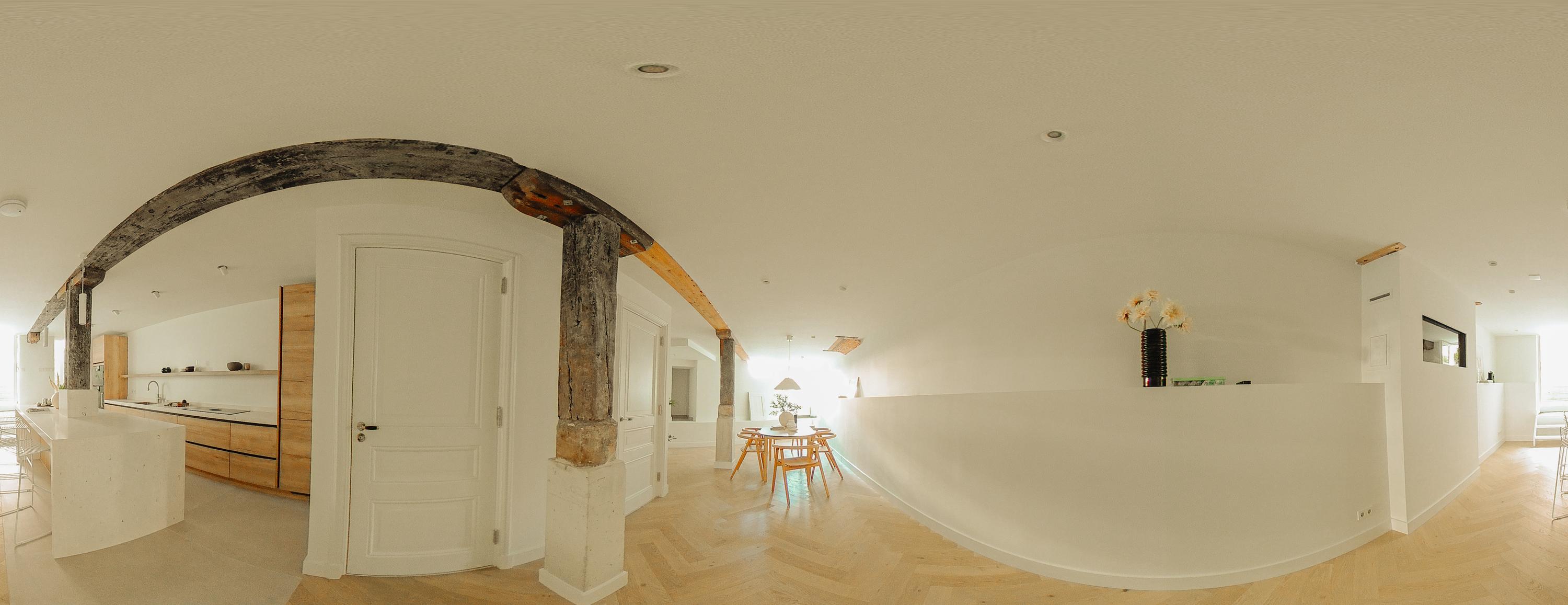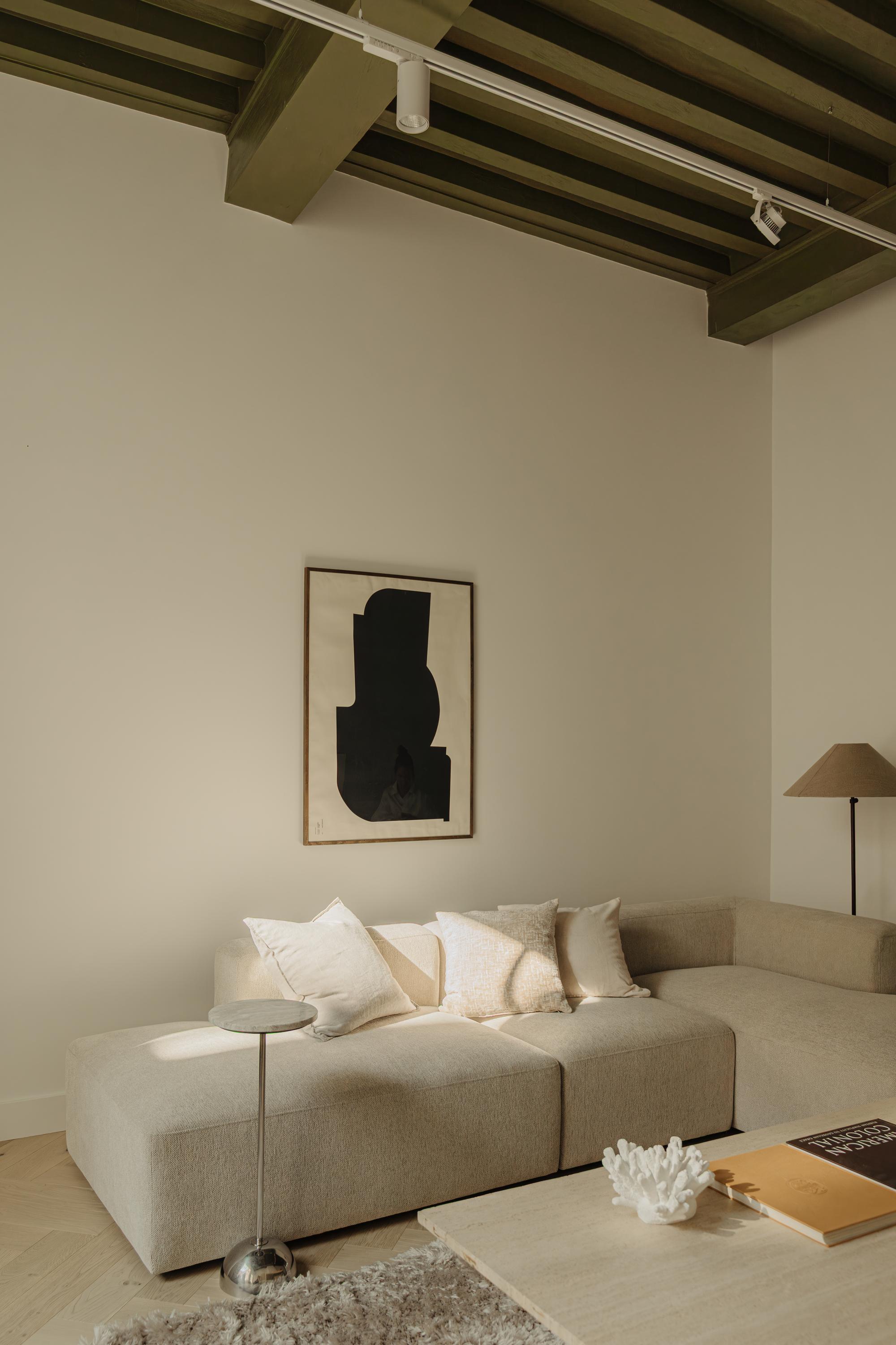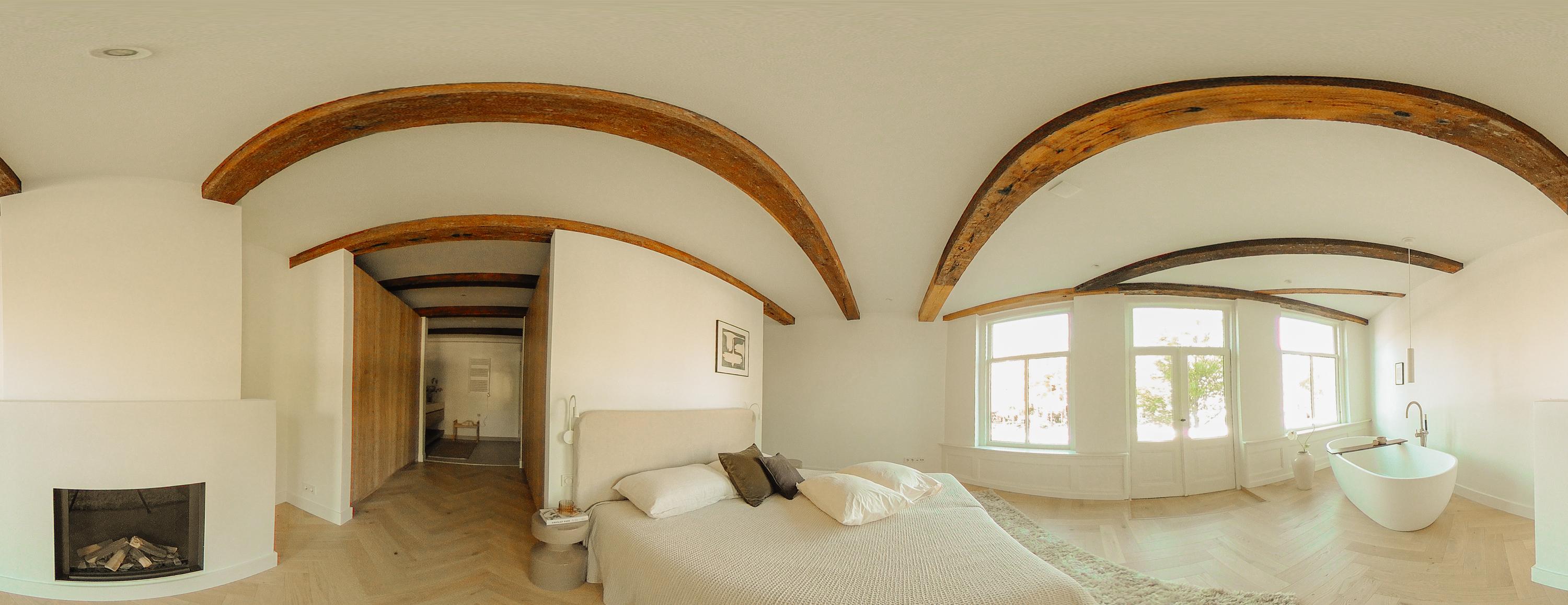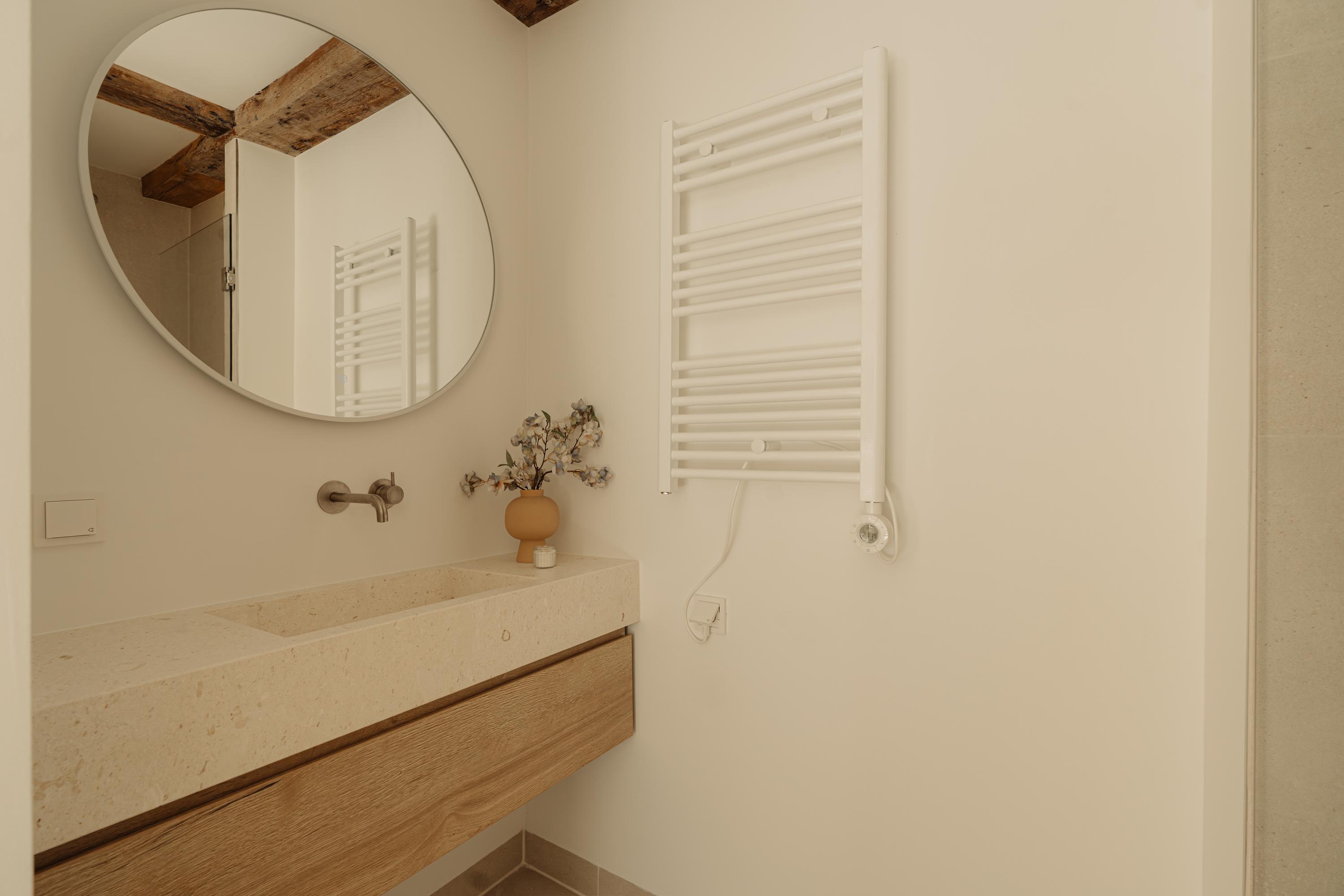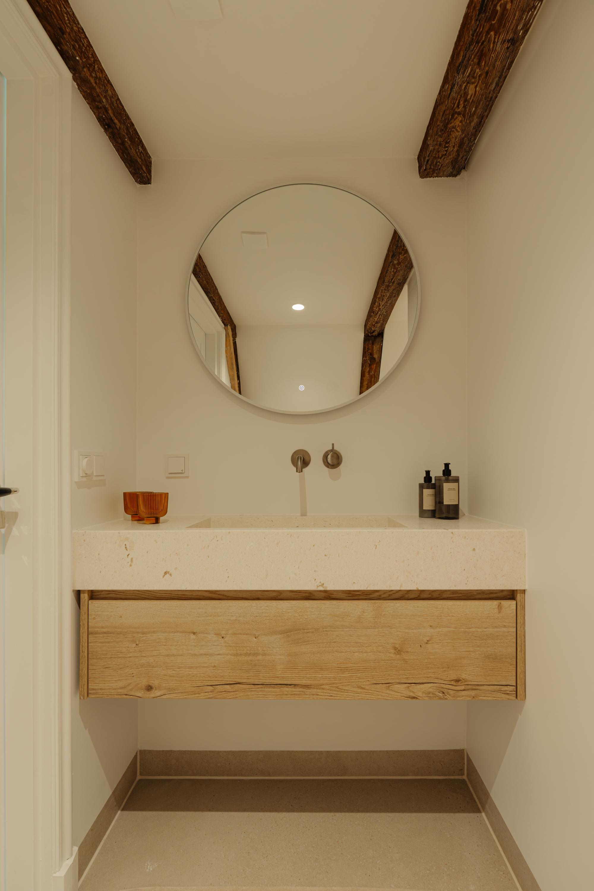 Die erste und zweite Etage beherbergen eine Reihe von Schlafzimmern, die jeweils mit ruhigen Materialien und maßgefertigten Einbauschränken ausgestattet sind. Die Hauptsuite bietet Ausblick zum Wasser, einen französischen Balkon, eine freistehende Badewanne und ein Ensuite-Bad aus Naturstein und Holz. Weitere Schlafzimmer blicken auf die Innenhöfe und eignen sich für Gäste oder flexible Nutzung. Das dritte Obergeschoss umfasst zwei weitere Zimmer, wobei der rückwärtige Bereich Zugang zur Dachterrasse mit Blick über die historische Stadtsilhouette bietet.
