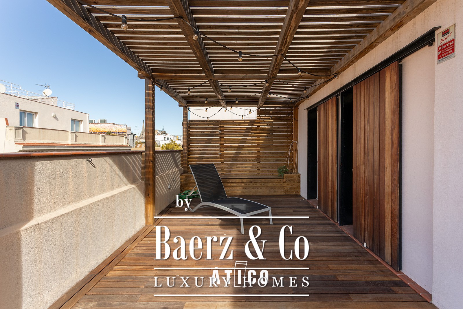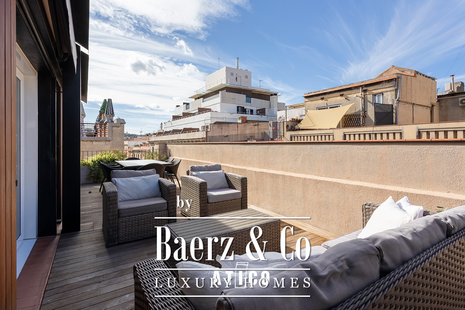 Das Penthouse Barcelona bietet ein Wohnerlebnis, das von Raum, Licht und bleibenden Stadtblicken geprägt ist. Diese möblierte Immobilie präsentiert 105 m² modern gestaltetes Interieur, ergänzt durch eine 80 m² große Terrasse, die das Herz der Stadt einrahmt und zu ruhigen Morgenstunden oder intimen Sommerdinners einlädt. Die durchdachte Ausrichtung des Penthouses sorgt für reichlich Tageslicht, während die offene Terrasse die pulsierende Energie Barcelonas widerspiegelt.