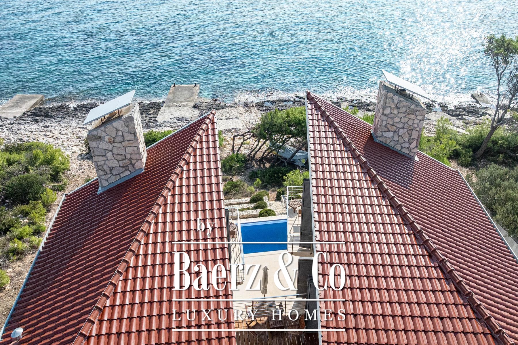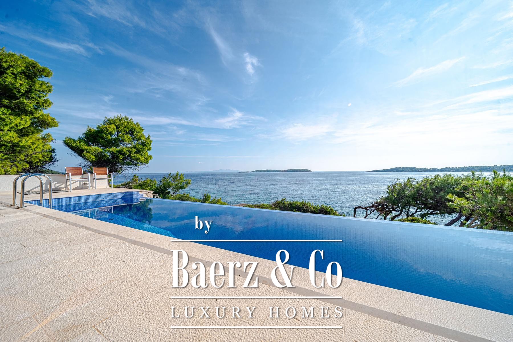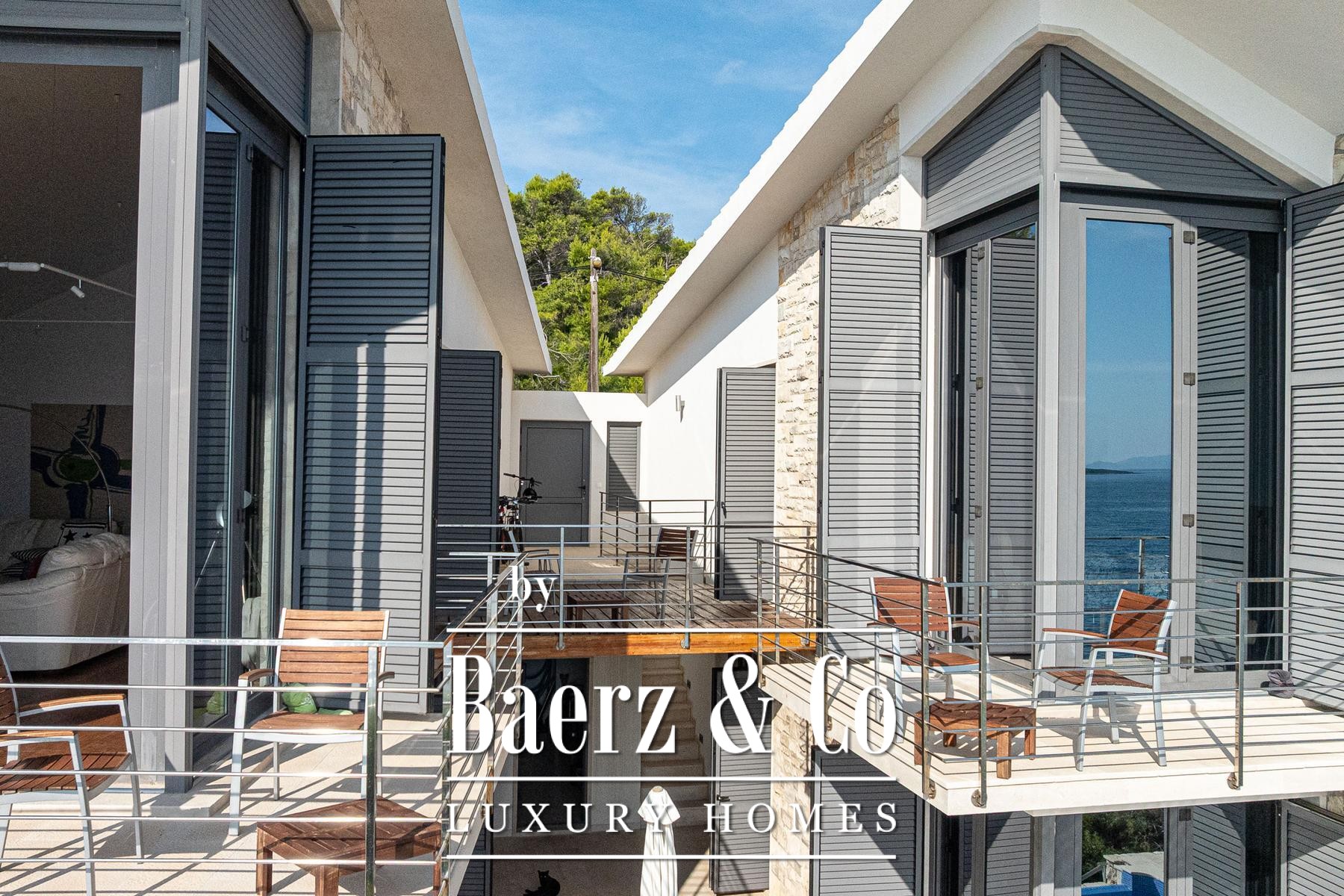 Diese Villa Blato liegt direkt am Meer in Kroatien und bietet 260 m² Wohnfläche auf einem 500 m² großen Grundstück. Architektonische Klarheit prägt die Residenz, bestehend aus zwei unabhängigen Einheiten, die durch großzügige Terrassen verbunden sind, wobei jede als eigenständiges Zuhause fungiert. Das Hauptgeschoss beider Einheiten verfügt über offene Wohn-, Ess- und Küchenbereiche, während im Obergeschoss jeweils zwei Schlafzimmer mit eigenen Bädern und privaten Terrassen untergebracht sind.