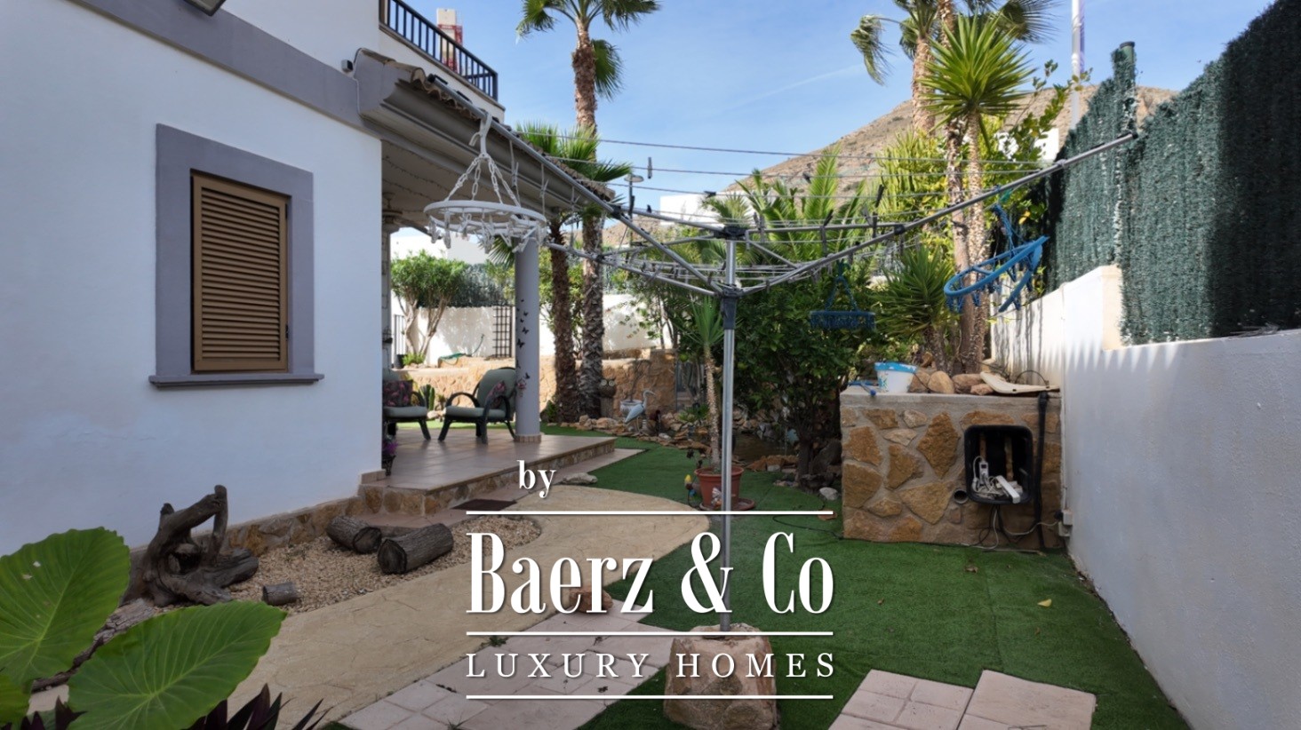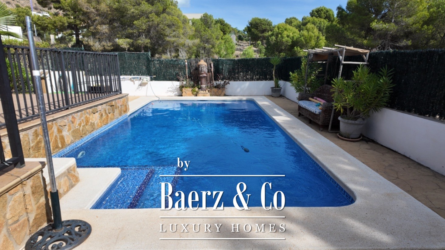 Diese freistehende Villa in Finestrat befindet sich in einem diskreten, ruhigen Umfeld, nur 15 Minuten von den Stränden Benidorms entfernt. Auf einem 490 m² großen Grundstück bietet die Residenz einen pflegeleichten Garten, einen privaten Pool sowie komfortable Parkmöglichkeiten für einen anspruchsvollen Alltag. Mit 180 m² Wohnfläche auf zwei Etagen verfügt die Villa über drei Schlafzimmer mit Einbauschränken, zwei En-Suite-Bäder, ein Gäste-WC und einen hellen Wohn- und Essbereich mit Kamin, eingerahmt von doppelt verglasten Fenstern.