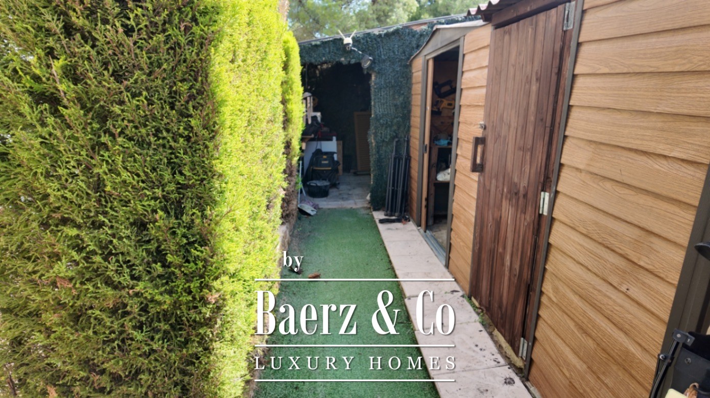 Eine Vielzahl von Annehmlichkeiten – darunter Abstellraum, Sicherheitstür sowie offene und überdachte Terrassen – unterstreichen das Gefühl von Geborgenheit und Komfort. Das eingezäunte Grundstück und die zeitlosen Ausstattungen garantieren Privatsphäre und Ruhe – typisch für diese elegante Luxusvilla in Finestrat.