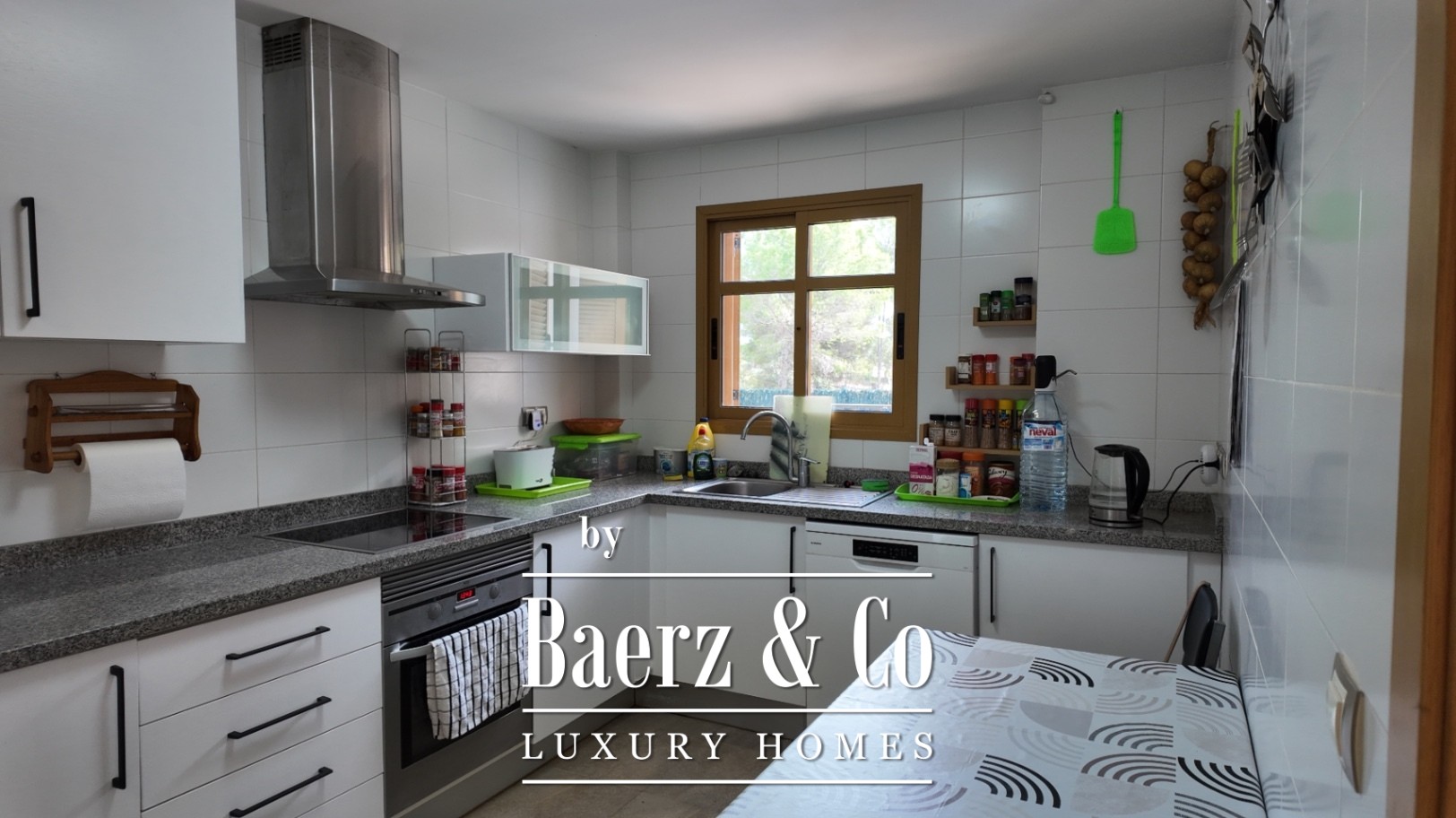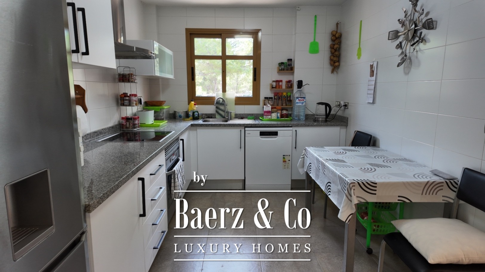 Kanal-Klimaanlage sorgt im gesamten Haus für angenehmes Klima. Die moderne Küche ist voll ausgestattet und ermöglicht müheloses Bewirten. Im Obergeschoss eröffnet sich ein weiter Ausblick bis hin nach Benidorm und zum Mittelmeer, sodass das Innere mit natürlichem Licht durchflutet und das Raumgefühl verstärkt wird. Hochwertige Materialien und eine dezente mediterrane Architektur prägen das Gebäude, das sich ideal als Dauerwohnsitz oder als ruhiges Refugium an der Küste eignet.
