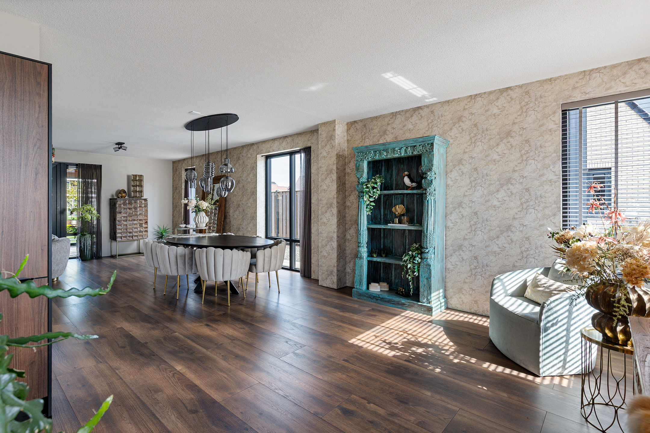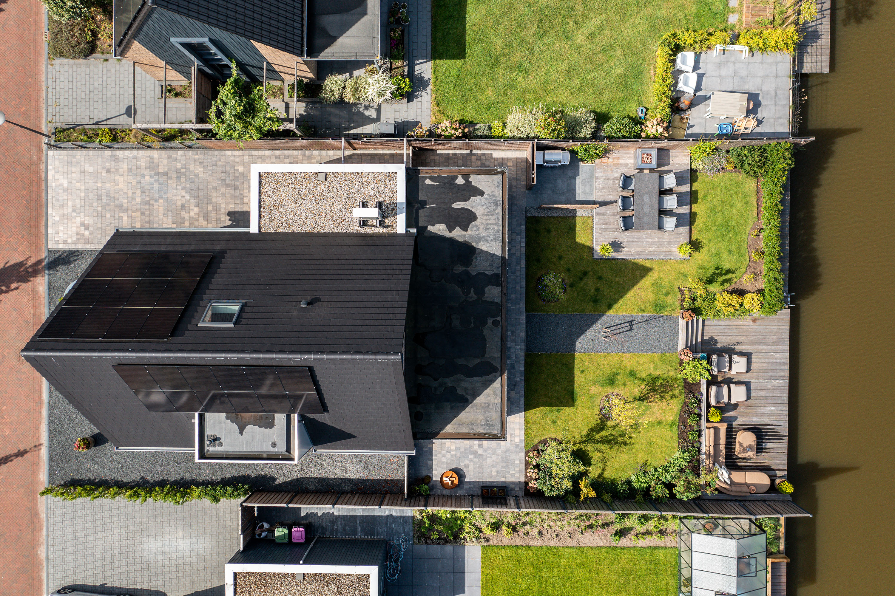 Villa Franeker ist ein herausragendes Beispiel für zeitgemäßes Wohnen am Wasser und liegt direkt am offenen Wasser im eleganten Neubauviertel Franeker-Zuid. Diese Villa vereint architektonische Präzision mit energetischer Neutralität und erreicht mit einem Wärmepumpensystem und 24 Solarpaneelen die Energieeffizienzklasse A++++. Die Wohnfläche von 188 m² erstreckt sich über drei Ebenen und umfasst vier Schlafzimmer sowie ein luxuriös ausgestattetes Bad, das ein dezentes Raumgefühl vermittelt. Eine großzügige Diele führt in den offenen Wohnbereich, in dem moderne Dreh-Kipp-Fenster viel Tageslicht auf die Fußbodenheizung lassen. Die maßgefertigte Designerküche verfügt über robuste Keramikarbeitsplatten und integrierte Premiumgeräte. Ein lichtdurchfluteter Gartenraum mit komplett zu öffnender Glasfront erweitert das Wohnambiente in den professionell angelegten Außenbereich.