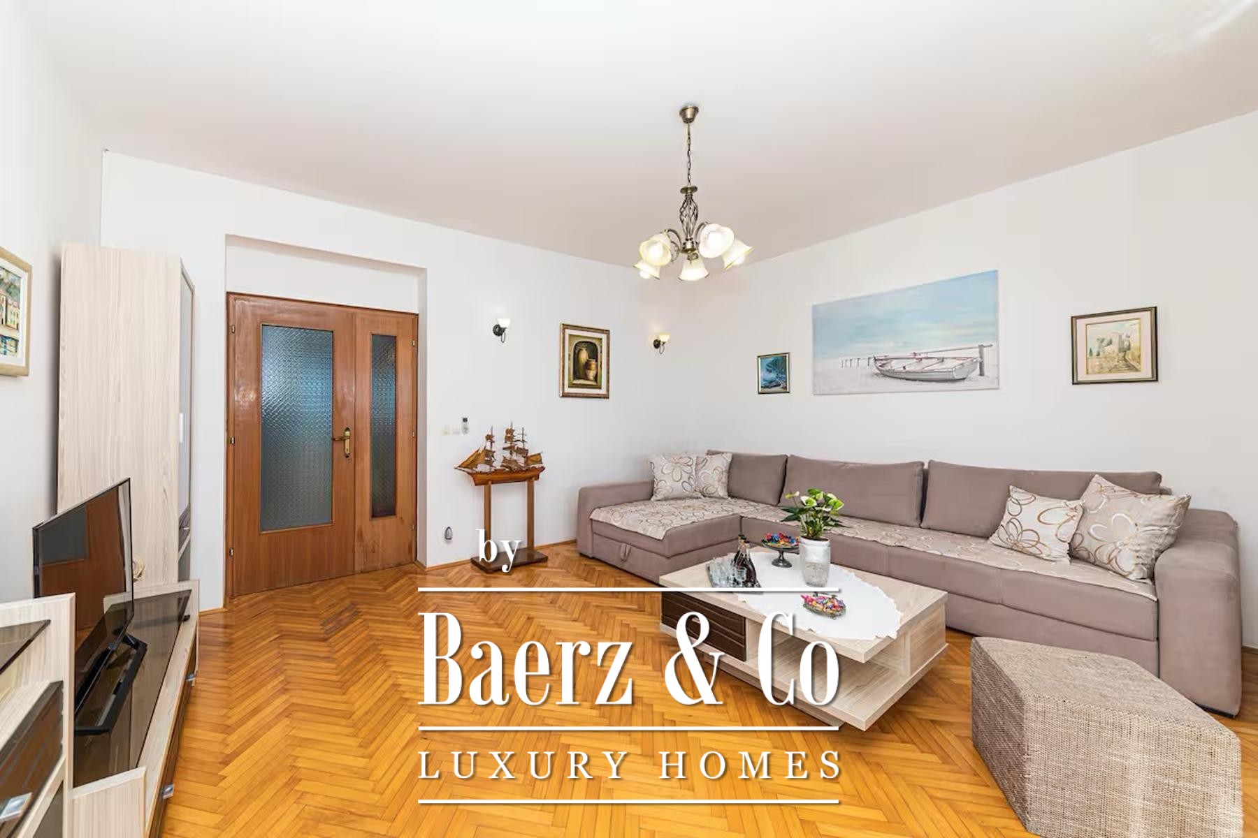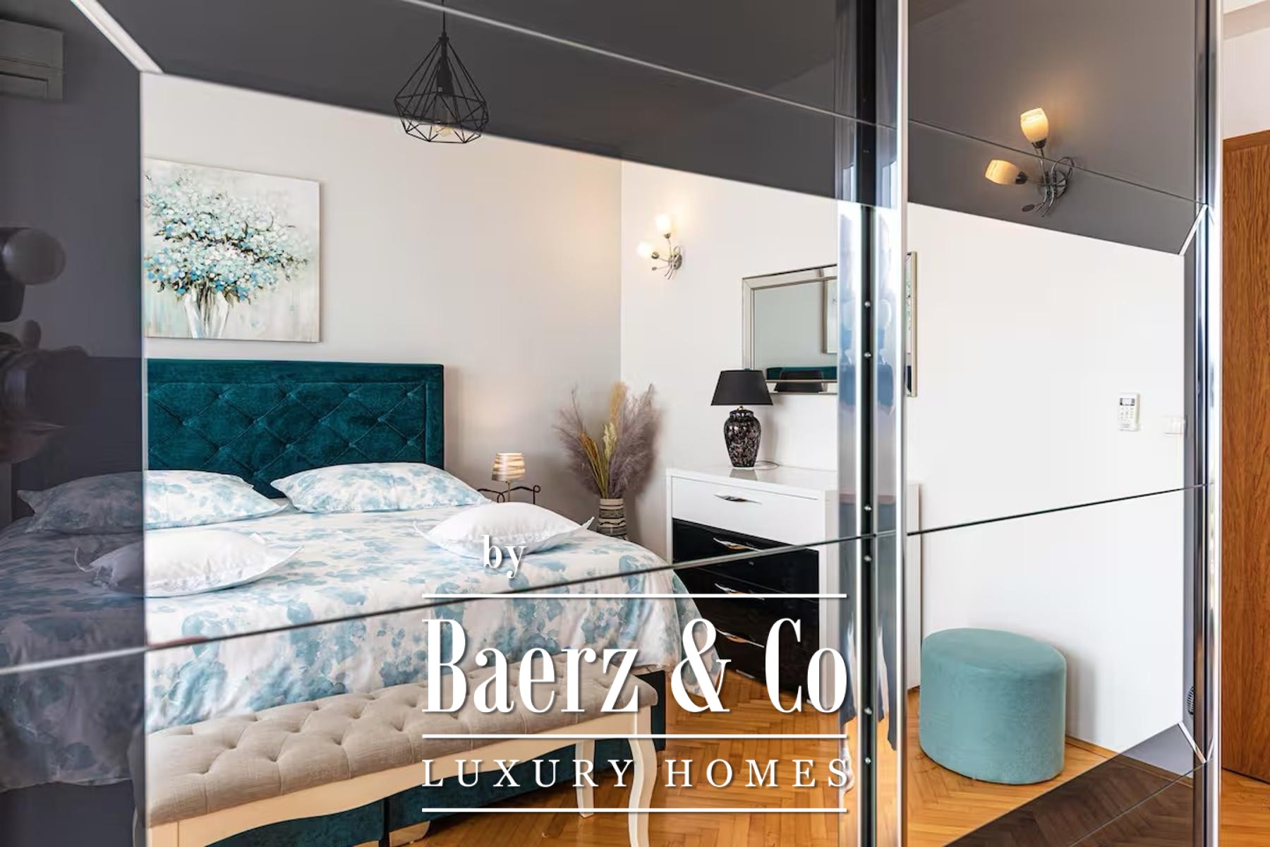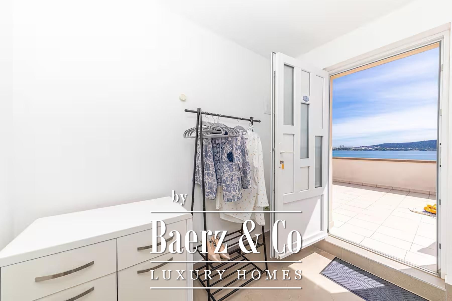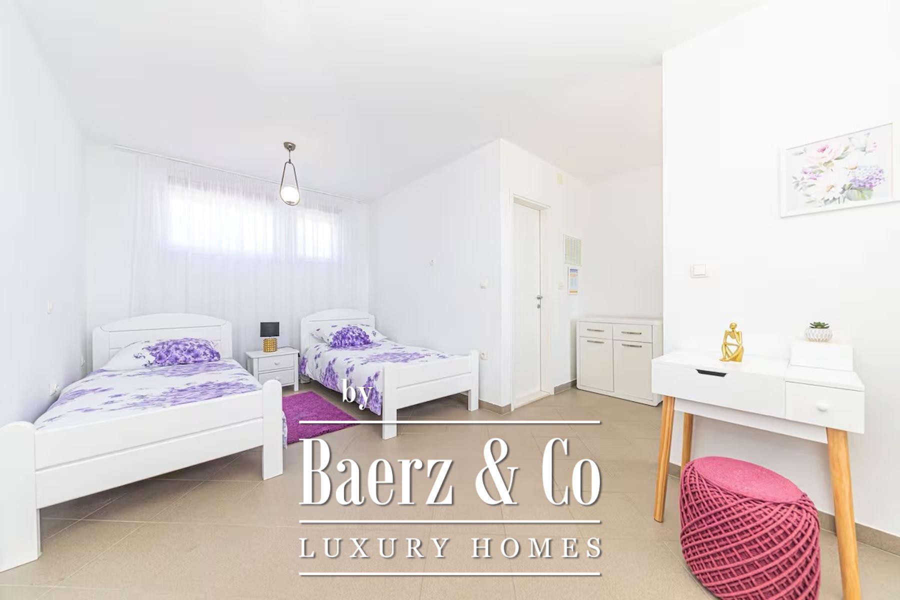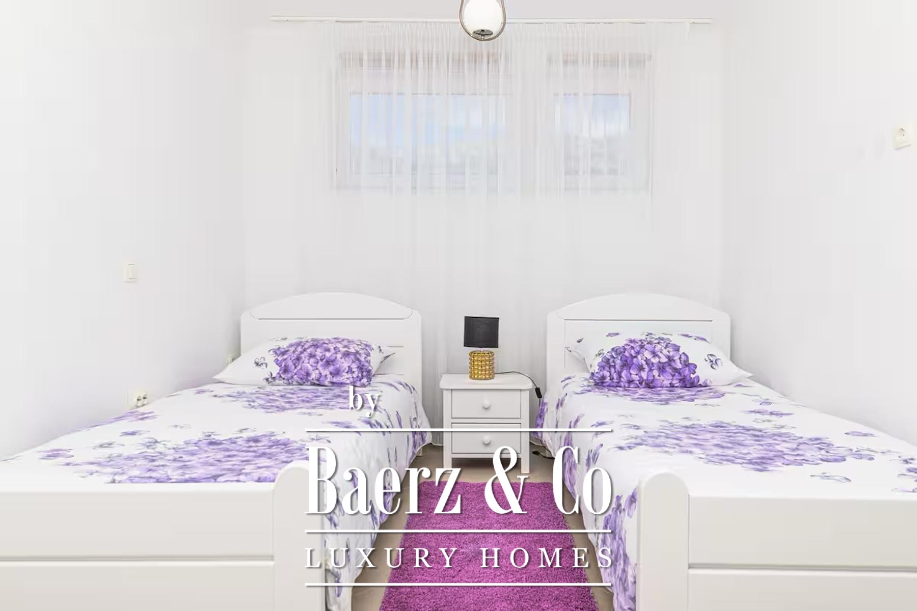 Das Erdgeschoss öffnet sich zu drei Schlafzimmern, zwei Bädern sowie einem lichtdurchfluteten Wohn- und Essbereich, ergänzt durch eine Küche, die nahtlos auf eine großzügige Terrasse übergeht – ideal für gesellige Zusammenkünfte. Hohe Glasflügeltüren und Klimaanlagen in allen Zimmern sorgen saisonübergreifend für Komfort. In der oberen Etage befindet sich ein 88 m² großes Apartment mit zwei Schlafzimmern, das einer letzten kreativen Vollendung entgegensieht, während das oberste Geschoss zwei Studio-Apartments beherbergt – beide mit Zugang zu einer weitläufigen Gemeinschaftsterrasse und beeindruckenden Ausblicken auf das Meer, Marjan und Čiovo.