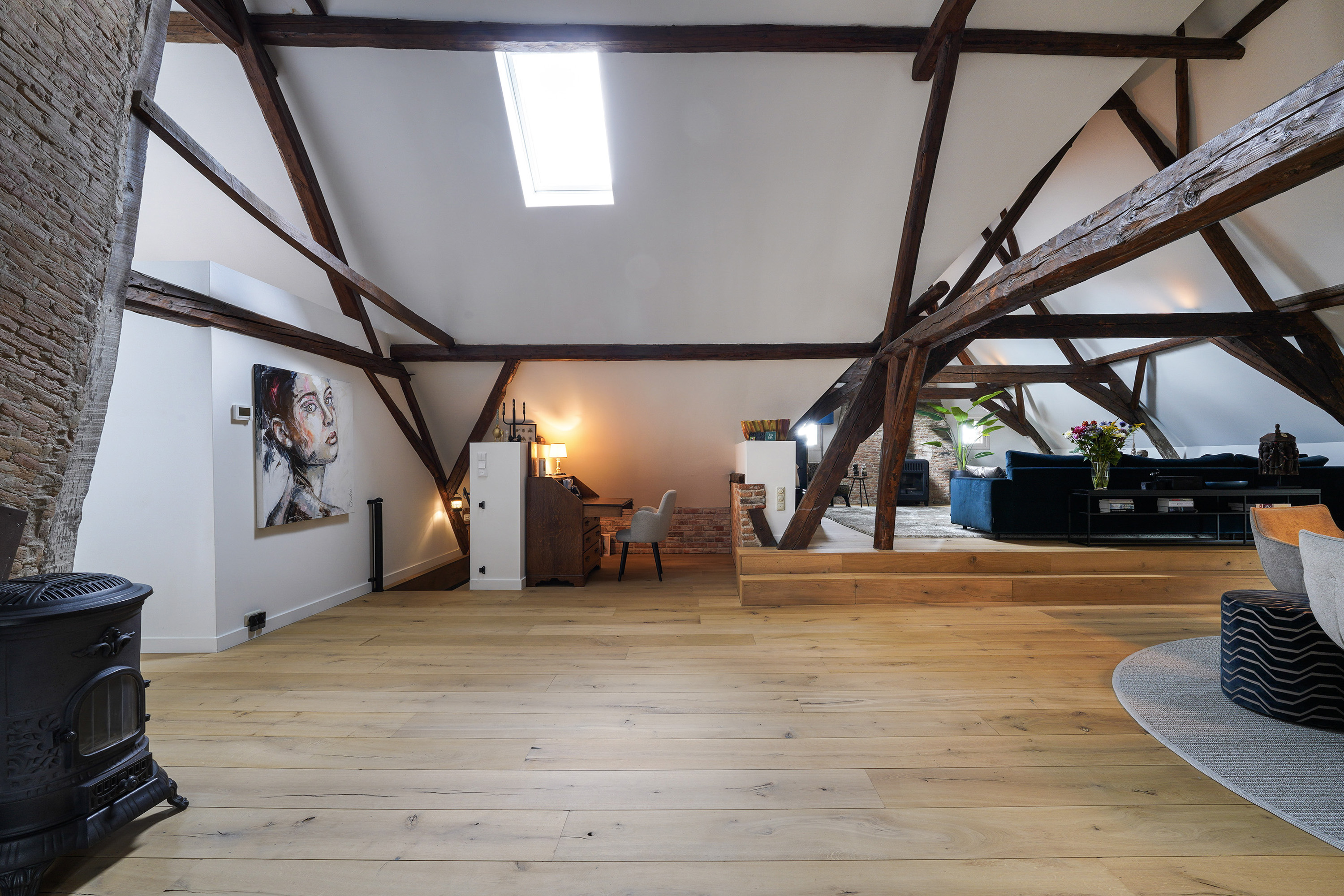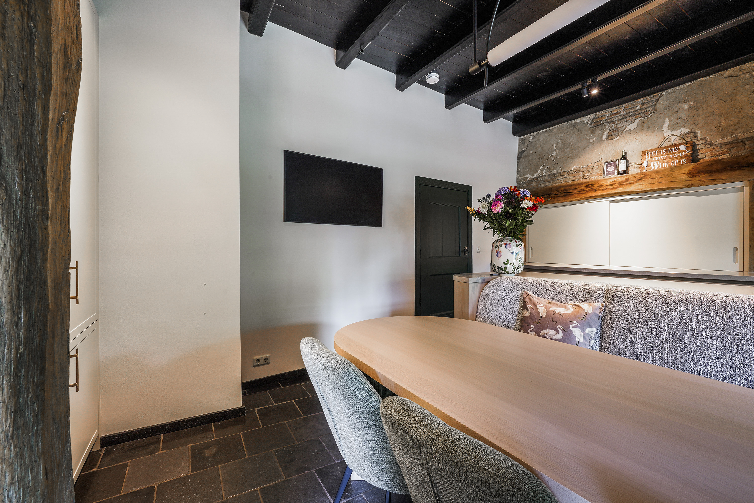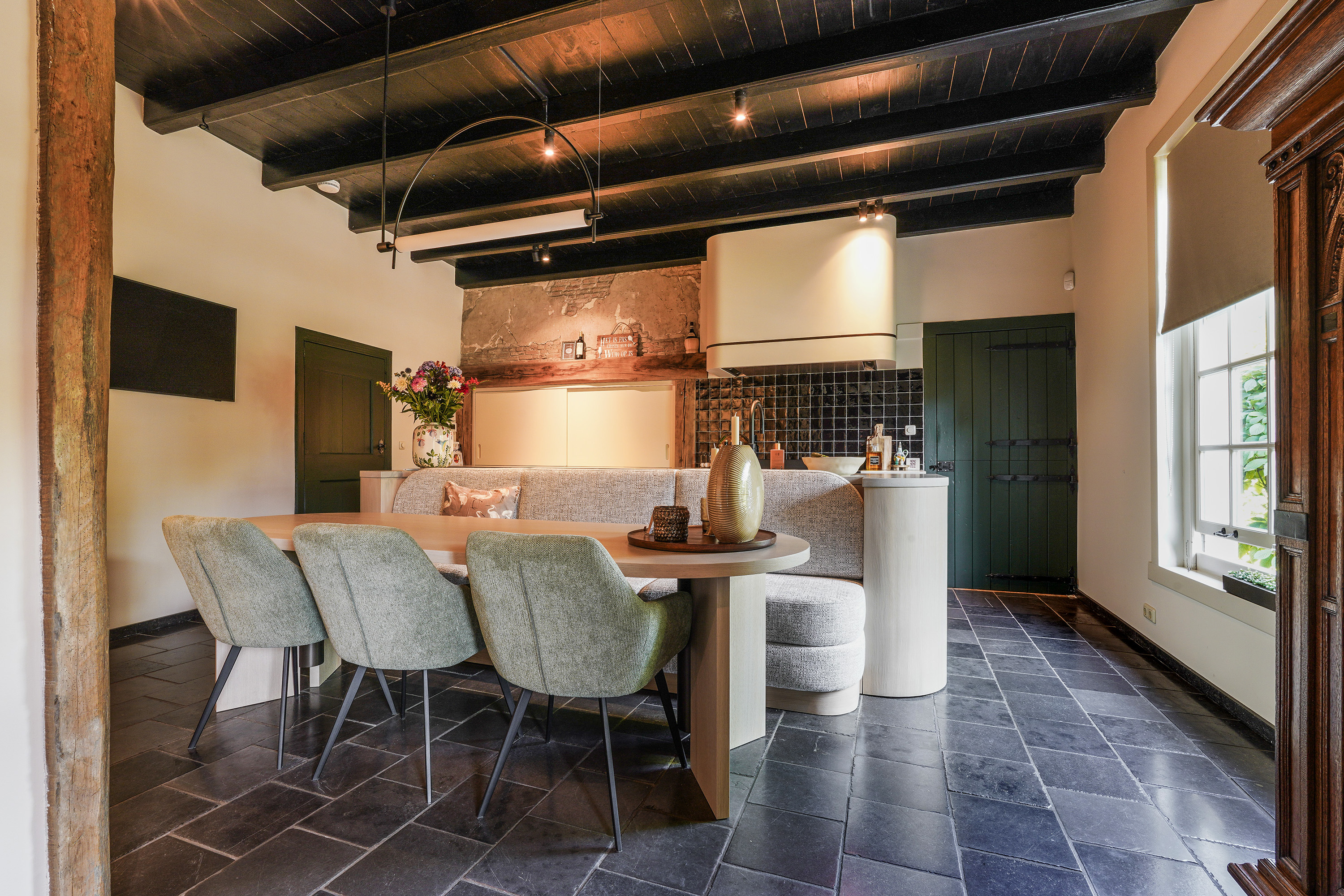 Das Heritage House in Sprang-Capelle verbindet Geschichte mit durchdachter Sanierung und bietet eine seltene Wohnfläche von 420 m² auf einem 658 m² großen Grundstück. Diese nationale Denkmalimmobilie zeichnet sich durch ihre außergewöhnliche Herkunft aus, mit Ursprüngen aus dem 17. Jahrhundert, die sich in freigelegten Holzbalken, gewölbten Decken und einem imposanten Empfang widerspiegeln. Das Hauptwohnzimmer mit fast 90 m² verfügt über einen Pelletofen und hohe Fenster, die für Licht sorgen, während weiße Putzwände und Holzböden die Raumwirkung harmonisch abrunden. Das Herzstück bildet eine maßgefertigte Küche aus dem Jahr 2024, ausgestattet mit individuell angefertigten Einbauschränken von Ecker Interieurbouw sowie großzügigem Platz für geselliges Beisammensein, Essen und entspannte Blicke in den Garten.