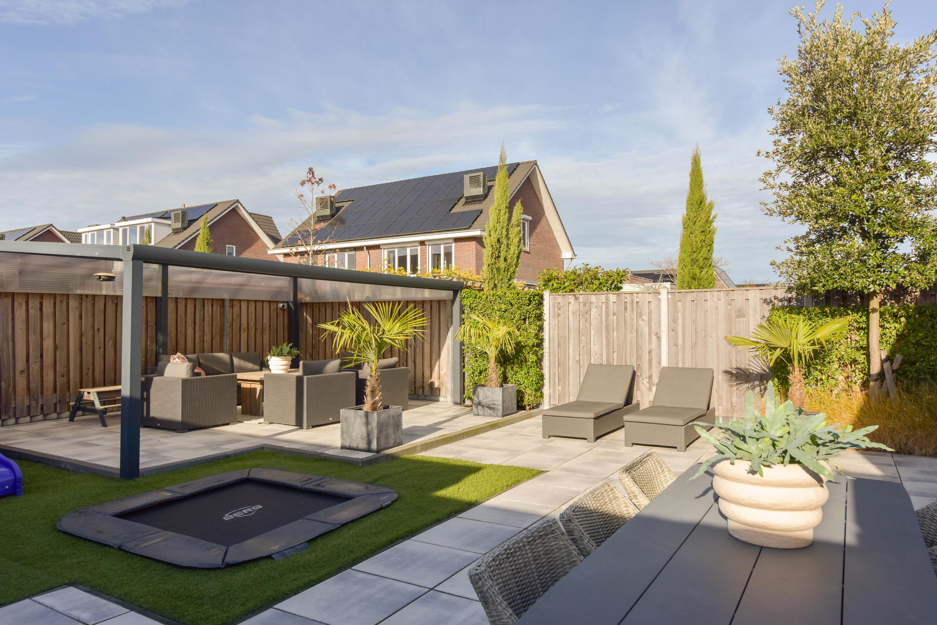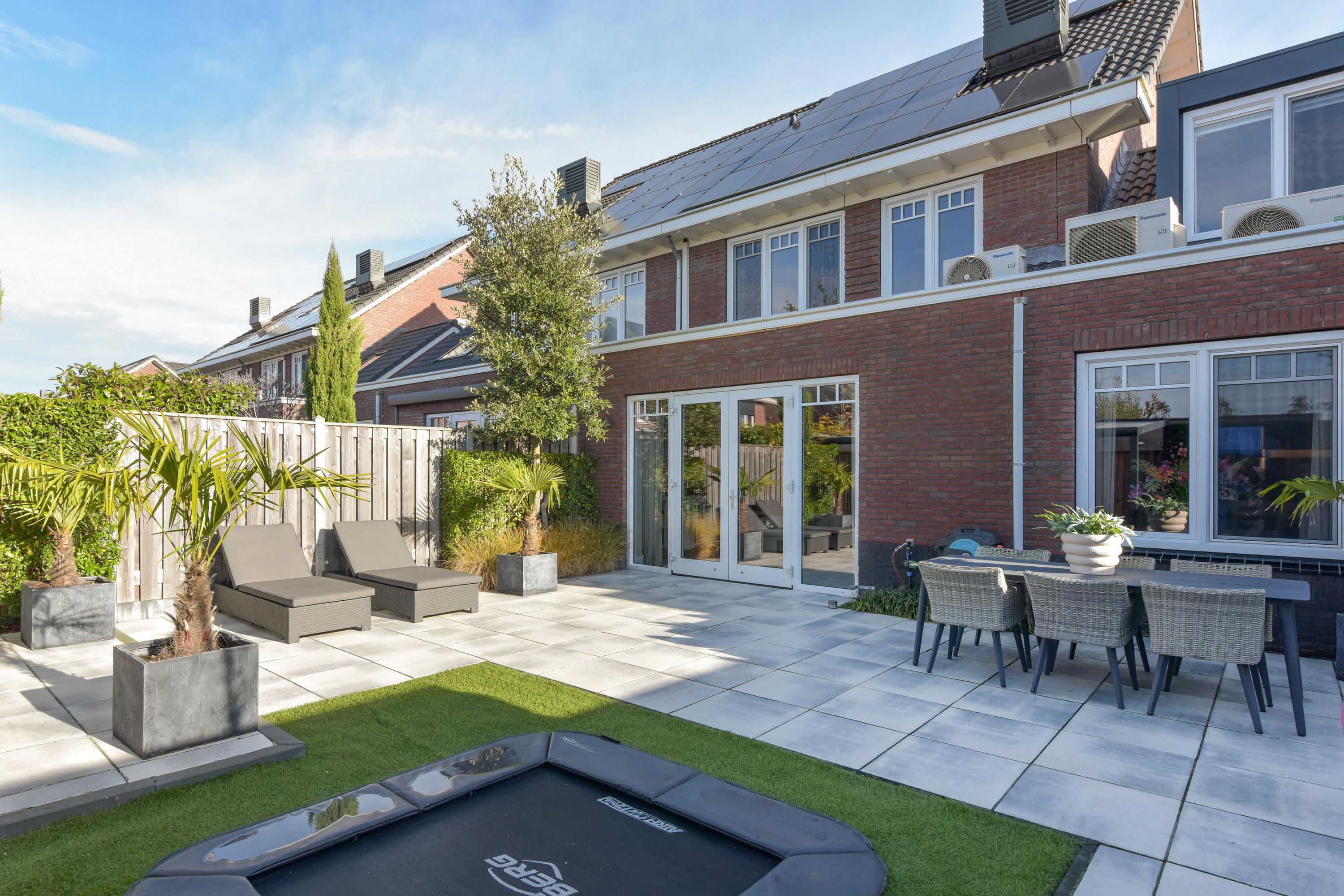 Die Küche ist für ambitionierte Ansprüche konzipiert und mit Premiumgeräten sowie großzügigem Stauraum ausgestattet. Das maßgefertigte Wandmöbel und der Bioethanol-Kamin im Wohnzimmer, entworfen von Eric Kuster, verleihen urbane Eleganz. Französische Türen öffnen den Weg in den nach Westen ausgerichteten Garten, auf Terrassen und eine Veranda mit integrierter Beleuchtung, wodurch sich der Wohnraum mühelos nach draußen erweitert. Hier ist Privatsphäre garantiert—ohne direkte Einblicke und mit einer Gartenanlage, die ein eingebautes Trampolin, mehrere Terrassen und eine vollautomatische Bewässerung umfasst.