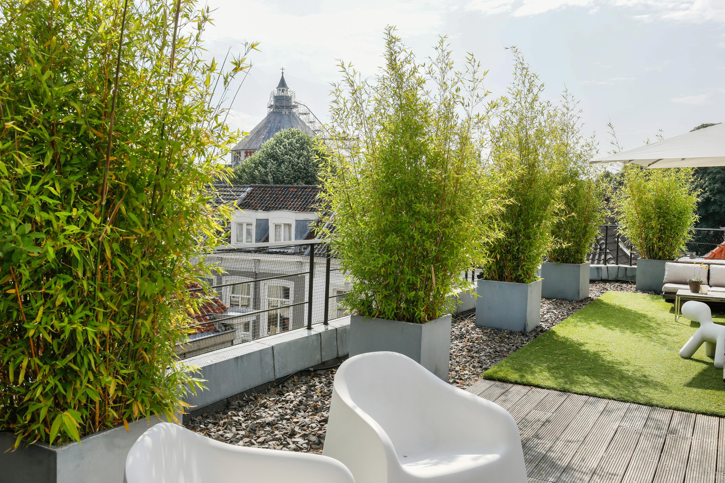 Large apartment in the heart of the city center with five rooms, a private entrance/bicycle storage, and an impressive roof terrace.