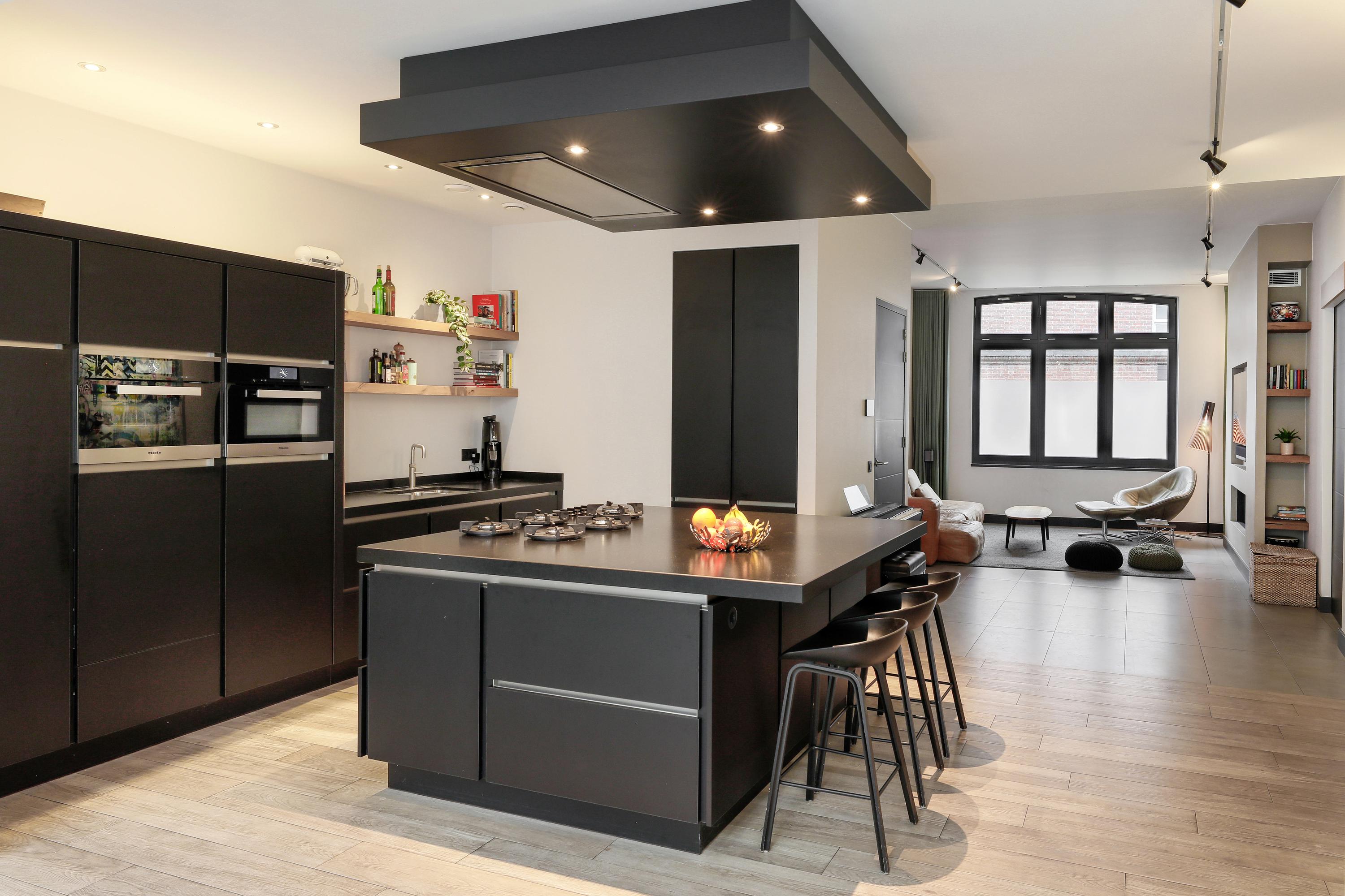 Older houses in the city center are typically narrow and tall. Few houses offer, like this one, approximately 150 m² of ground floor space. With all that space, the kitchen is the hub of your family. It fulfills this social hub role with a spacious island offering ample storage, PITT Cooking, and a breakfast and drinks bar. Naturally, the kitchen is fully equipped with Miele and Liebherr appliances and a Quooker. There's also ample storage space around the island, and opposite it, a coffee and wine corner. From this kitchen, you also have a beautiful view of the living room, the dining room, and the garden. An ideal focal point for your home.