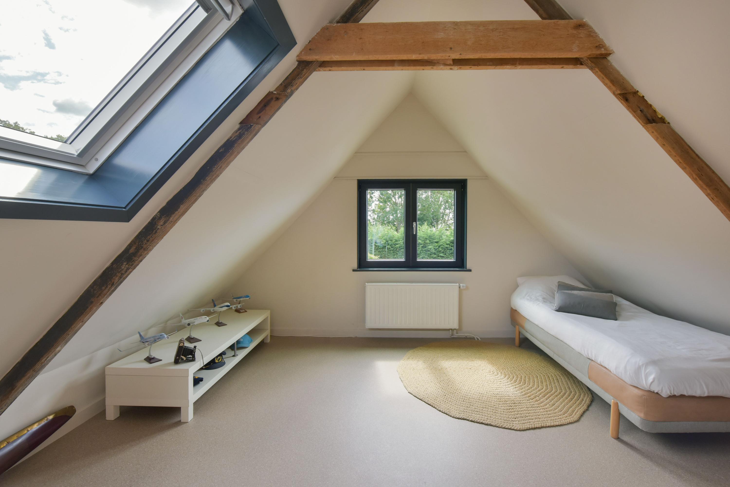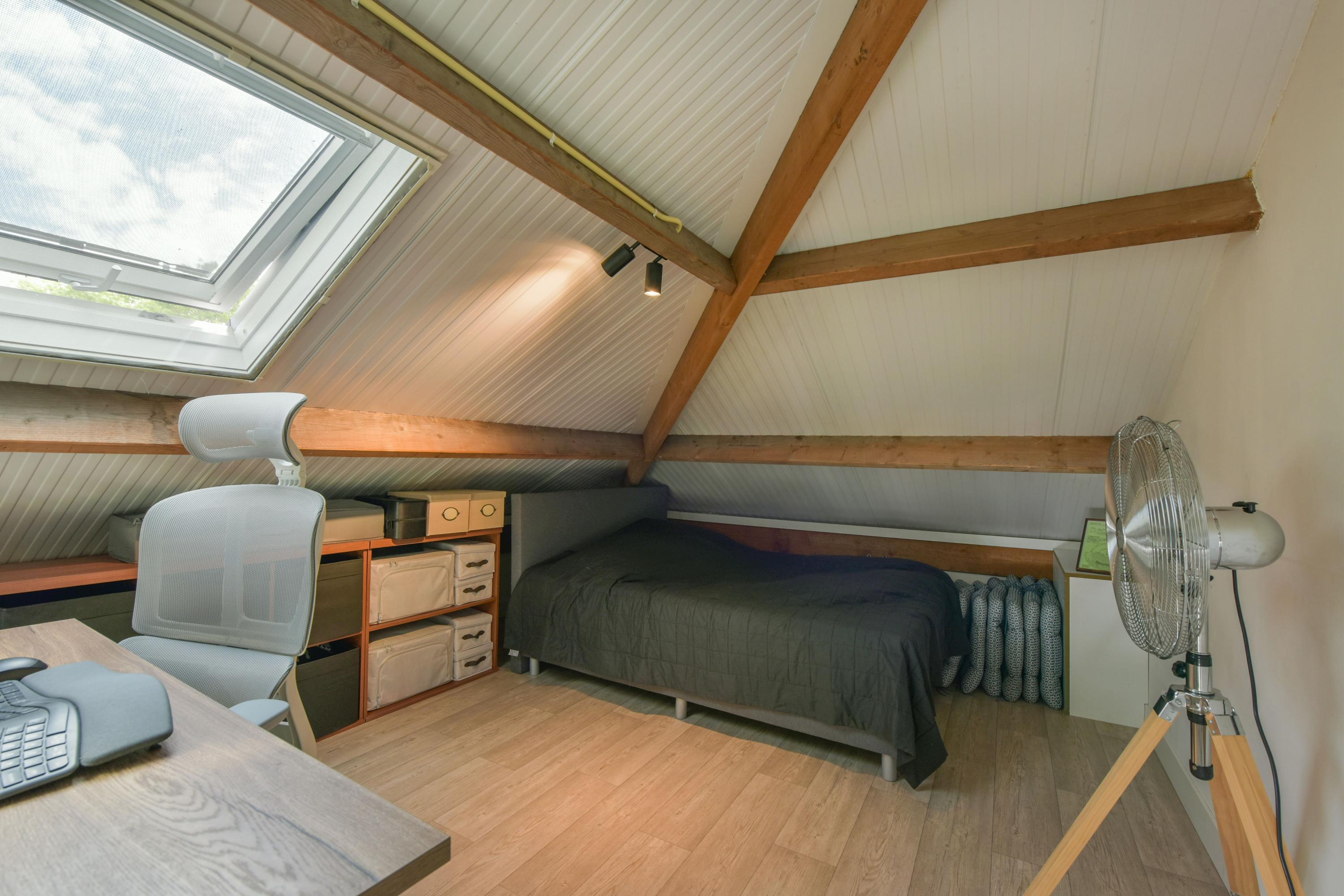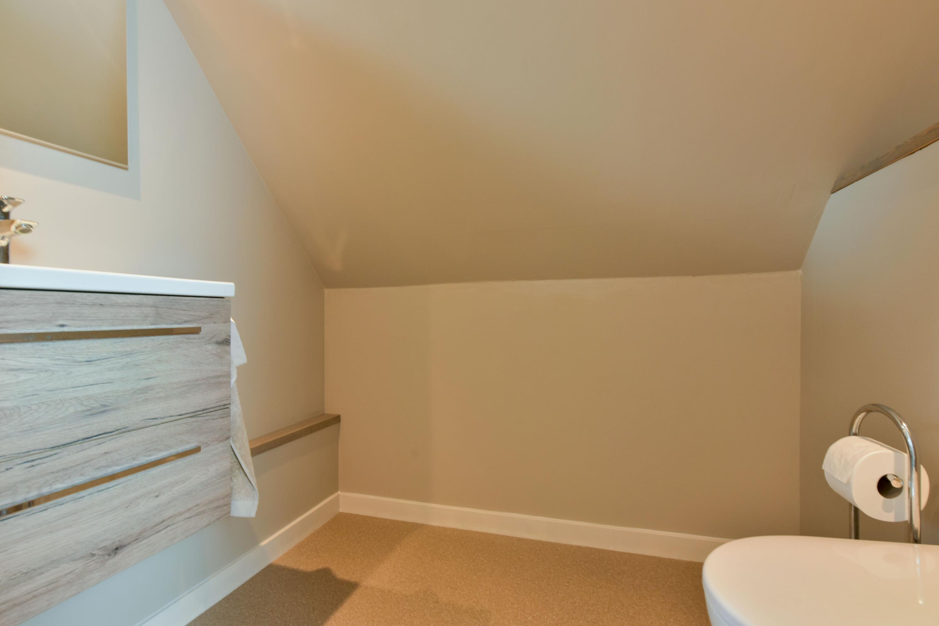 The first floor comprises four rooms and a separate toilet, with the option to create a second bathroom. A pull-down ladder provides access to the spacious attic storage.