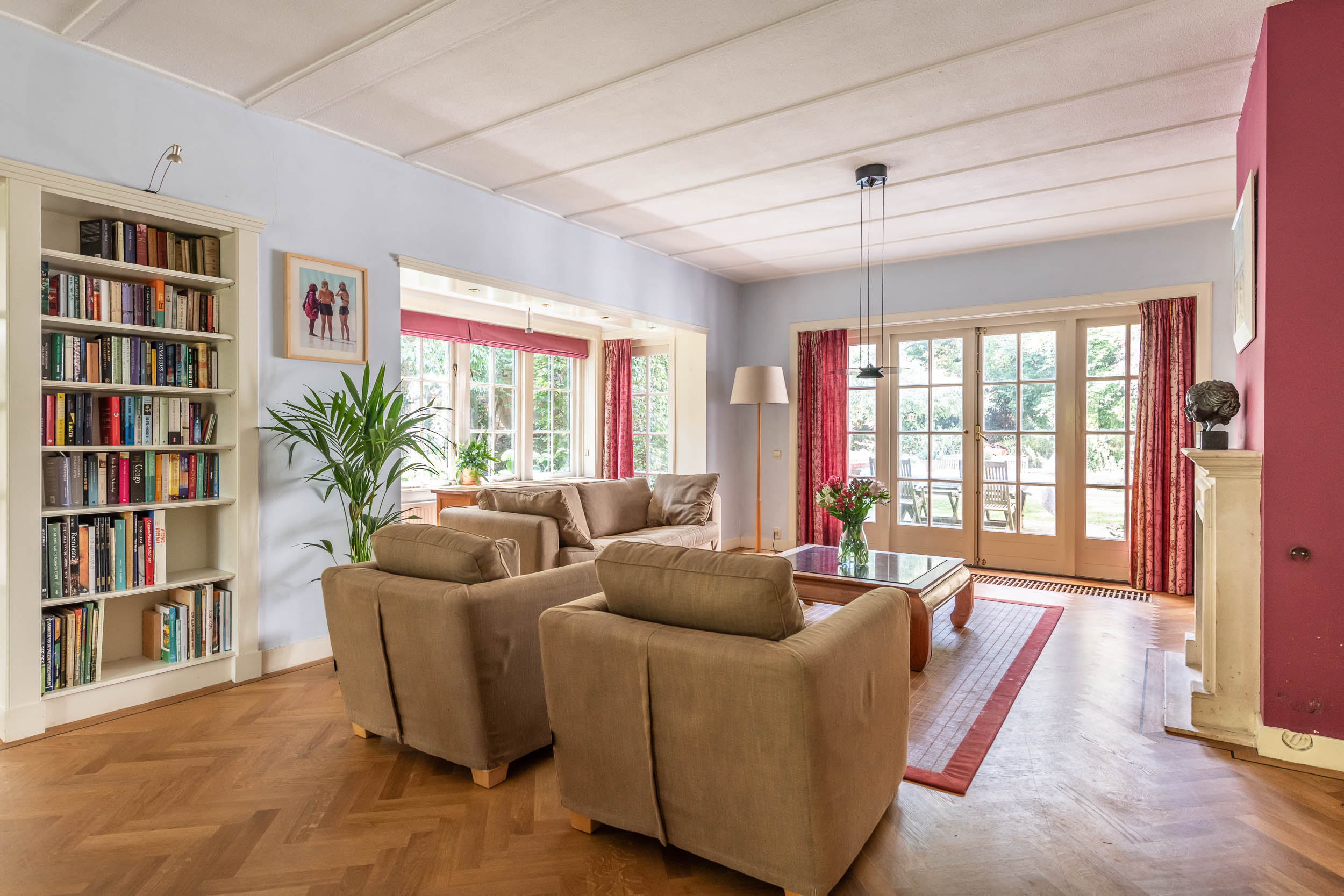 This well-maintained, semi-detached distinctive and uniquely designed villa with swimming pool and garage on a large plot of over 1,000 m² is located on the green and quiet Grenslaan. All living areas are beautifully situated facing the sun (west and south side). A family home par excellence: 6 bedrooms and 2 bathrooms! The extension on the side of the house (which completely matches the style of the main house) has created plenty of space on the ground floor for an extra room, such as a playroom, TV room or study. The beautifully landscaped garden has several terraces, is in a sunny location facing the west and offers complete privacy! At the rear of the garden, where the plot borders Wikkelaan, there is parking space for two cars on private land with two private charging stations.