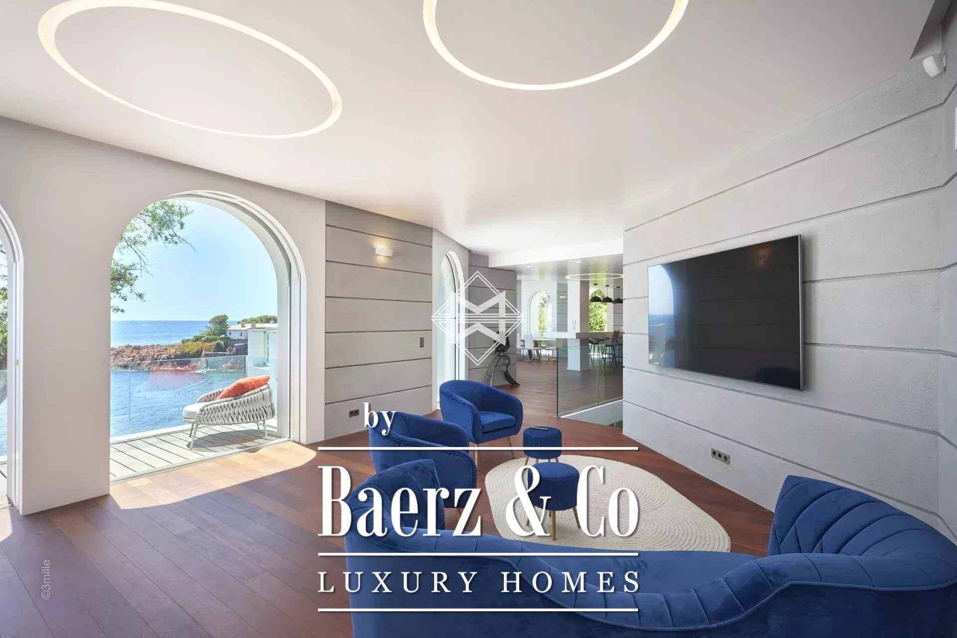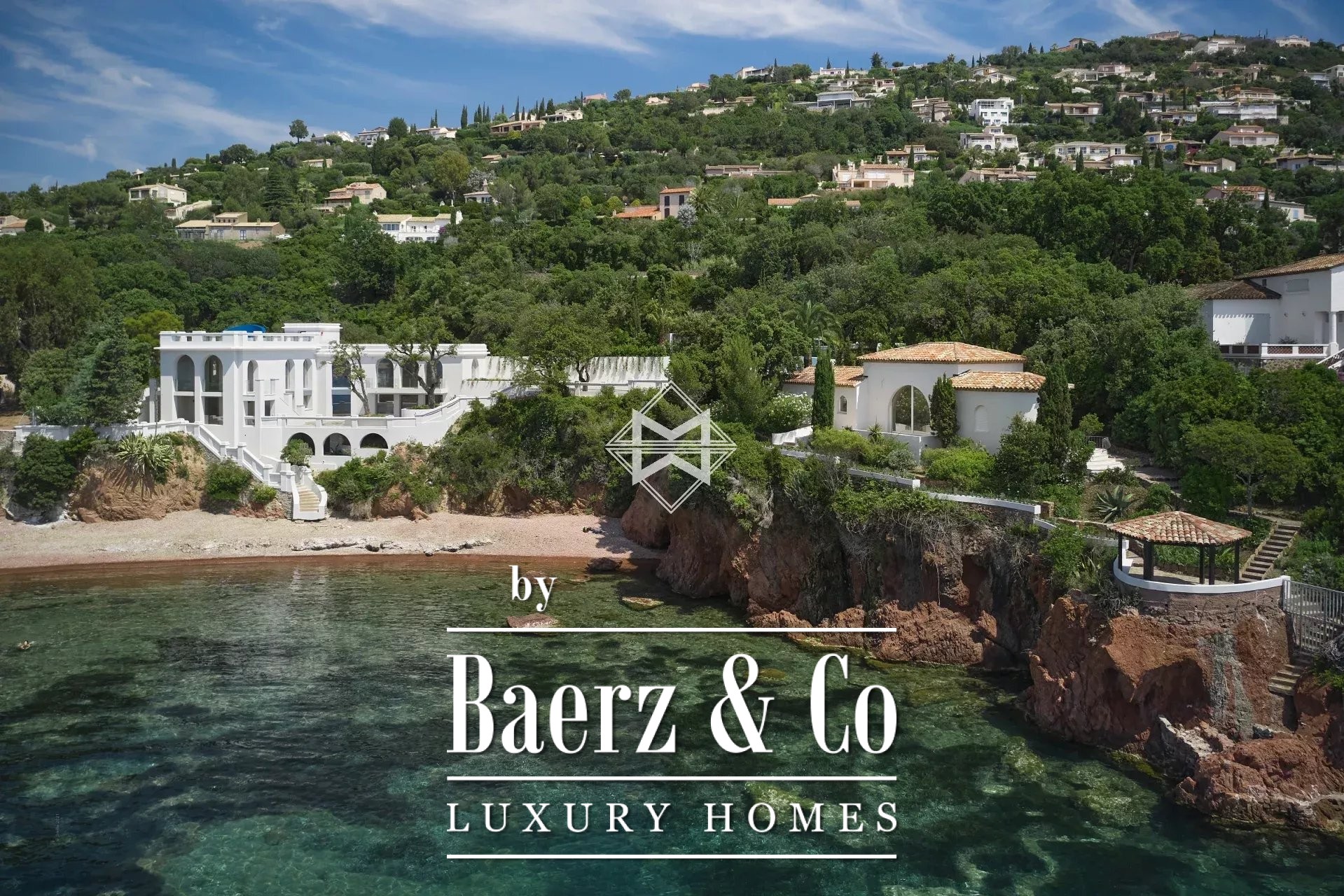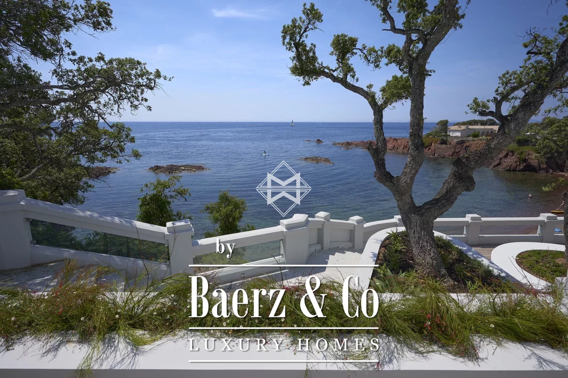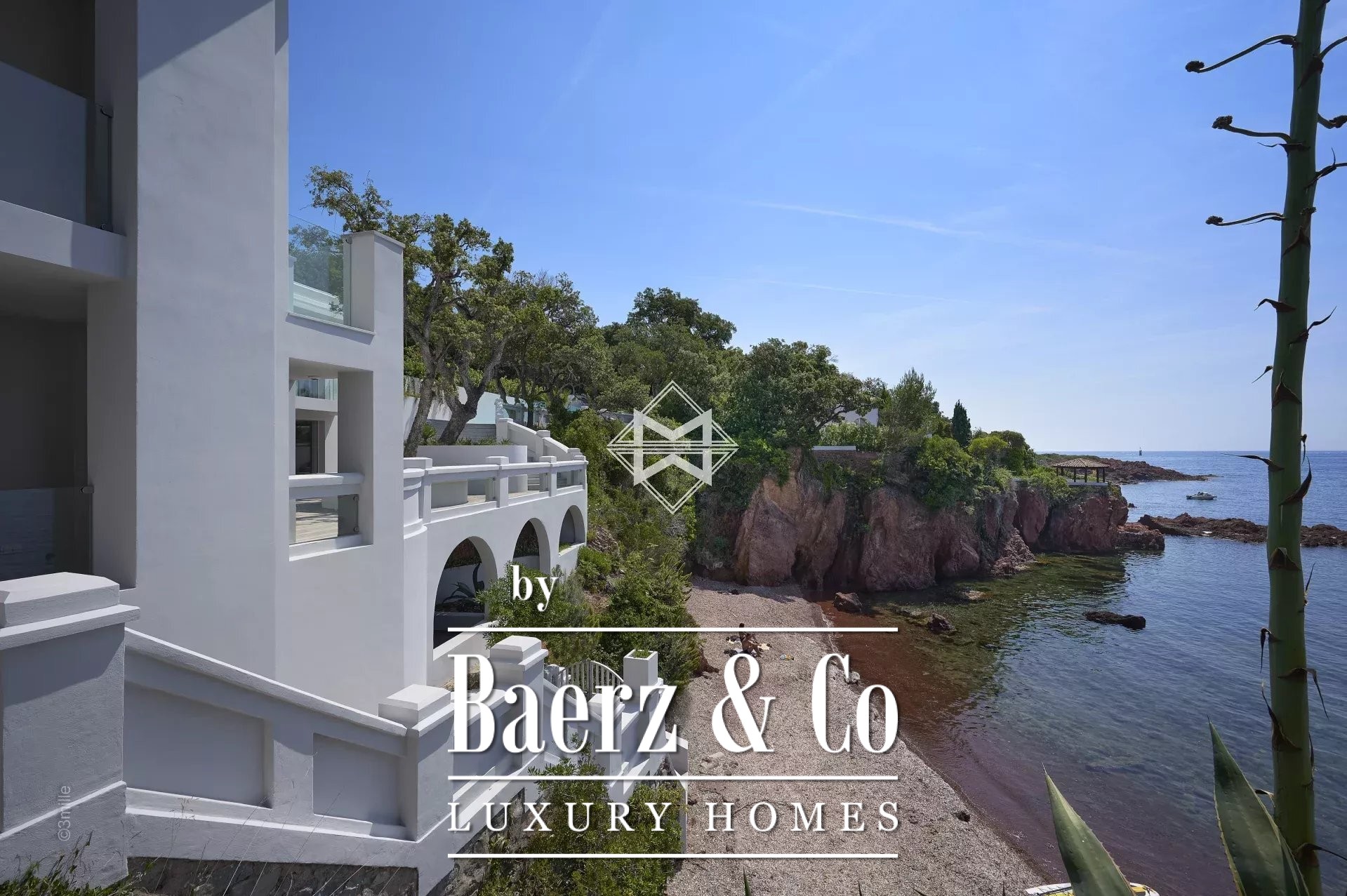 In a wild environment between Théoule-sur-Mer and Saint-Raphaël, the property offers a splendid linear view on the sea with the beach and the red rocks of the Esterel at its feet.