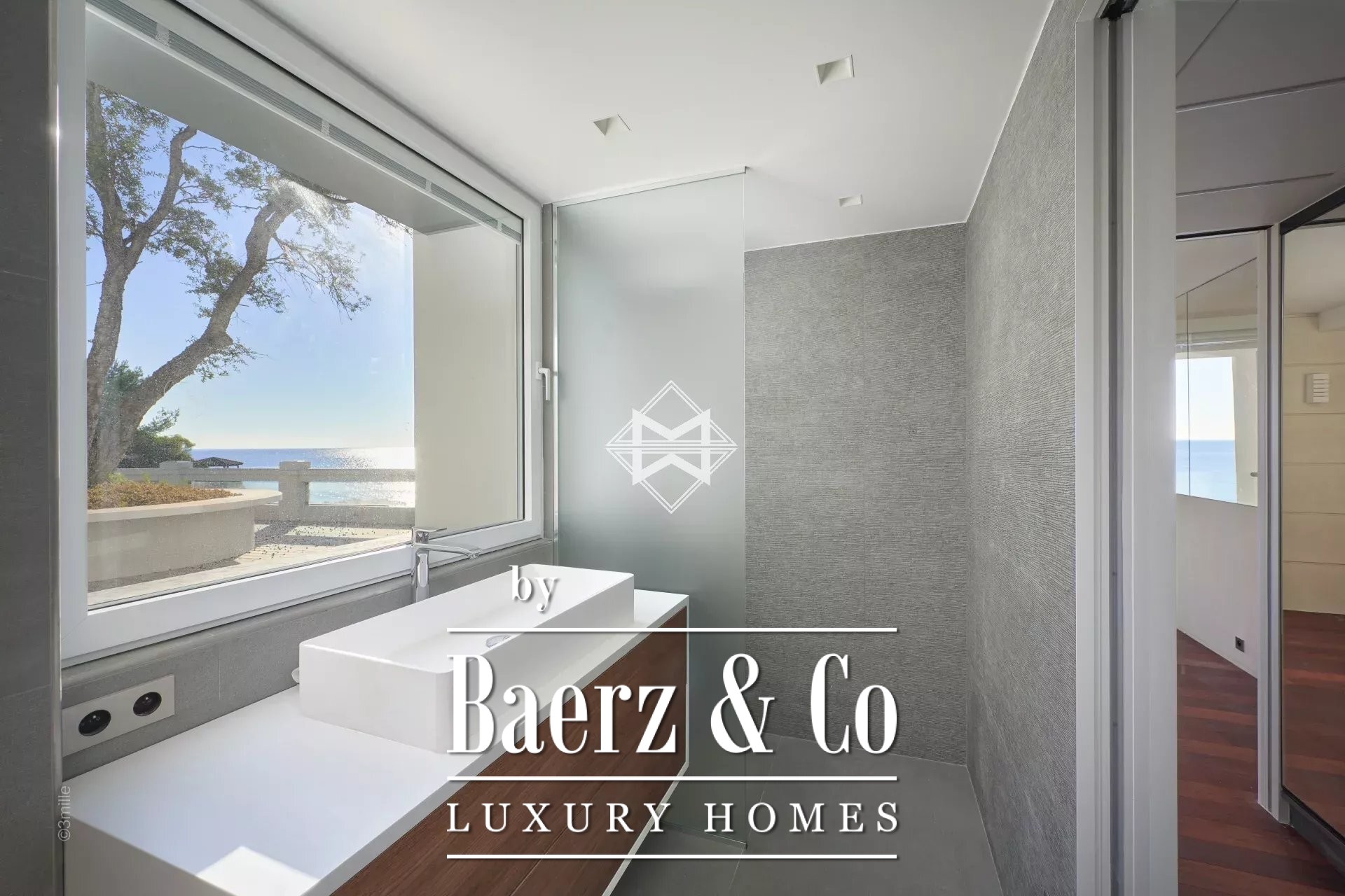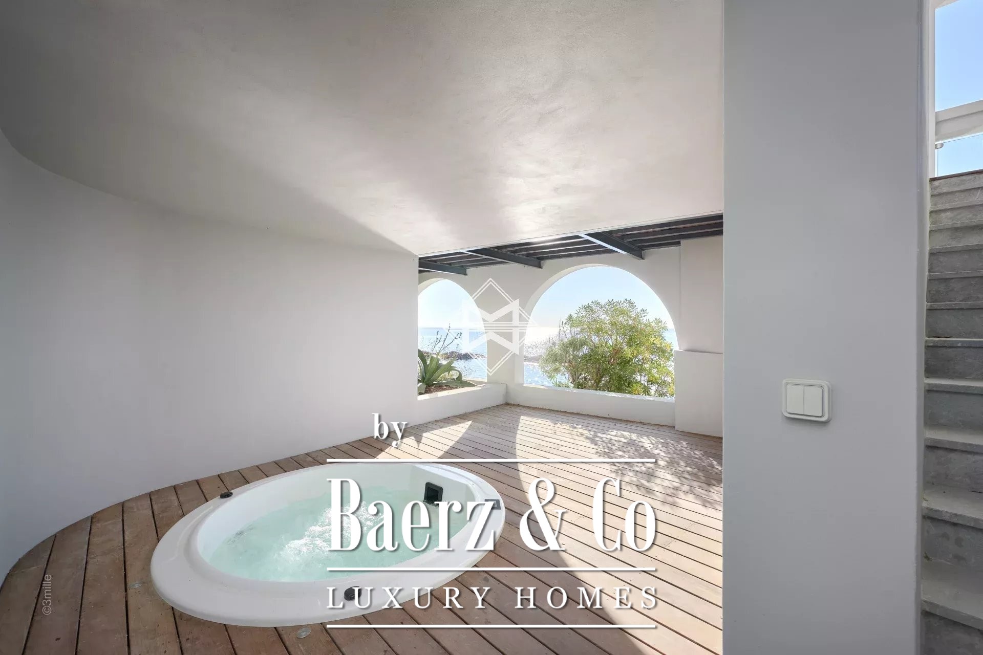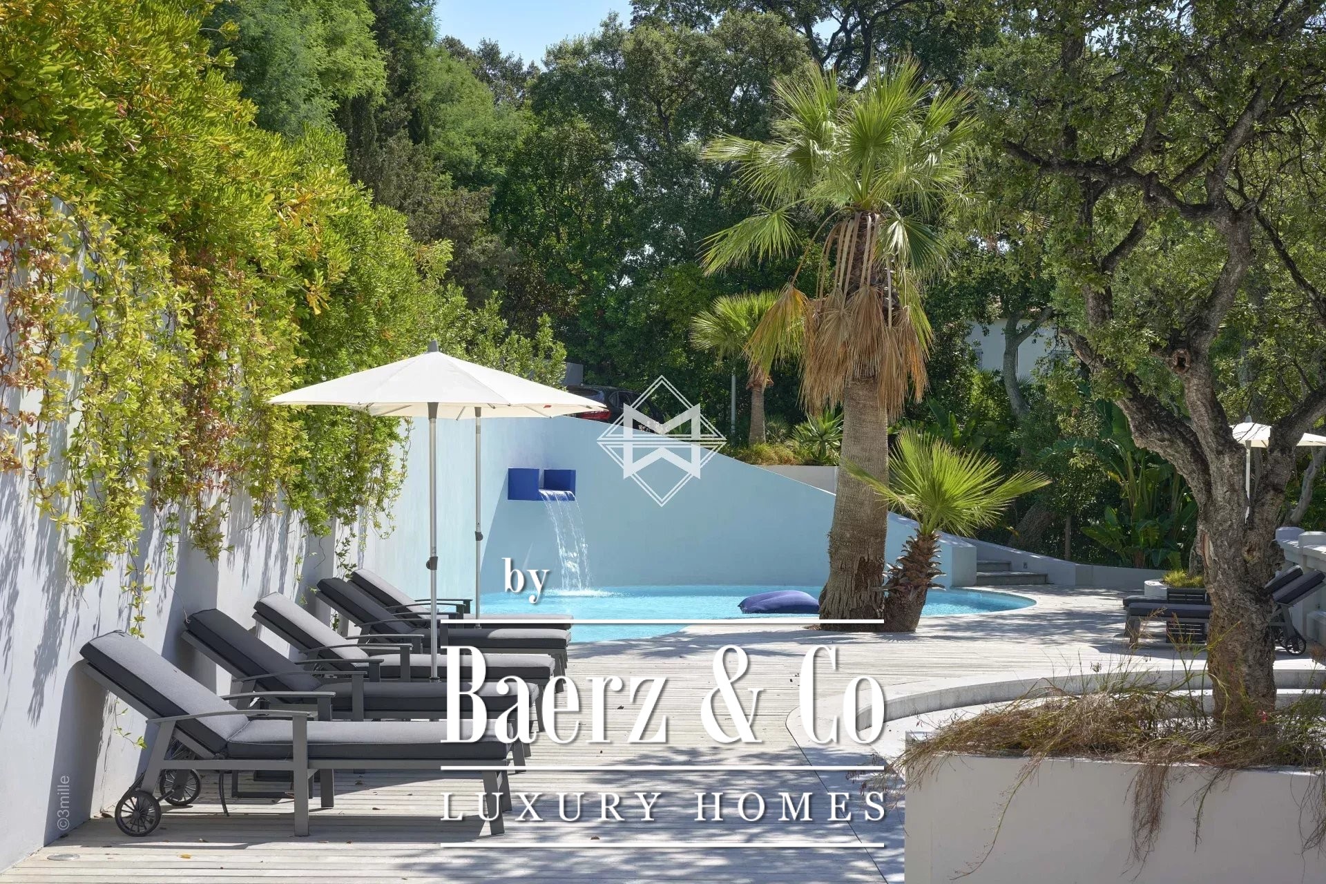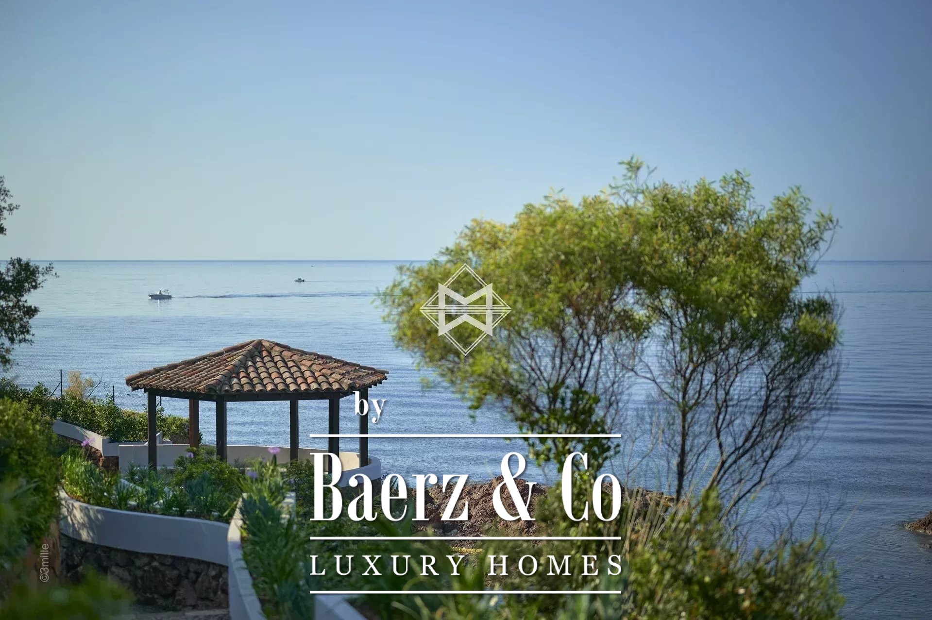 In a wild environment between Théoule-sur-Mer and Saint-Raphaël, the property offers a splendid linear view on the sea with the beach and the red rocks of the Esterel at its feet.