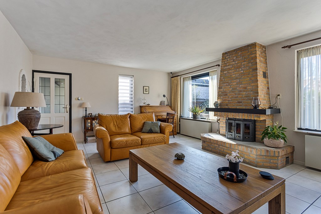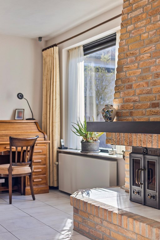 A hallway leads to the second living room at the rear of the house. This room is also well maintained, bright, and features an open fireplace. The space can serve multiple purposes—for example, as a family room, office, or hobby area.