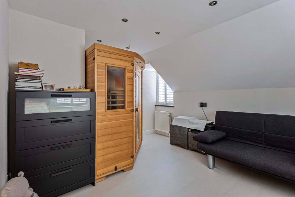 A highlight of the home is the spacious and sunny rear garden. Partly paved yet filled with greenery, it’s a vibrant space perfect for relaxation. The garden offers plenty of room for a lounge set or outdoor dining area, making it an ideal place to enjoy the sunshine. From the garden, you have direct access to the storage area.