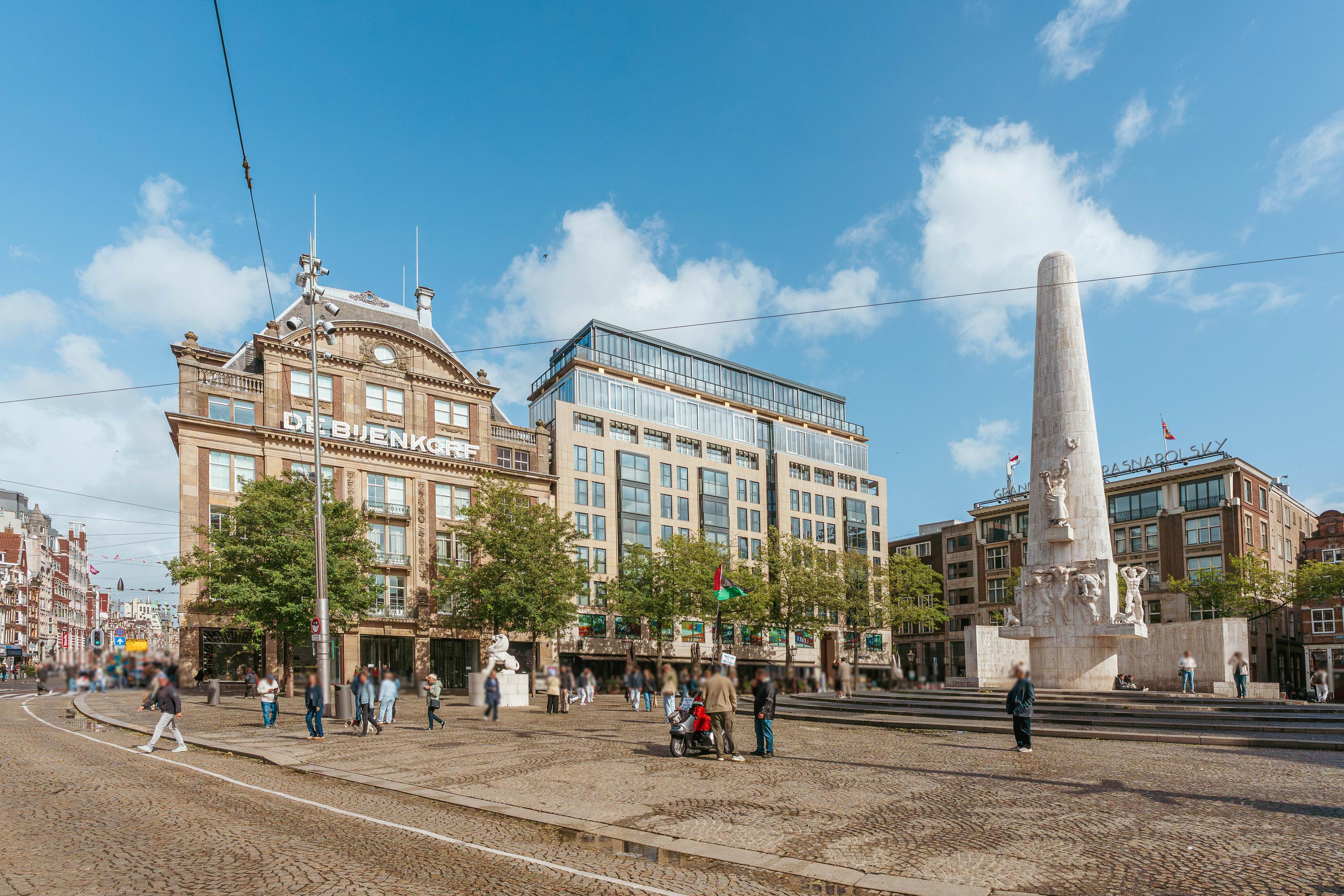 Living on Dam Square means residing in the absolute heart of Amsterdam, at a location known and admired worldwide. Here you are surrounded by luxury department stores such as De Bijenkorf, designer boutiques, and flagship stores. On the culinary front, you will find everything from trendy cafés and cosmopolitan cocktail bars to Michelin-starred restaurants and refined international cuisines.