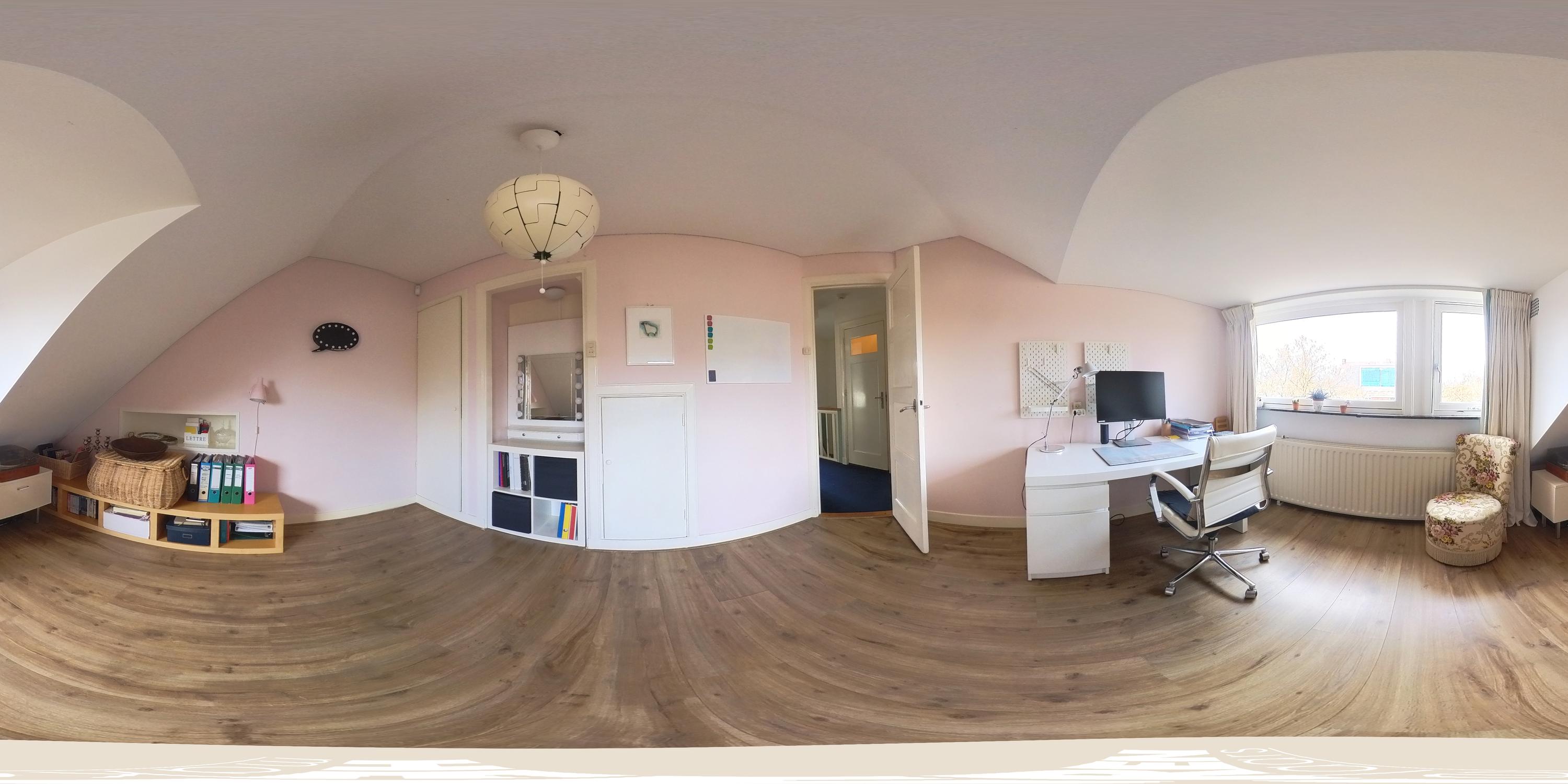 The room is currently arranged as a bedroom with a sitting area, but could easily serve as a master bedroom, studio or multifunctional space. Practical storage space is available in the knee walls.