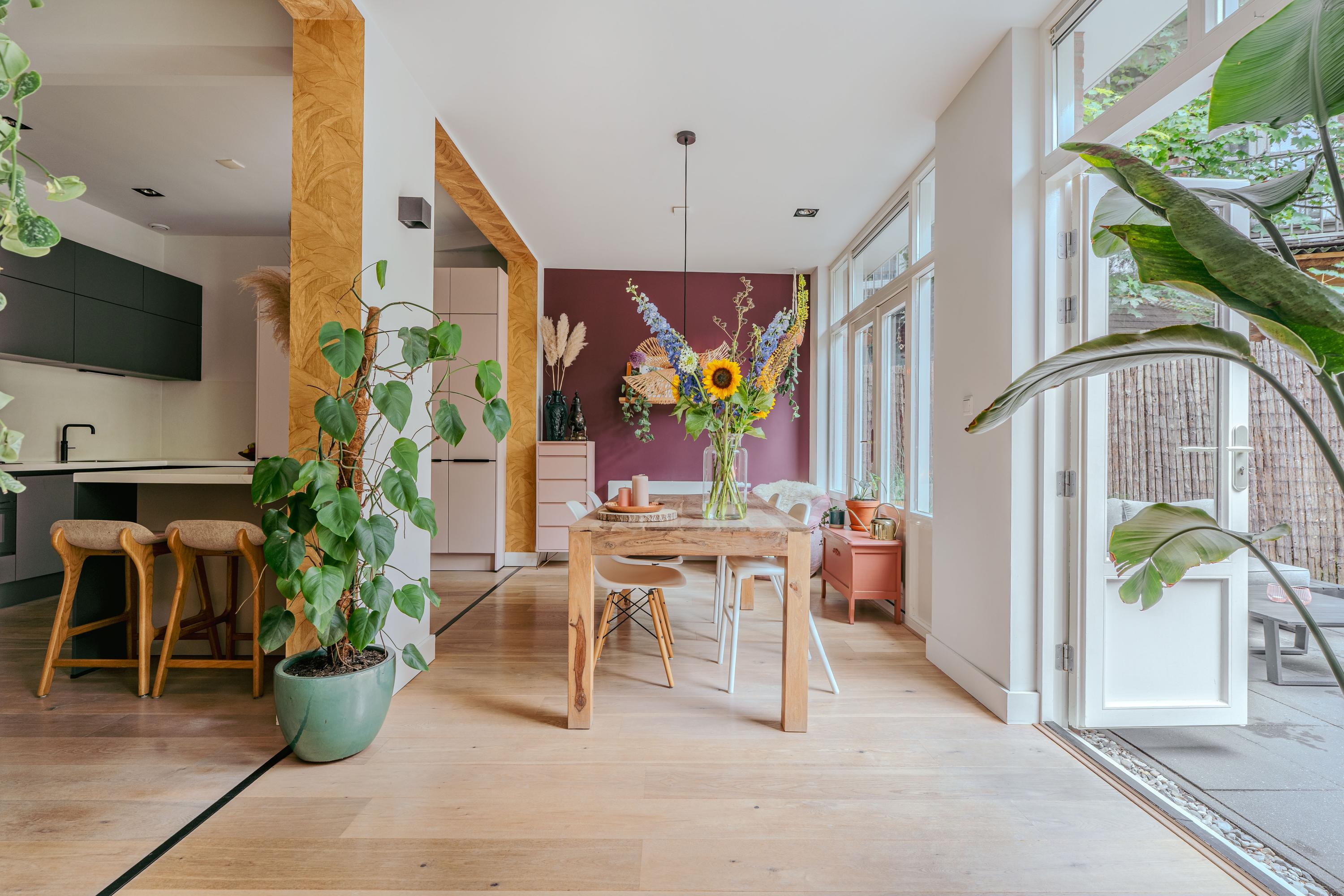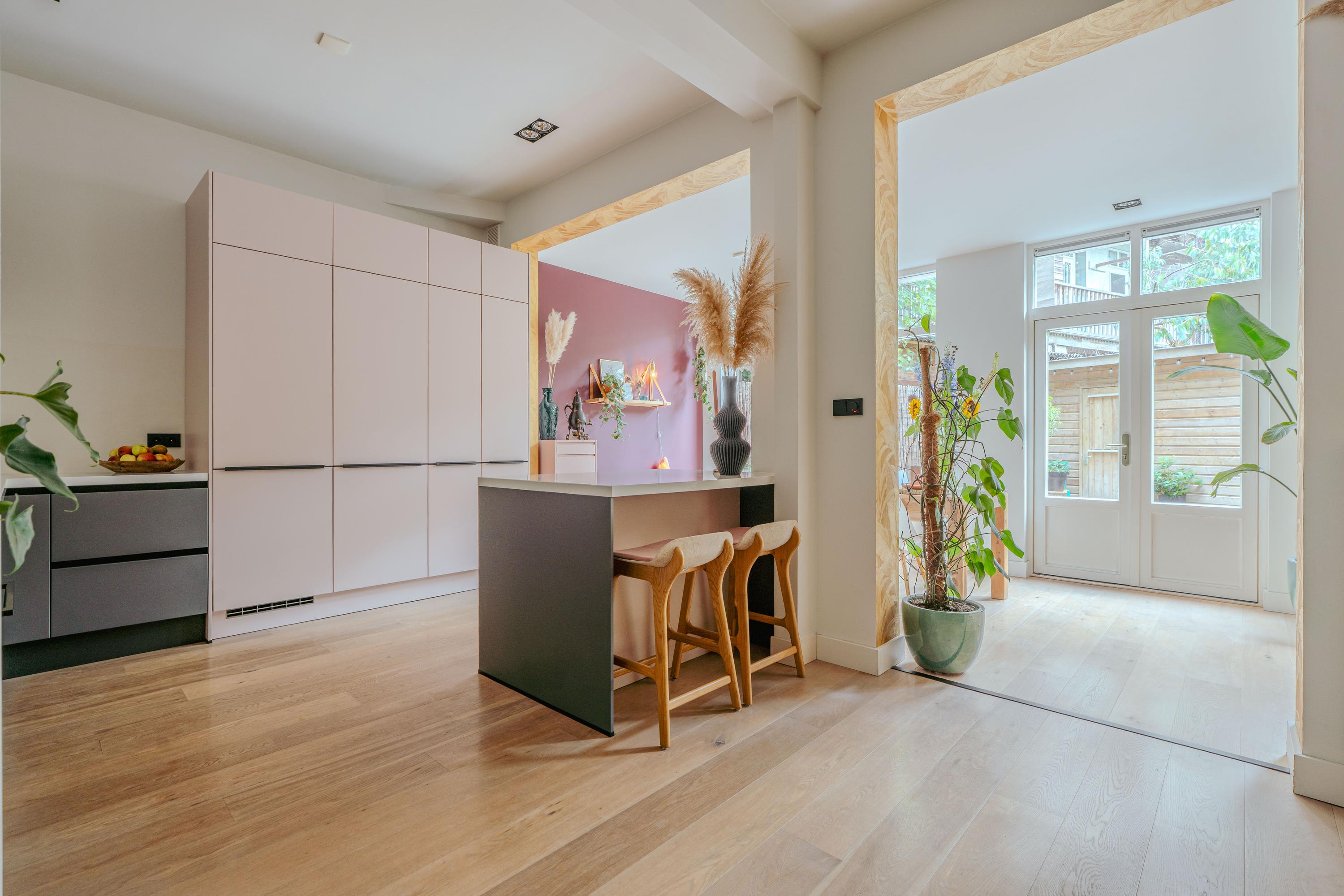 Apartment Amsterdam with private south facing garden offers a refined urban retreat in the heart of De Pijp. With a living area of 89 m², this ground floor residence enjoys abundant natural light, thanks to large windows and a 2.5 meter deep extension with garden doors that create a seamless indoor-outdoor experience.