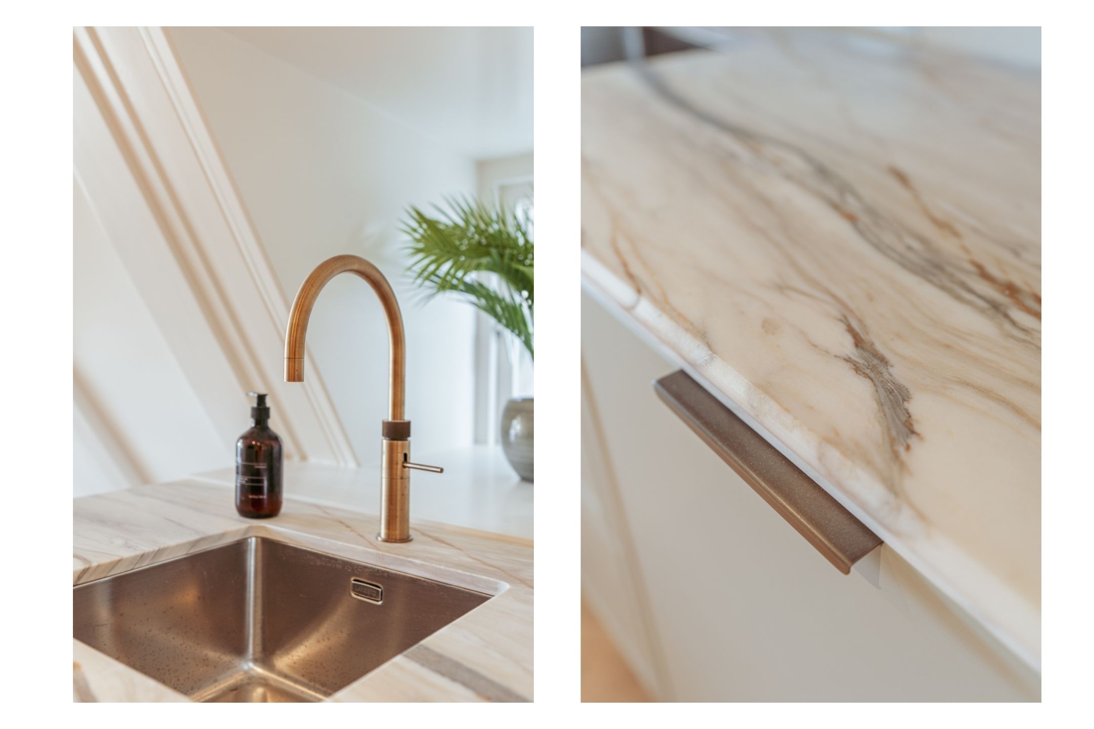 The luxury open-plan kitchen is fully equipped with high-spec built-in appliances including a Quooker tap, dishwasher, Bora induction hob with integrated extractor, two Siemens Studioline (combi) ovens, and ample cupboard space.