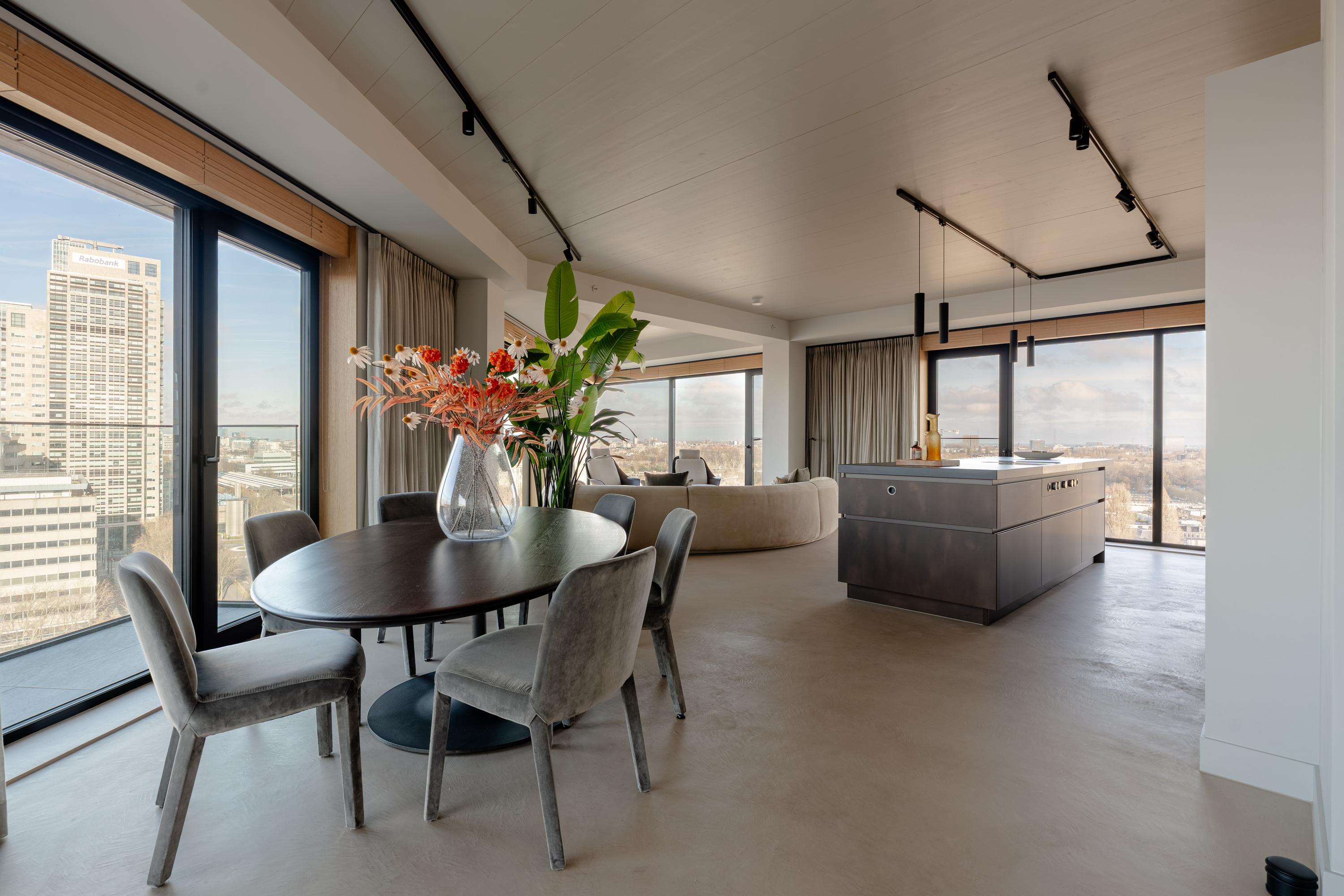 A modern apartment of approximately 157 m², located on the 13th floor. The property features three bedrooms, a covered balcony, an A++ energy label, an external storage unit, and a private parking space equipped with a charging station, as well as truly spectacular views over the city.