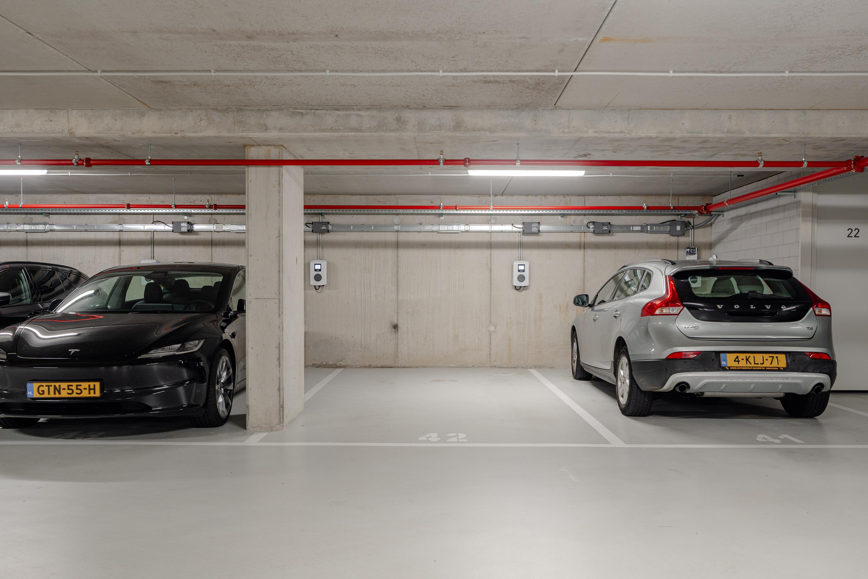 - Private parking space with charging station;