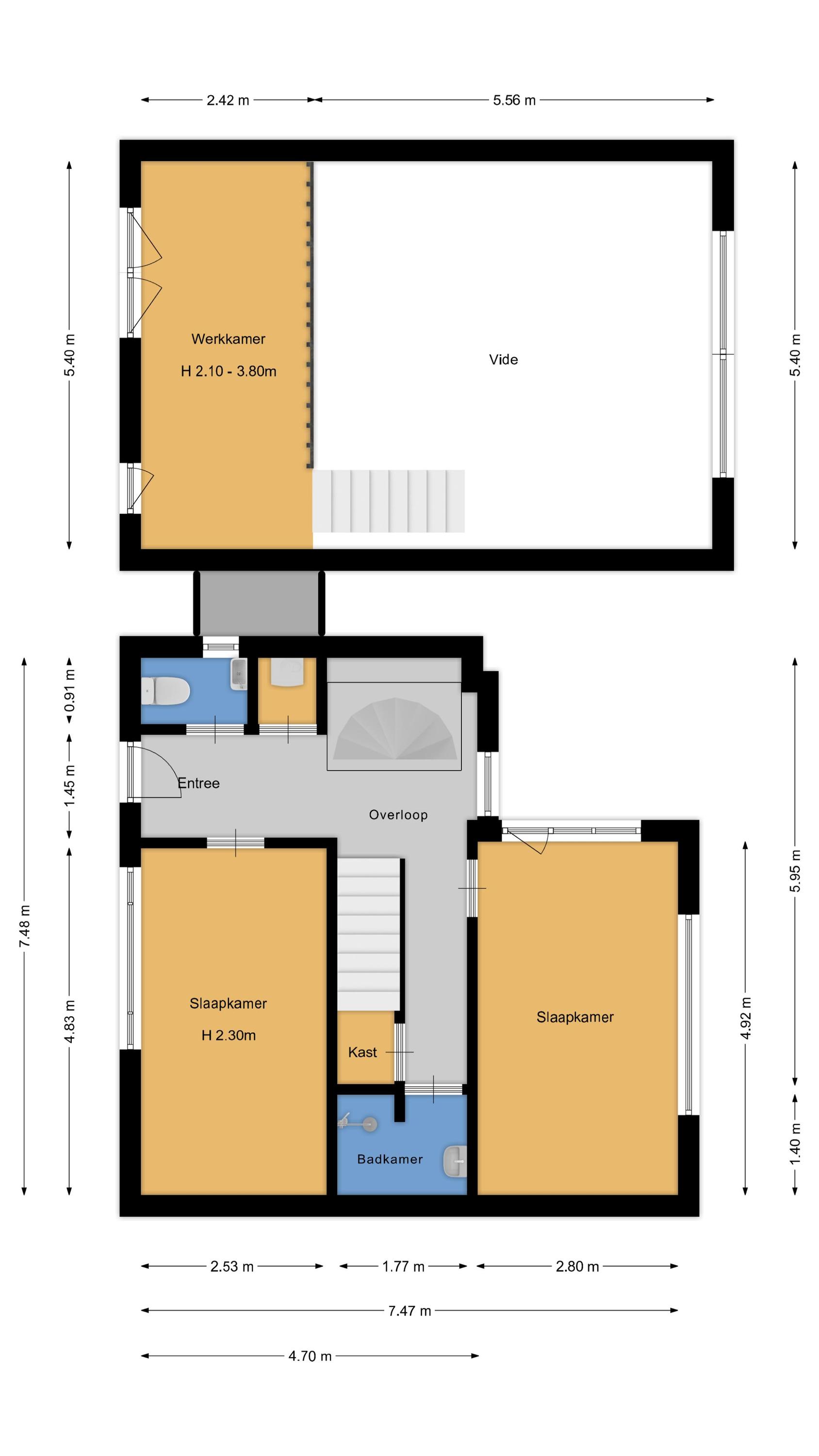 Zaan-style house: entrance, generous office space (mezzanine), stairs to the living area.