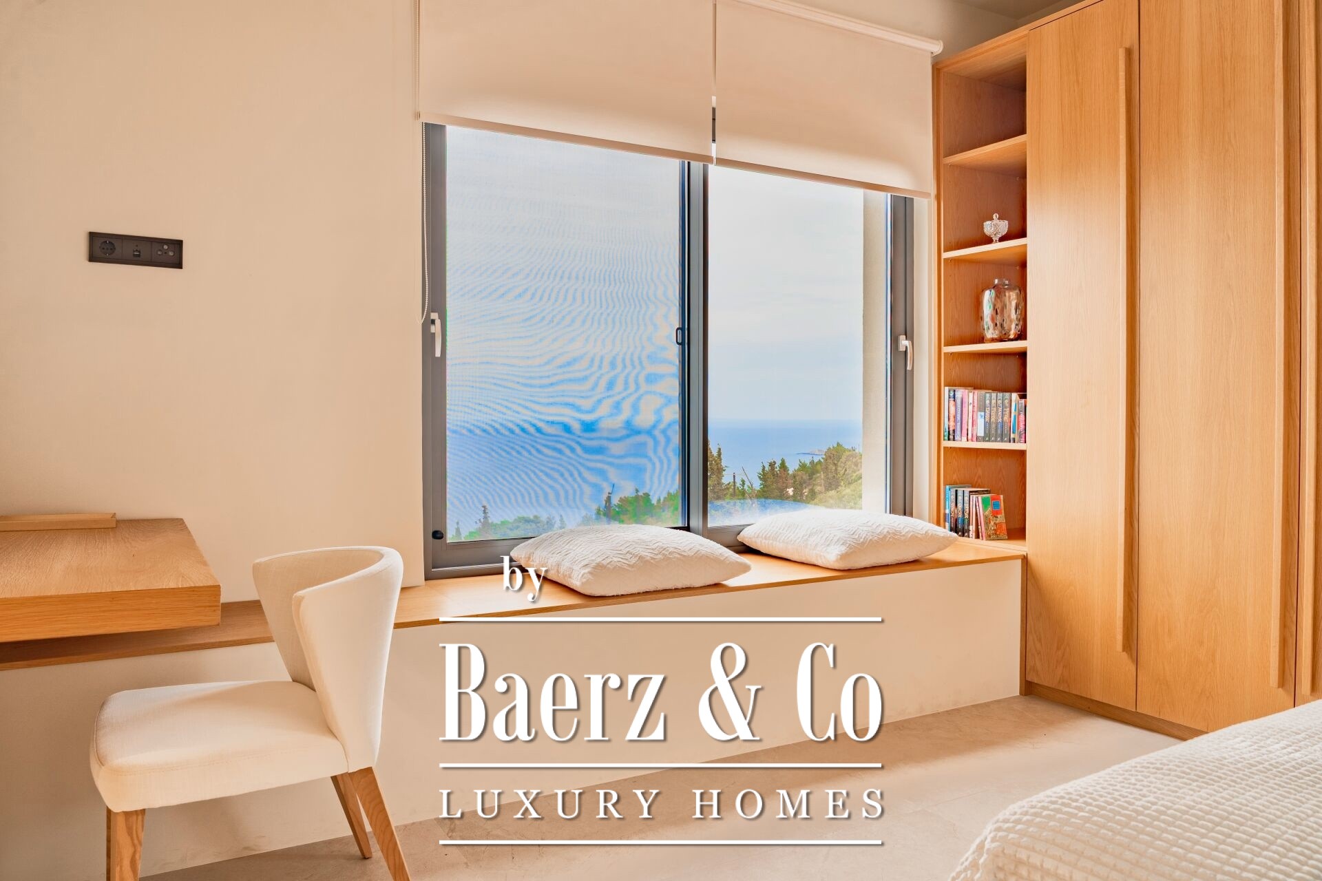 Set in a serene natural landscape, just 530 meters from the sea, this luxurious newly built villa with a total area of 237 sq.m. is situated on a private plot of 5,380 sq.m., offering unobstructed 180-degree panoramic views of the Ionian Sea, the surrounding mountains, and the lush greenery of Lefkada. Its location, close to the famous Egremni Beach, makes it one of the most privileged properties on the island.