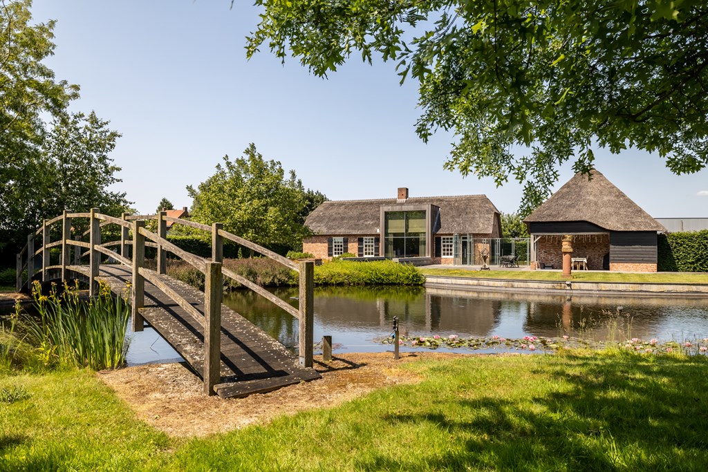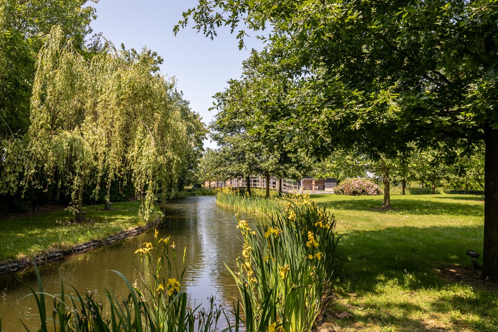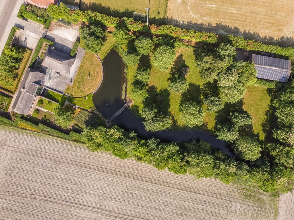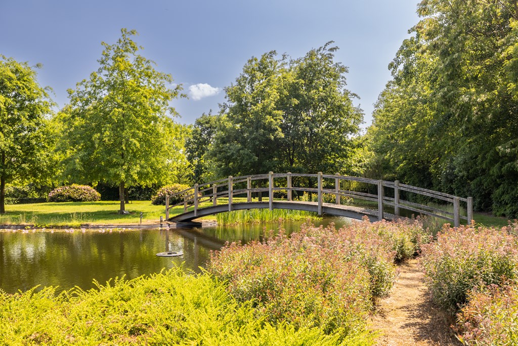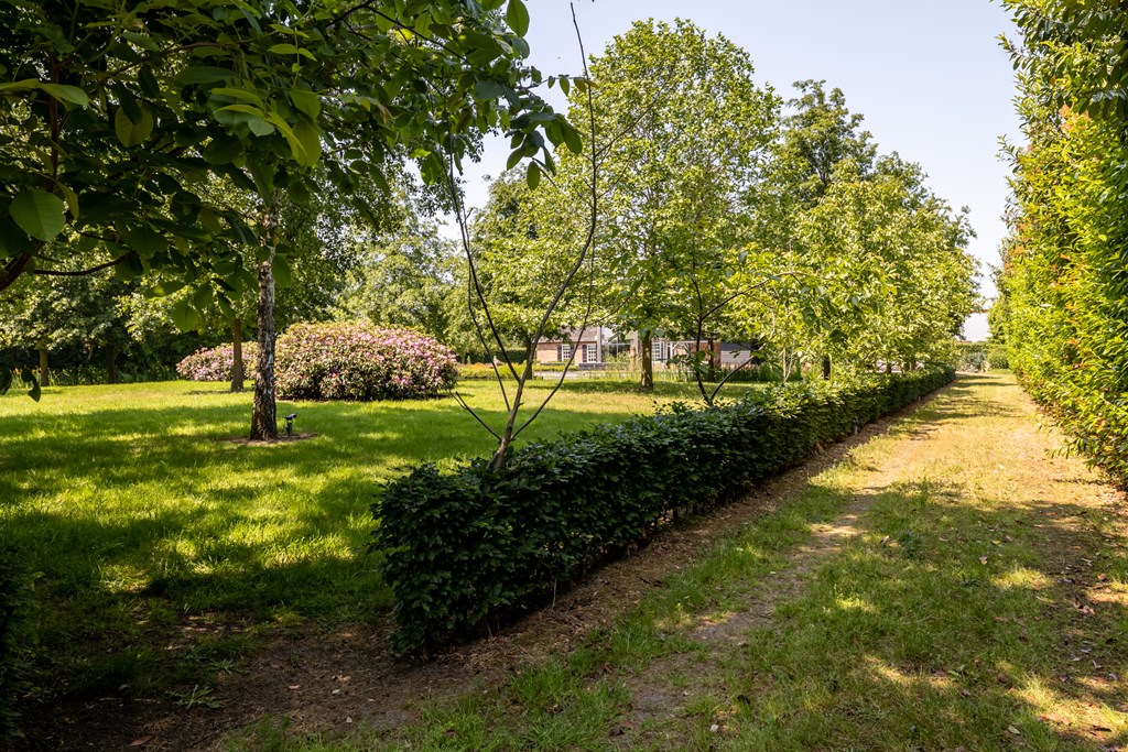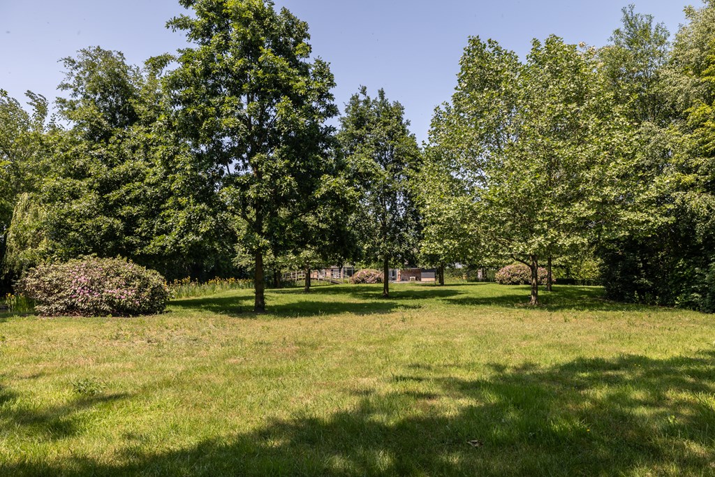 De onder architectuur aangelegde en geheel omsloten parkachtige tuin heeft ontzettend veel fijne plekjes waar u heerlijk van het buitenleven kunt genieten. Vanaf het grote terras met overkapping heeft u een mooi uitzicht over de grote vijver met fontein en loopbrug.