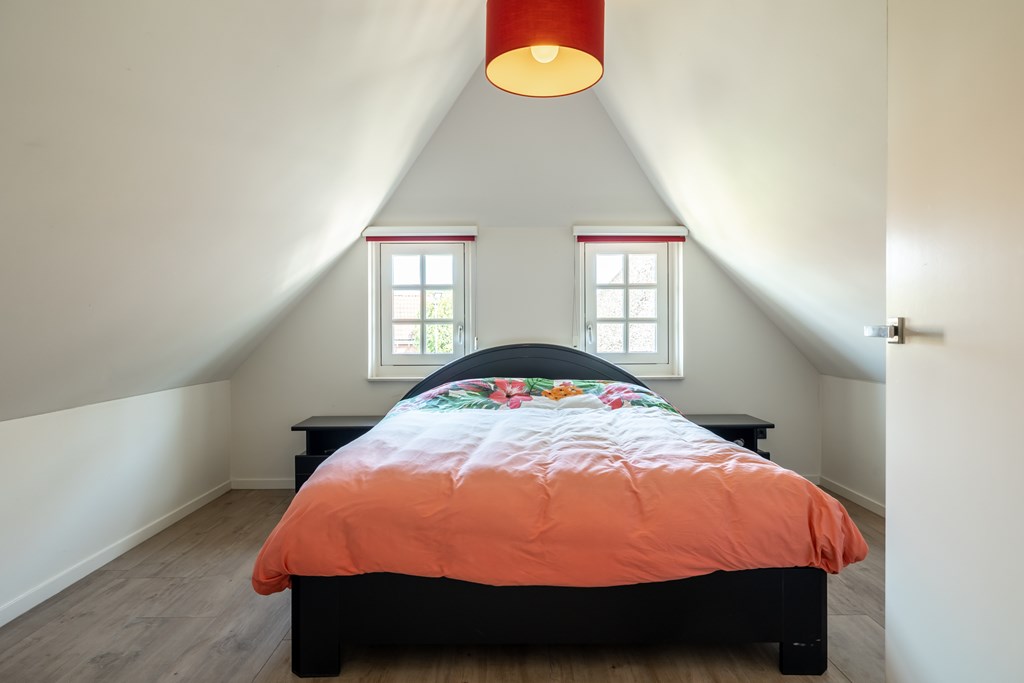 Op de eerste verdieping zijn aan beide kanten van het huis slaapkamers gecreëerd. Deze twee slaapkamers staan met elkaar in verbinding middels een “brug” vanwaar u een prachtig uitzicht heeft over de tuin. Doordat de brug is voorzien van een balustrade van glas heeft het bouwelement een luchtig karakter.