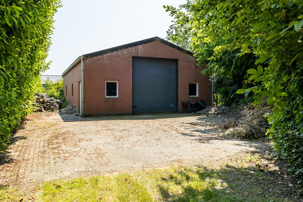 Achter op het perceel staat een grote schuur met op het dak maar liefst 64 pv-panelen die volledig uit het zicht van het woonhuis zijn onttrokken. Deze schuur kan na een aanpassing uitstekend fungeren als bijvoorbeeld een paardenstal om hobbymatig paarden aan huis te houden. Een gedeelte van de tuin kan ingericht worden als paardenweide.