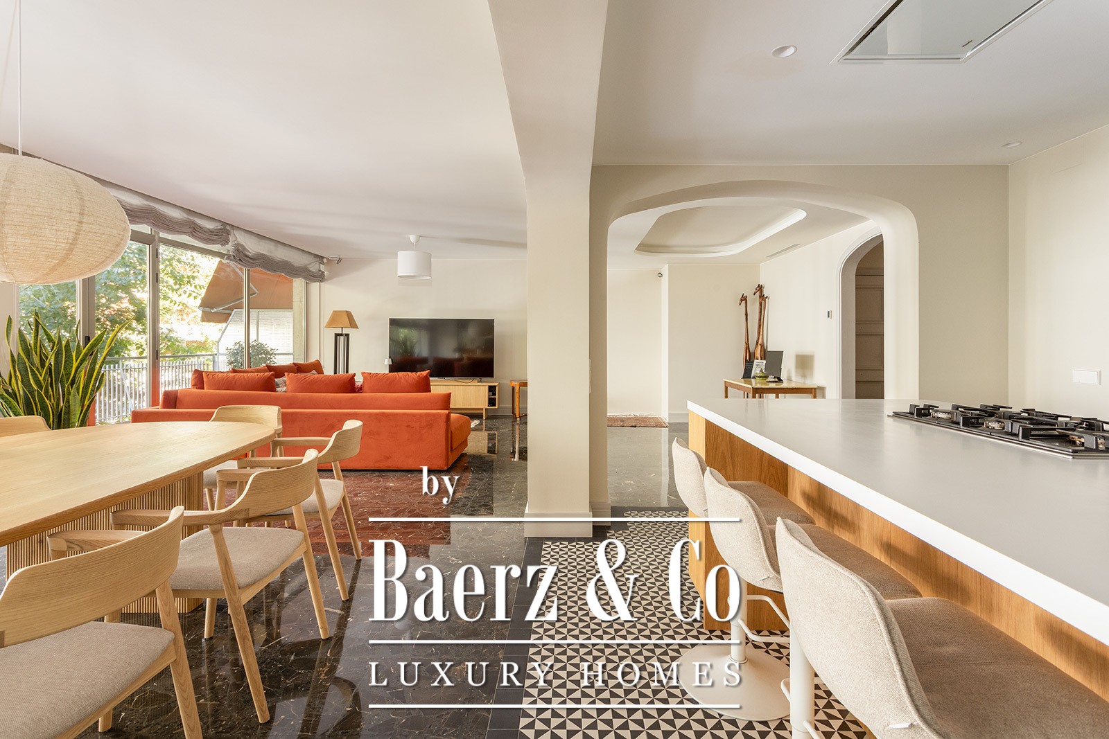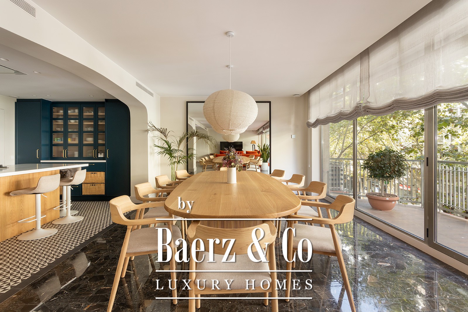 This luxury apartment Barcelona Plaza Kennedy offers a rare sense of scale and serenity within one of the city’s most sought-after enclaves. Occupying 250 m², the residence opens to an expansive 200 m² east-facing terrace, a secluded stage for luminous mornings or intimate gatherings with family and friends. The open-plan living and dining area flows into a modern kitchen, refined yet inviting, where light and spatial clarity take precedence.