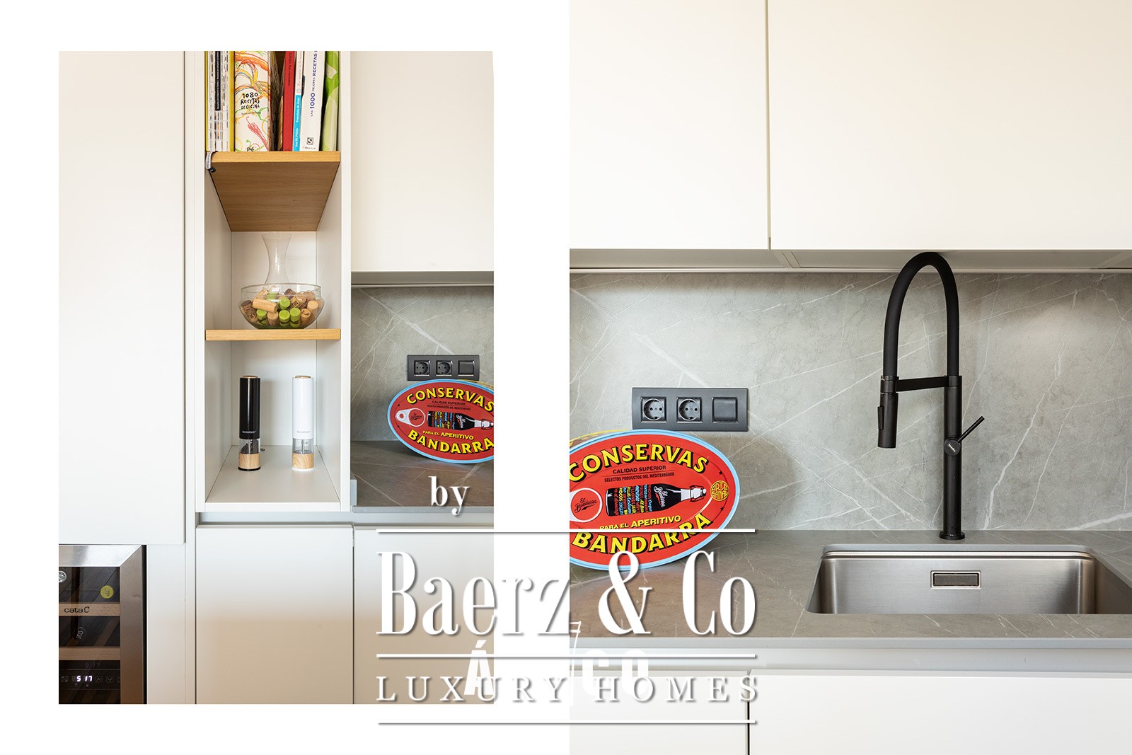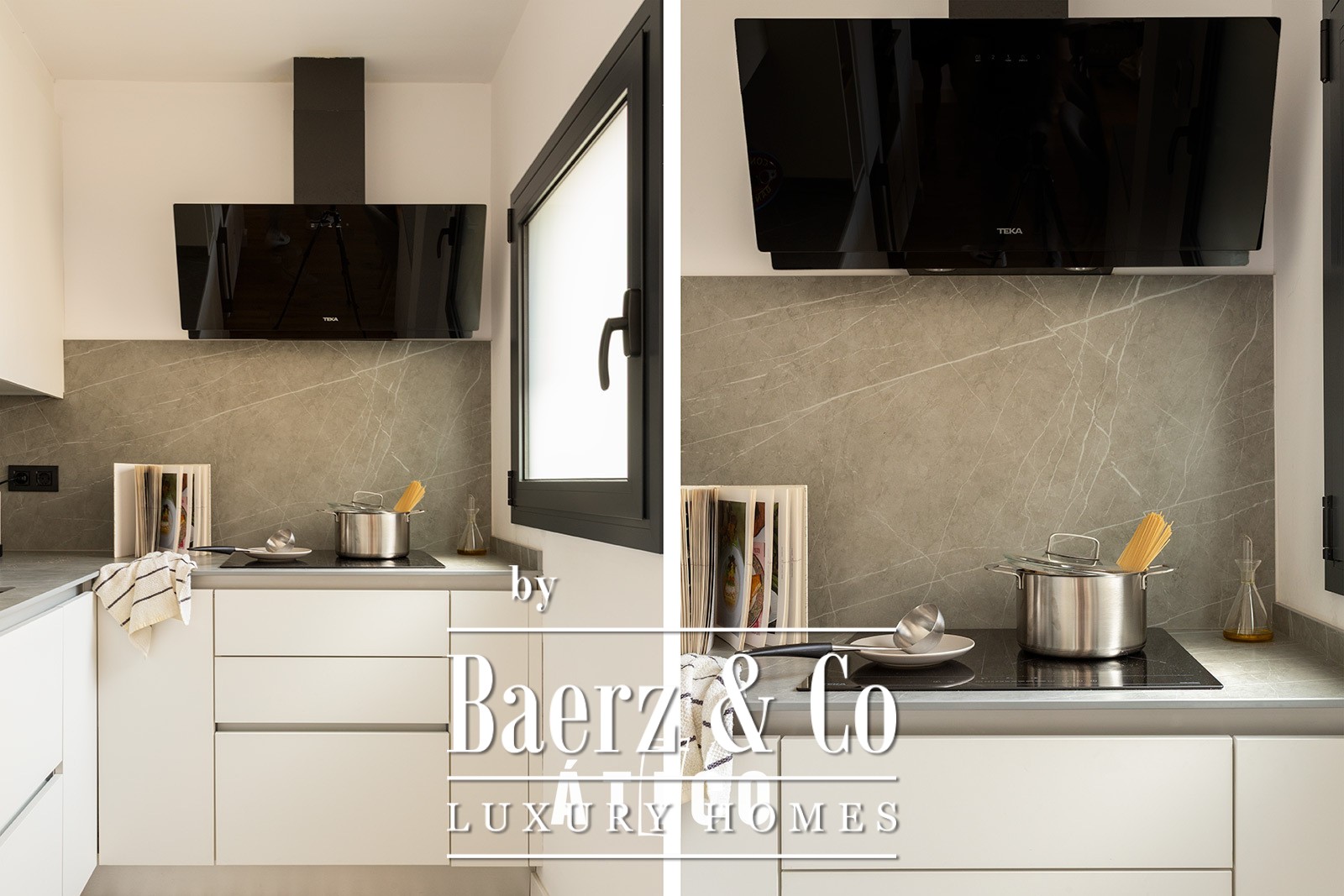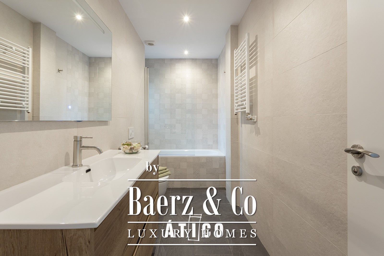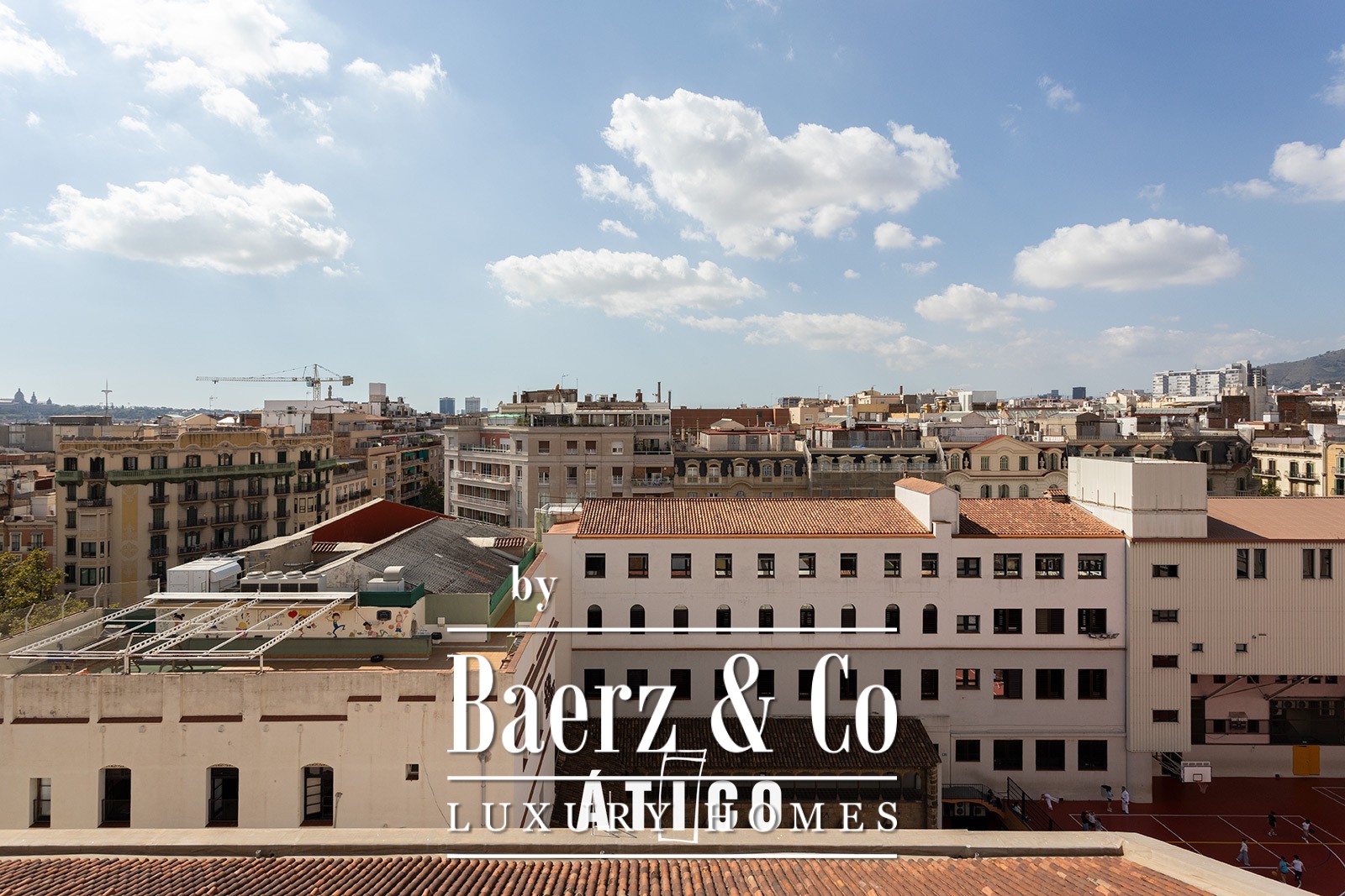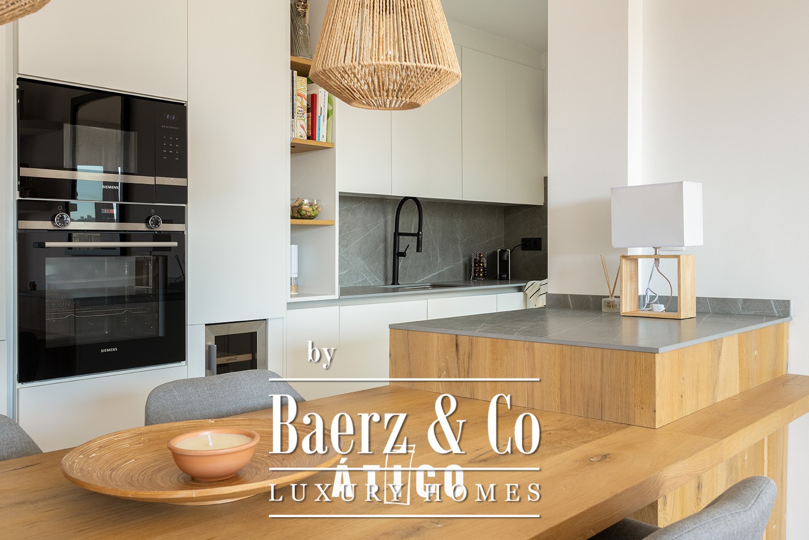 In the Eixample Izquierdo, a step away from Calle Enric Granados, known for its bars, terraces and cosmopolitan atmosphere and just six minutes' walk from the vibrant and elegant Rambla Catalunya, you will find this 104 m² penthouse plus 32 m of terraces. An authentic urban refuge that combines modern comfort with the charm of Barcelona life. Practically new and with an impeccable distribution, this home has been designed to enjoy every corner. The heart of the house is the large living-dining room with open kitchen, an open and welcoming space that extends towards a magnificent 16 m² terrace facing the sea. Enjoying a majestic view that combines the grandeur of the National Palace with the serenity of the Montjuïc mountain. An ideal place to organize dinners, have a drink in the evening or simply let yourself be lifted by the tranquility of the elevated environment. The main suite, spacious and bathed in natural light, has an elegant dressing room and an en suite bathroom. From it there is direct access to a second terrace of 14m², facing Tibidabo and the emblematic "island" of the Eixample, an icon of Barcelona urbanism. This double orientation provides sun throughout the day and unobstructed views that fill the space with calm and clarity. At night, the illuminated silhouette of Tibidabo adds a special charm, turning this stay into an authentic refuge with a serene and privileged atmosphere. The house is completed by a second double bedroom, with natural light and a second bathroom with bathtub, ideal for offering comfort and privacy to guests or to adapt to different needs. The kitchen, modern, functional and bathed in natural light, has custom-made furniture and is fully equipped with high-end appliances, as well as a wine bar, ideal for those who value details and enjoy the art of entertaining at home. The finishes reflect the quality and care