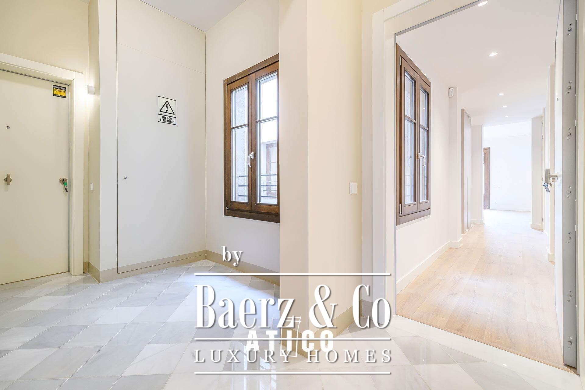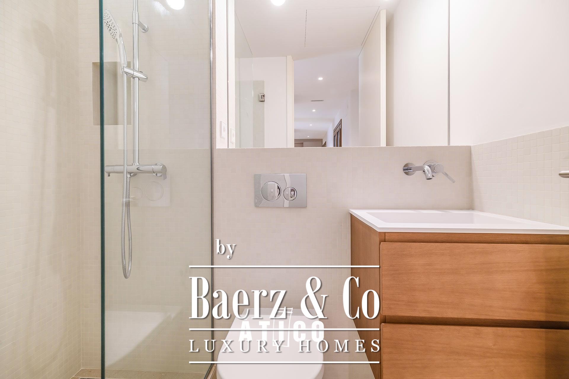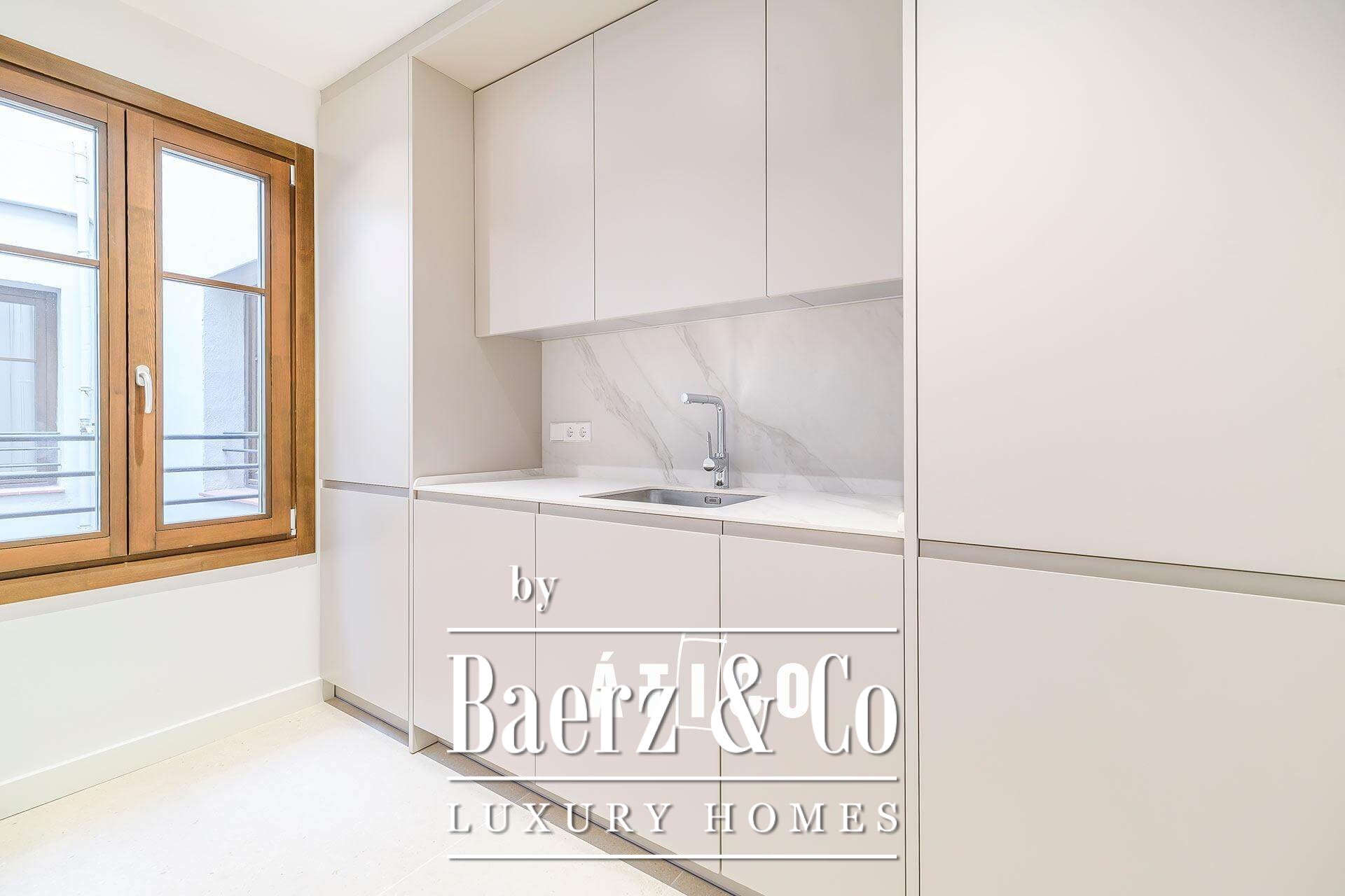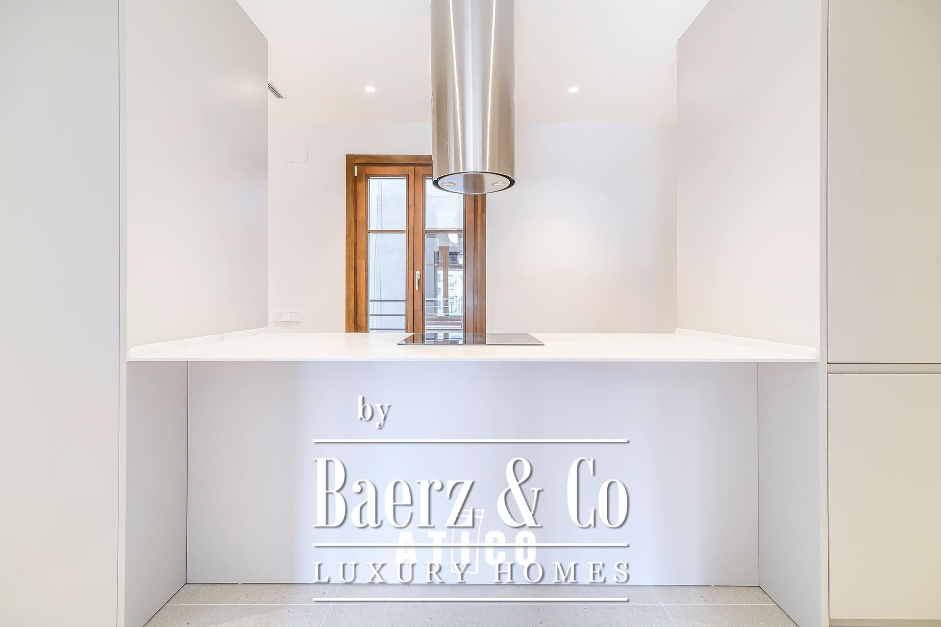Penthouse Barcelona in the Golden Square sets the standard for refined urban living. This newly renovated residence spans 103.70 m², arranged with balance and a sense of space that welcomes immediate calm upon entering. The penthouse offers two bedrooms and two thoughtfully designed bathrooms, each space echoing an attention to detail that extends from the choice of flooring to the custom woodwork. A modern kitchen blends practicality and aesthetic intent, providing generous storage while maintaining clean architectural lines.