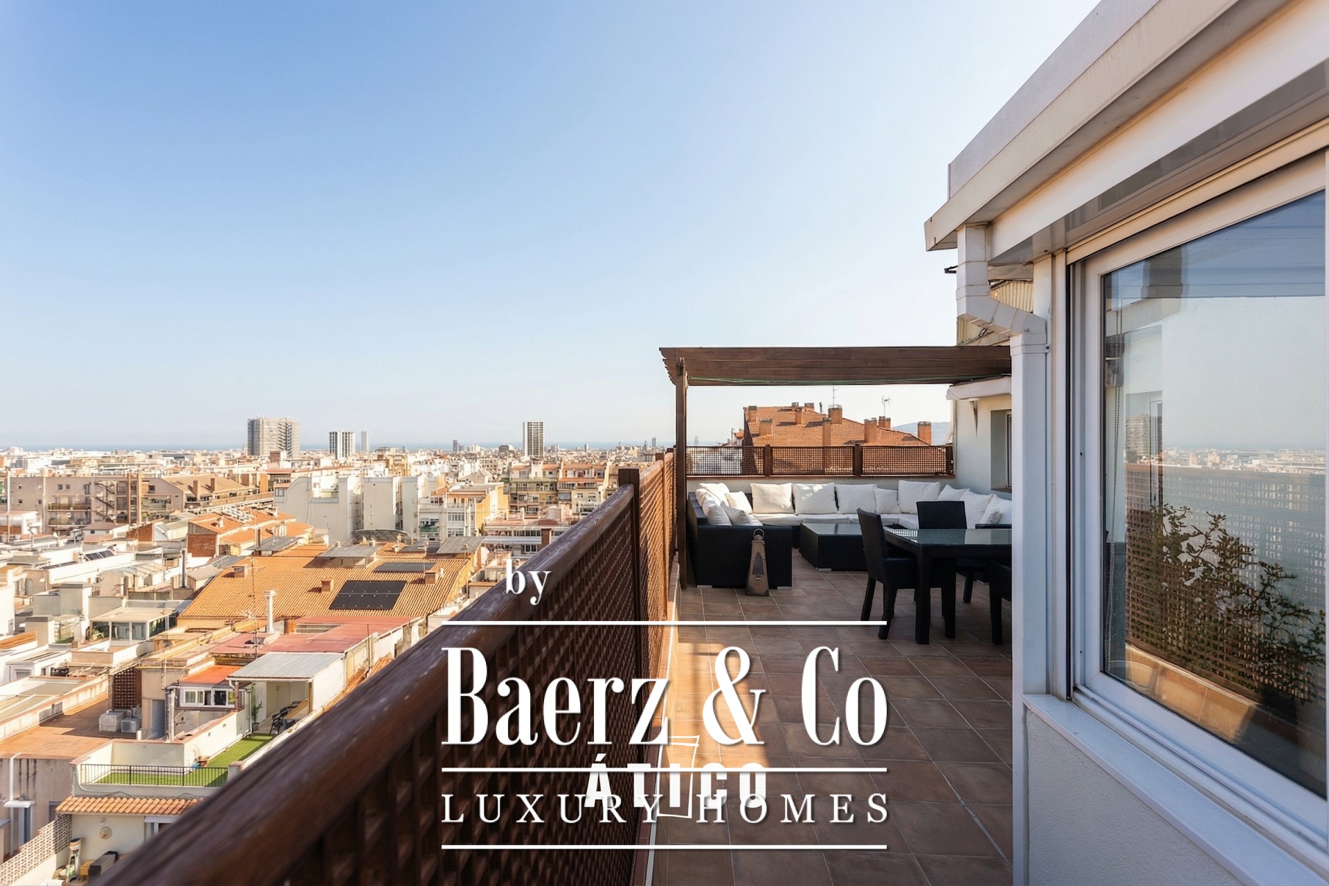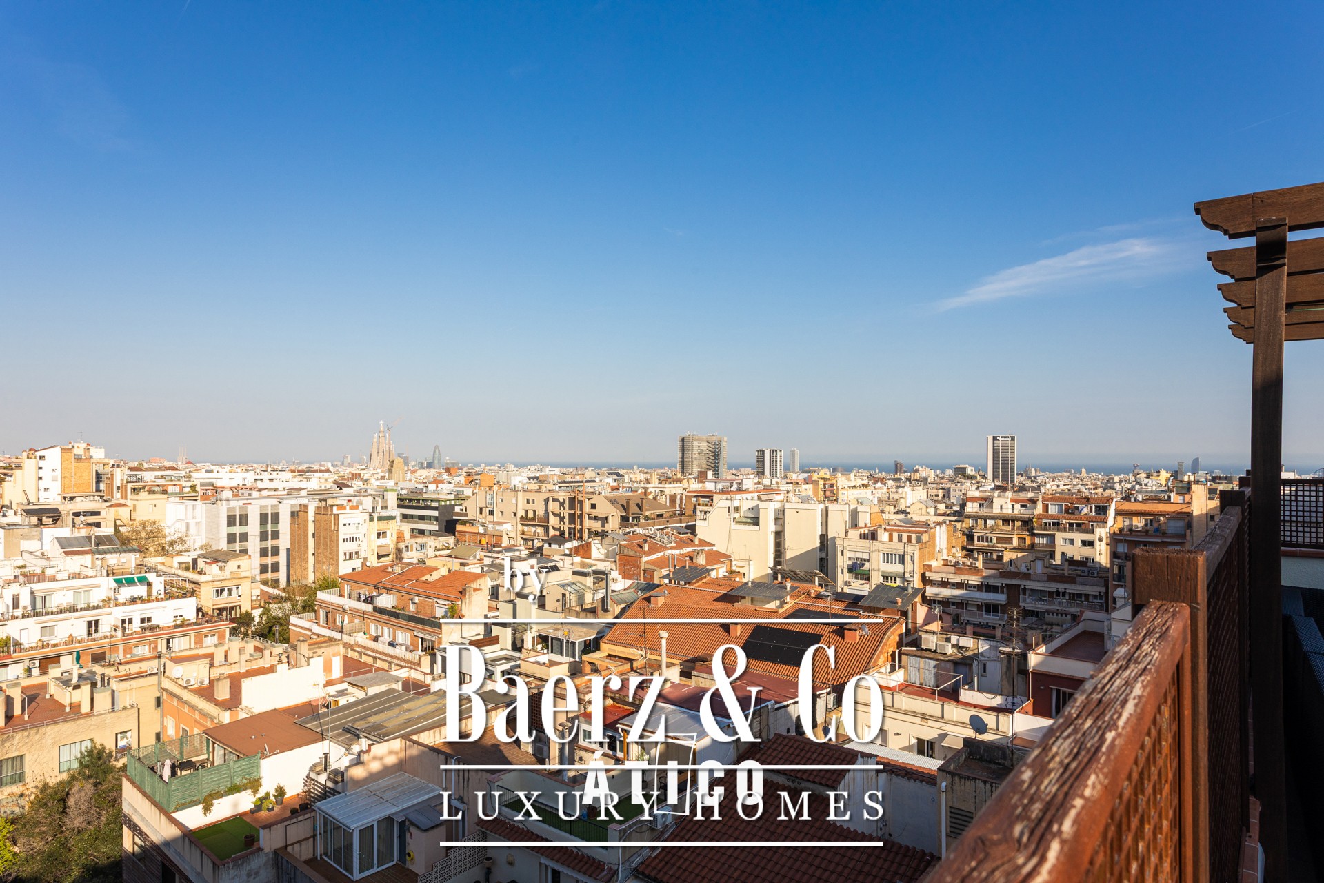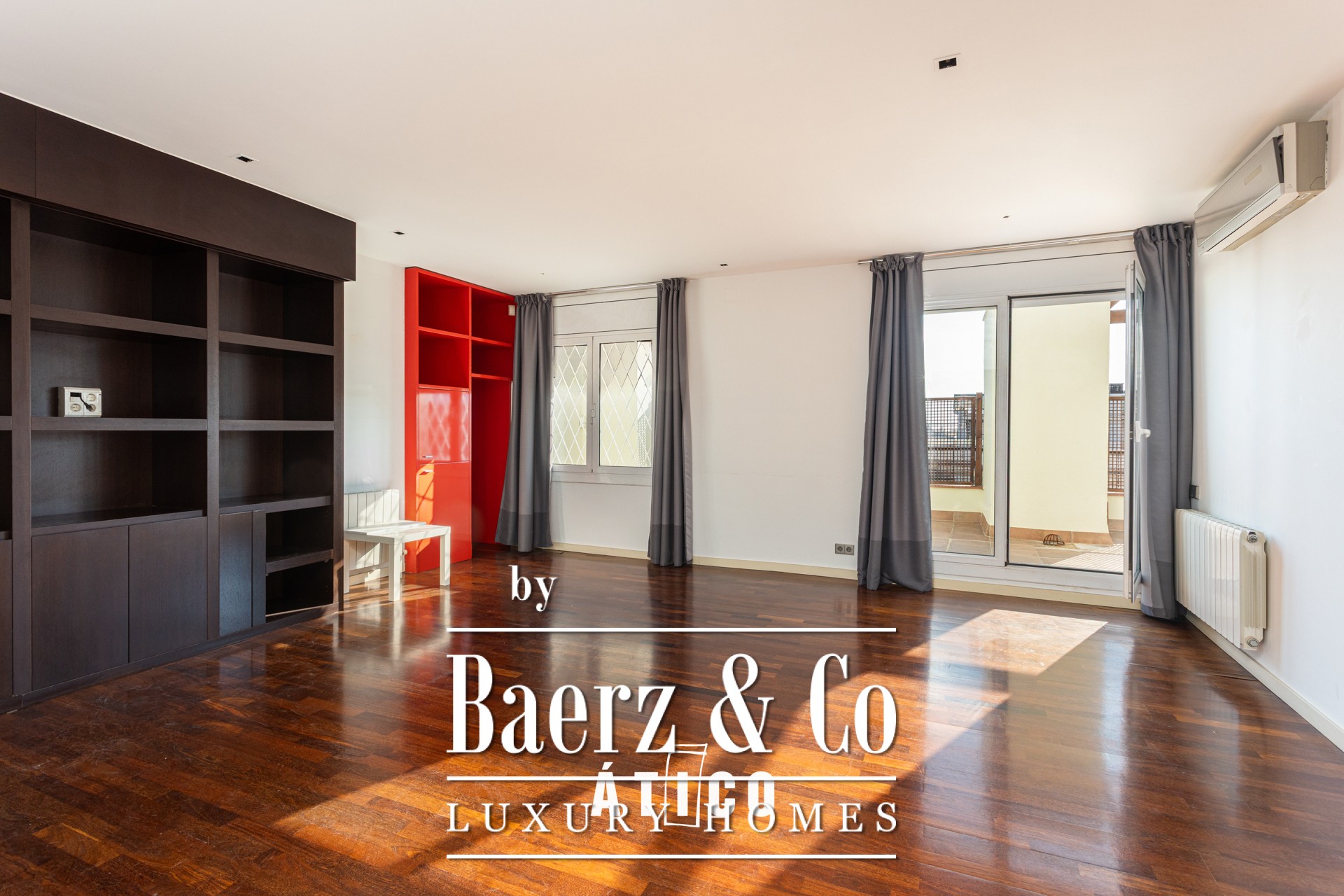 Penthouse apartment Barcelona is set in the upper part of the city, offering an elevated perspective and a sense of tranquil privacy. This exclusive residence stretches across 180 m² and is distinguished by spacious rooms that are bathed in natural light, a quality enhanced by its unique orientation. The layout includes three suites, each suffused with daylight, and a luminous living-dining area designed for gatherings or relaxation.