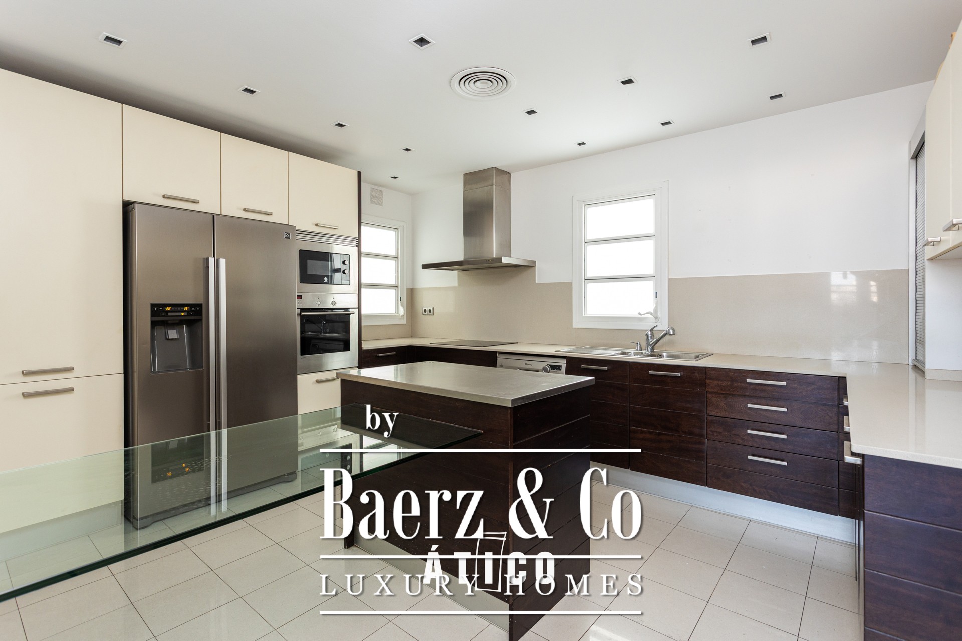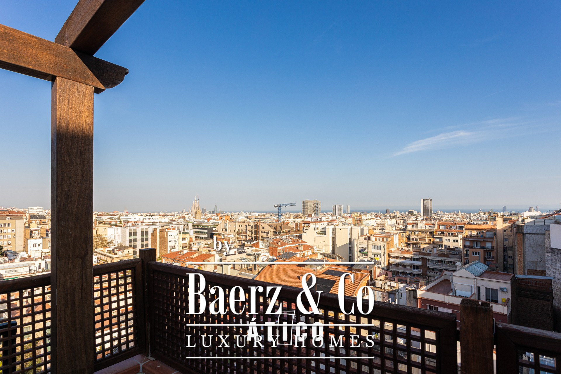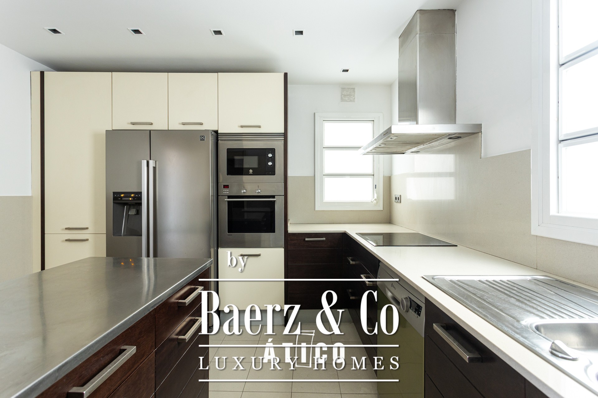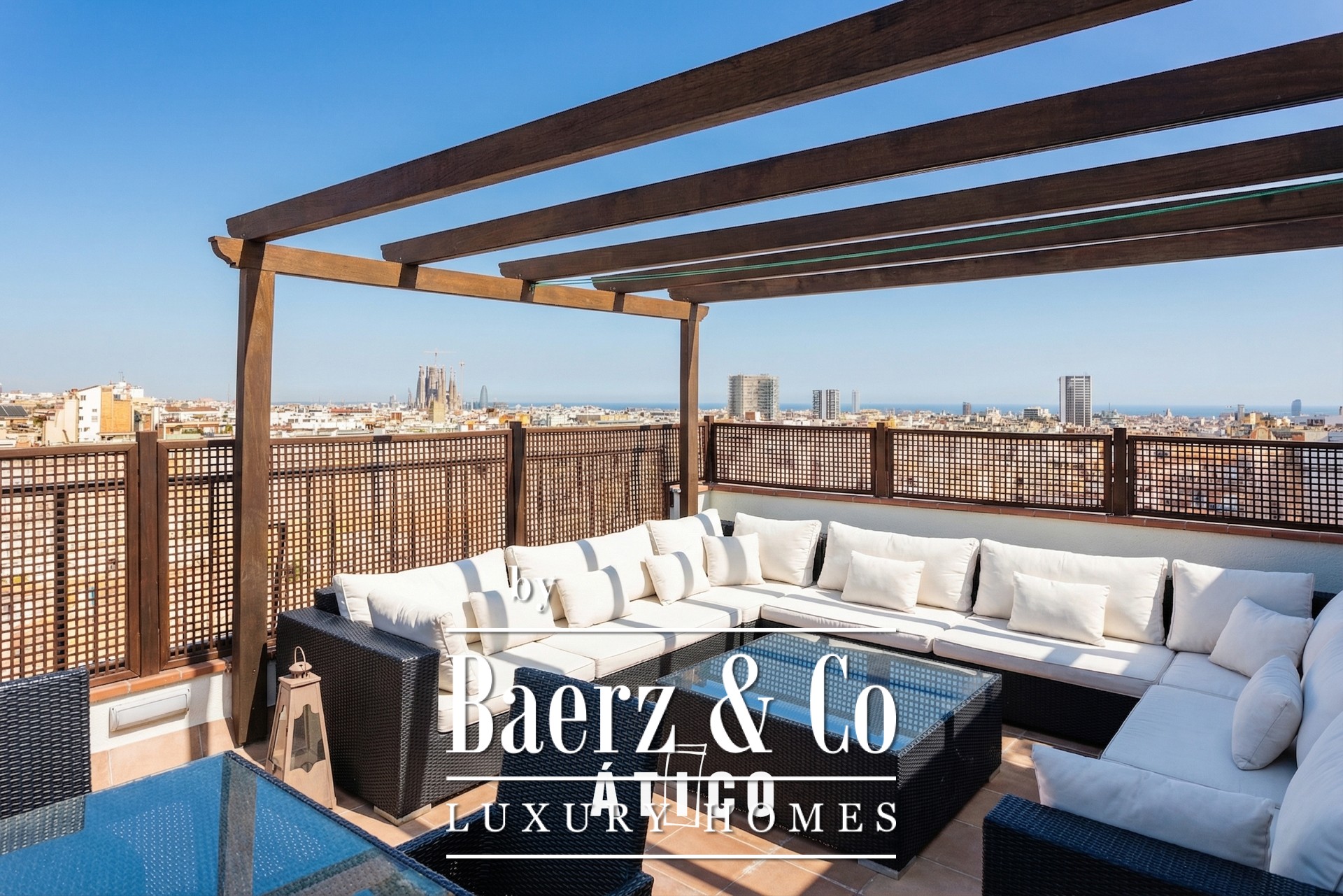 Penthouse apartment Barcelona is set in the upper part of the city, offering an elevated perspective and a sense of tranquil privacy. This exclusive residence stretches across 180 m² and is distinguished by spacious rooms that are bathed in natural light, a quality enhanced by its unique orientation. The layout includes three suites, each suffused with daylight, and a luminous living-dining area designed for gatherings or relaxation.