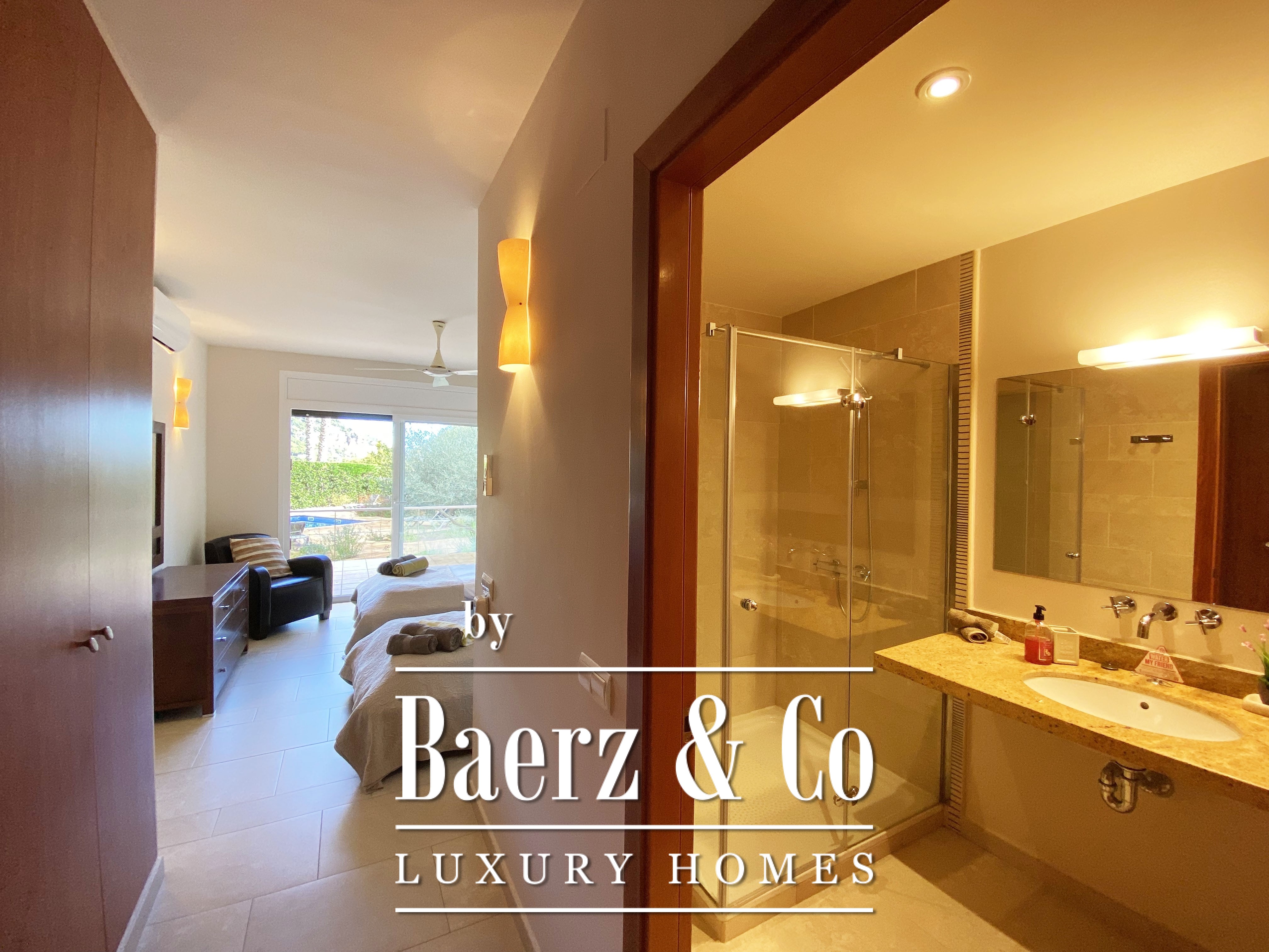 Upstairs, a sitting area leads to a solarium terrace, crafted for quiet moments and panoramic sea views. Outdoors, the 15 x 6 metre swimming pool becomes a central feature, inviting relaxation under Mediterranean skies. The villa’s recent installation of a solar panel system in 2024 enhances energy efficiency, while a tourist licence offers flexibility for discerning investors.