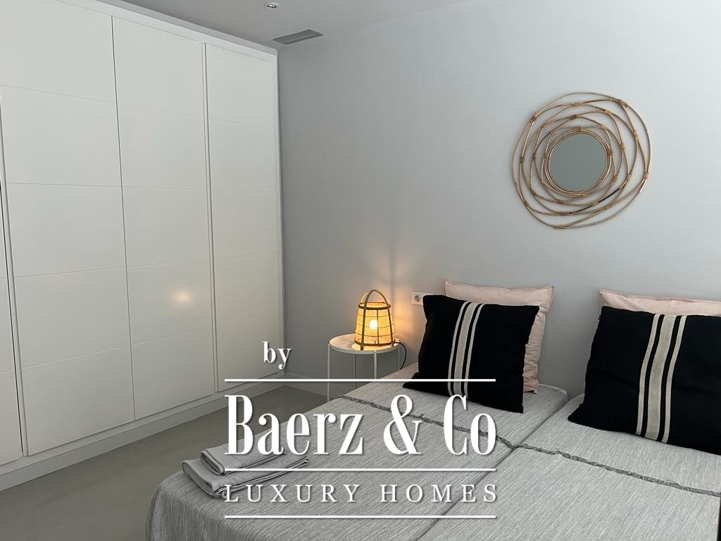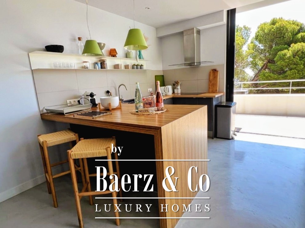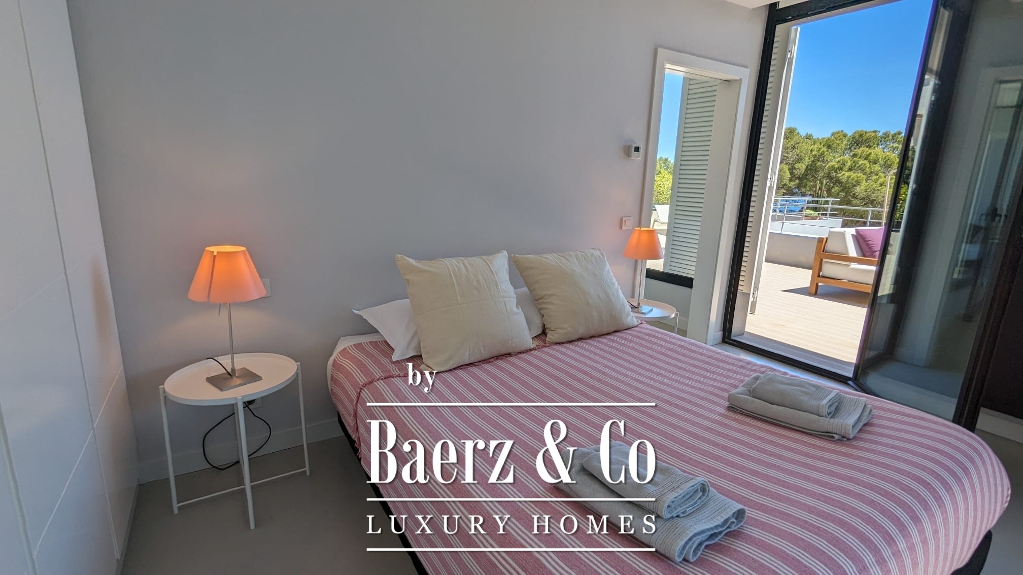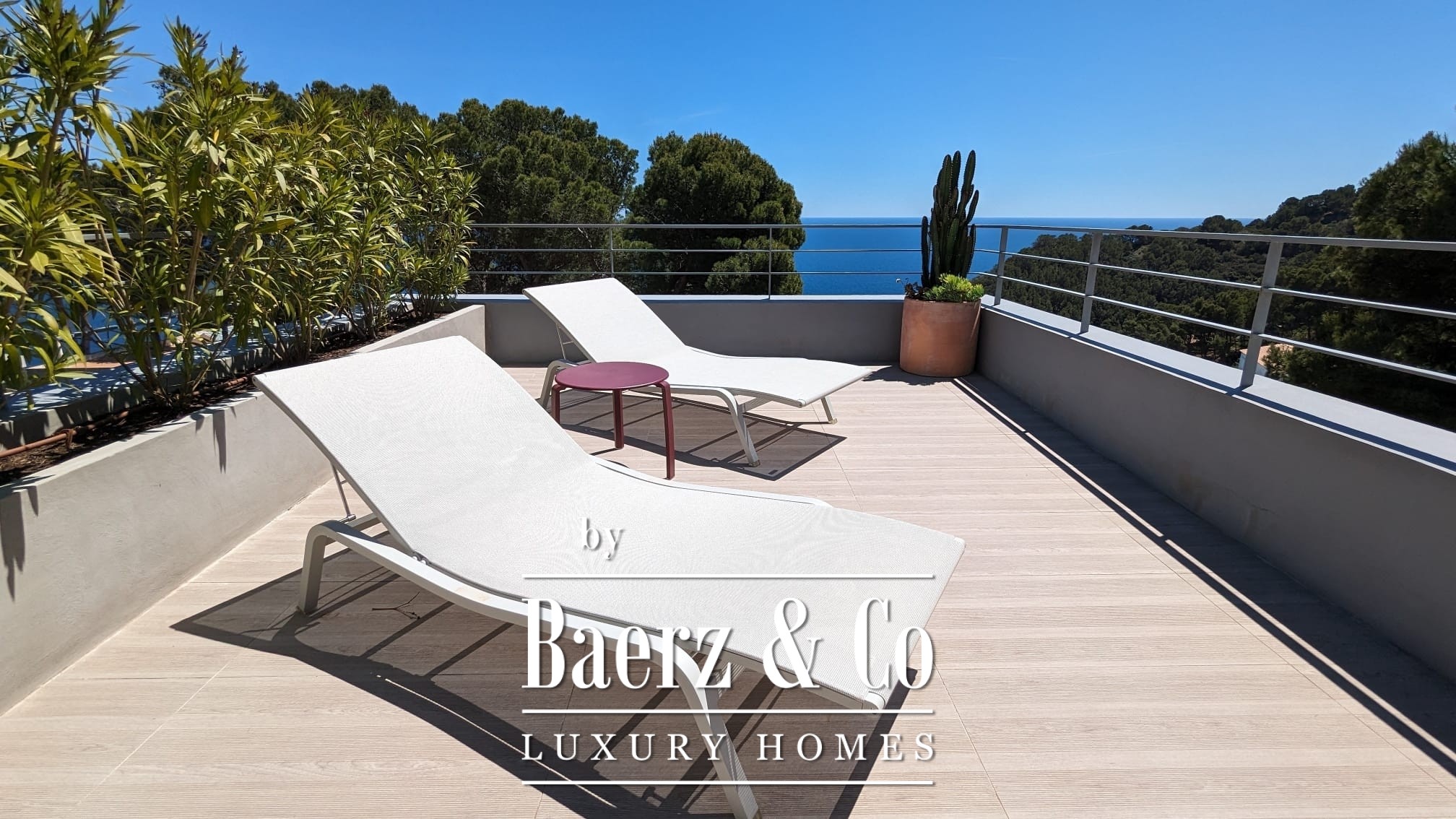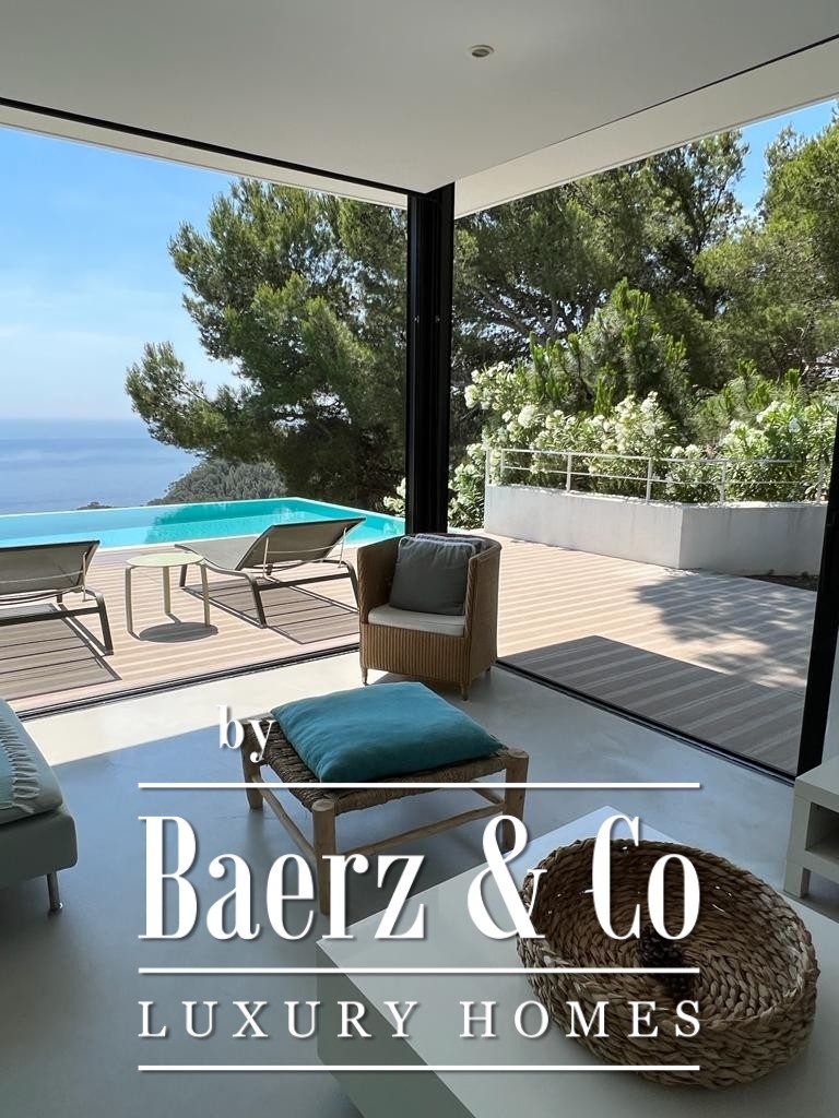 The lower level features two double bedrooms and a bathroom, each space composed for comfort and harmony. Upstairs, two further double bedrooms share a bathroom, and both open to a 50 m² terrace commanding exceptional sea views.