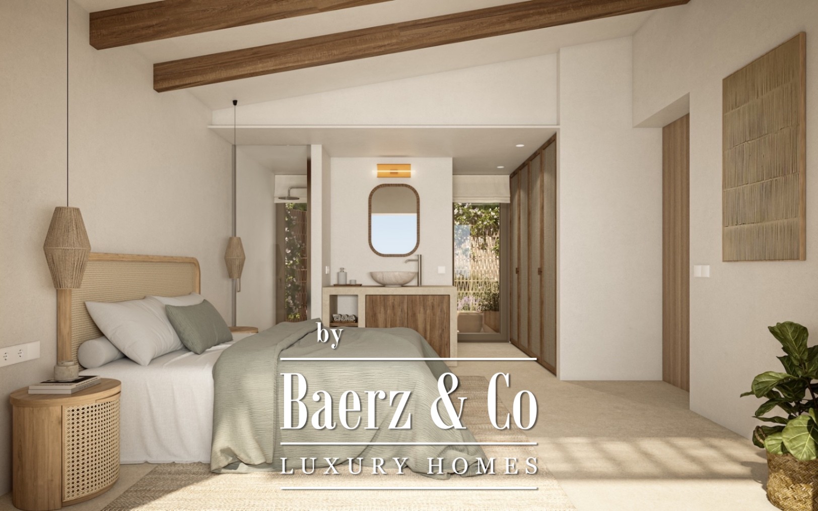 Villa Benissa is an invitation to experience understated coastal ease, only one kilometer from the quiet sands and local amenities of La Fustera. This villa in Benissa has been carefully renovated, transformed into a Mediterranean sanctuary where natural textures and measured simplicity create a lasting sense of comfort. Sea views are a constant companion, framed by generous terraces and sculpted Mediterranean gardens across a flat 860 m² plot.