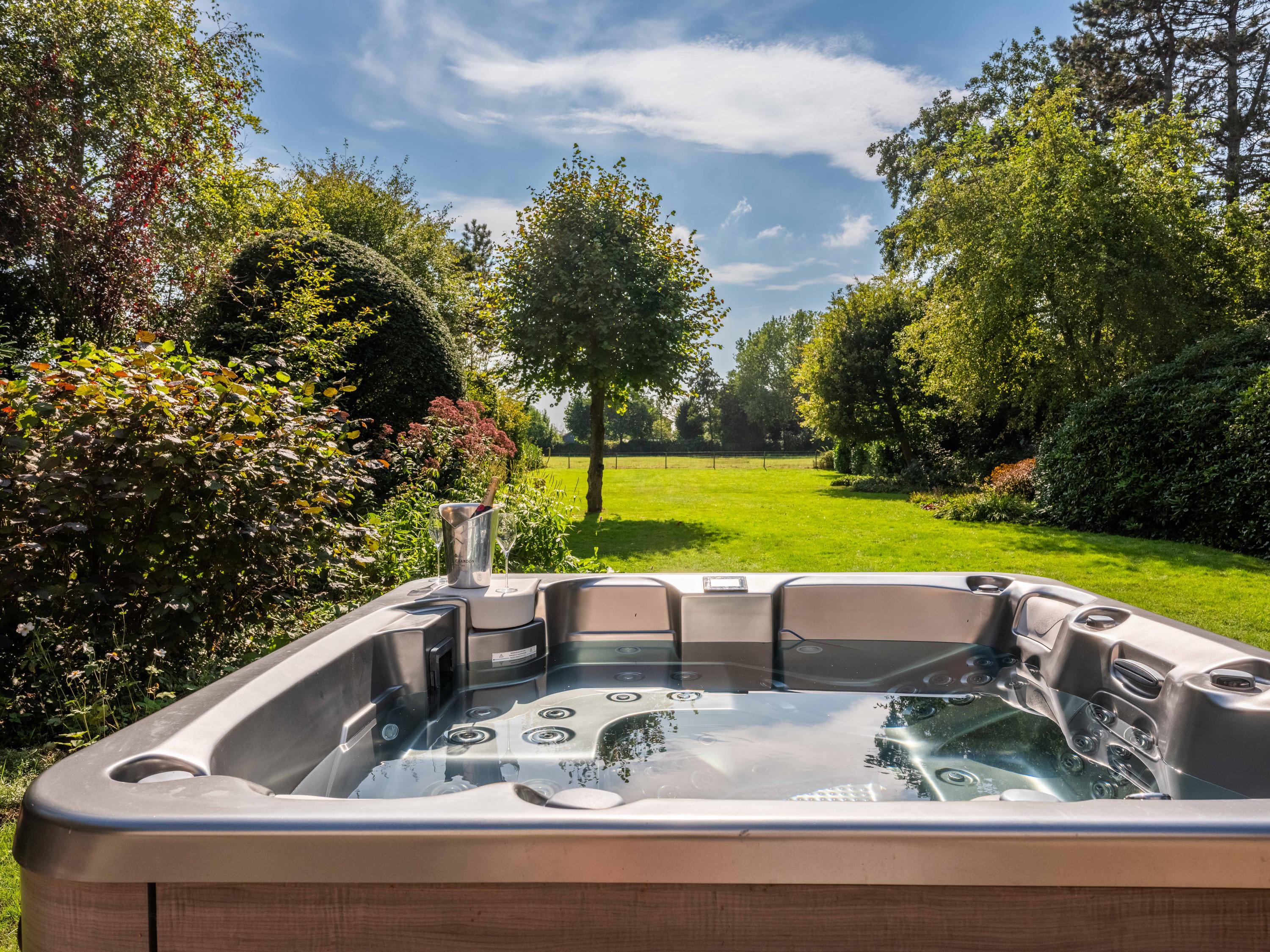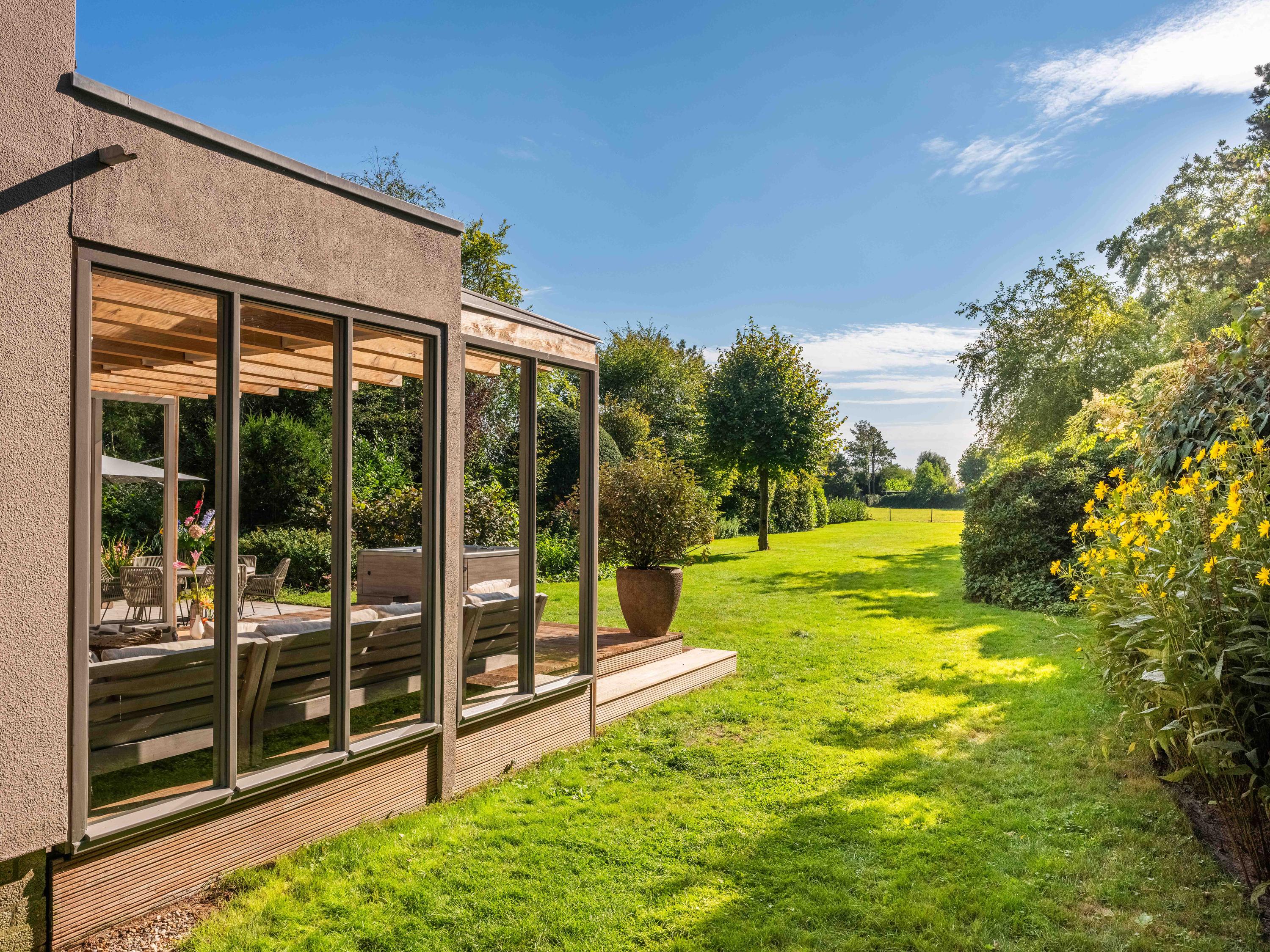 The modern open kitchen has an island where you can sit together. From here again a beautiful view of the greenery.French doors and a covered heated terrace bring the outside in.The kitchen is equipped with various appliances including a quooker, refrigerator, freezer, steam oven, wine cooler, warming drawer and dishwasher. Cooking is available on the large stove with 4 gas burners, a teppanyaki plate, deep fryer and double oven.
