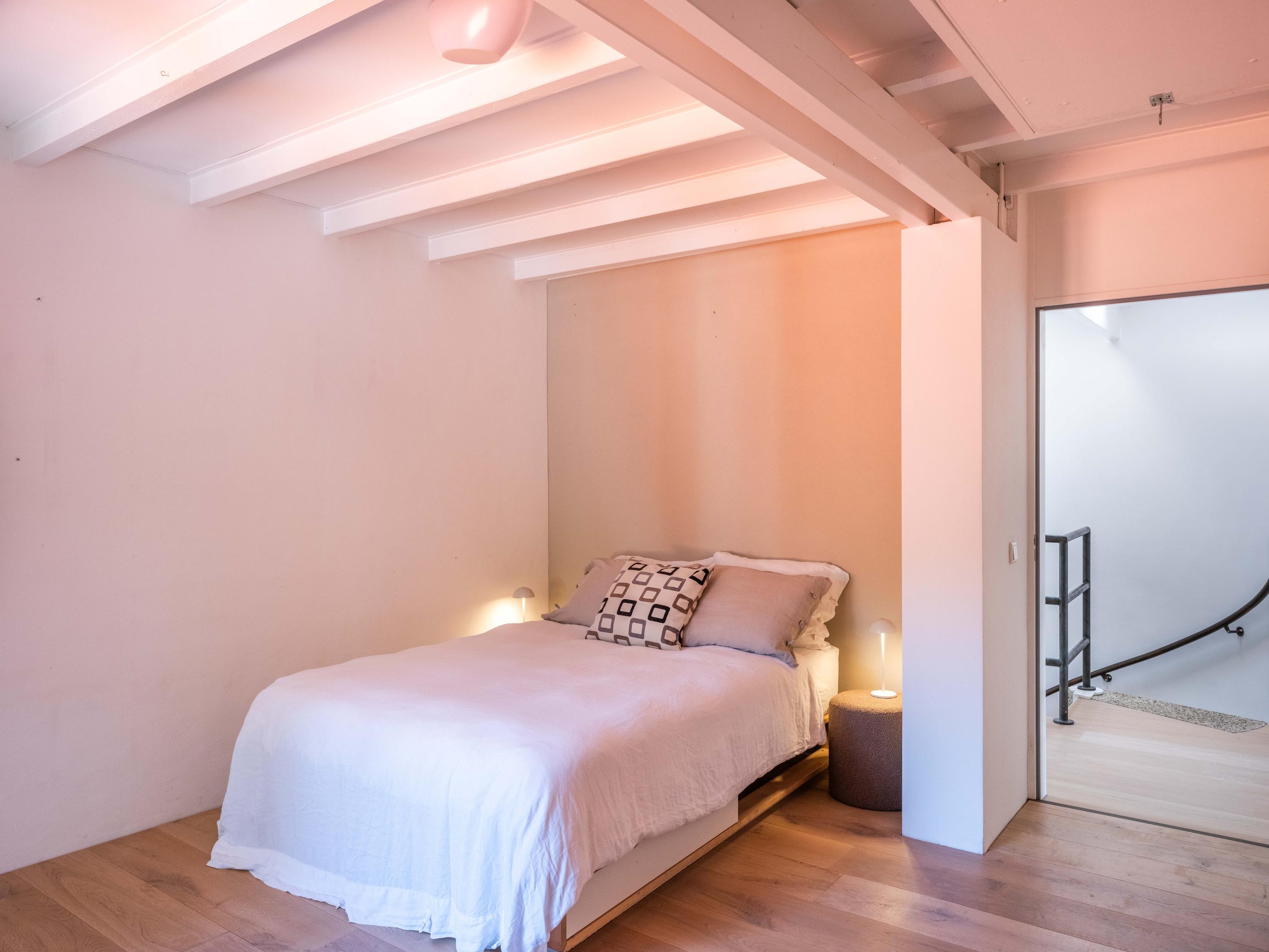 Also the technical room is located on this floor, besides the heat pump, boiler and water softener we find here the connections for the washer and dryer.