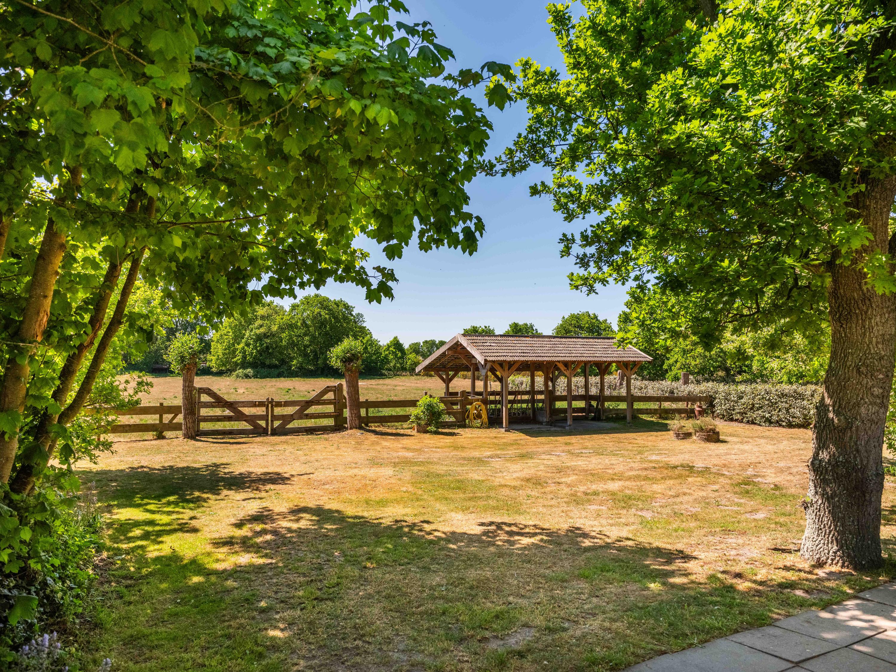 At the rear of this spacious plot is its own large meadow with sheltered stable. Ideal for letting horses run free, for example.