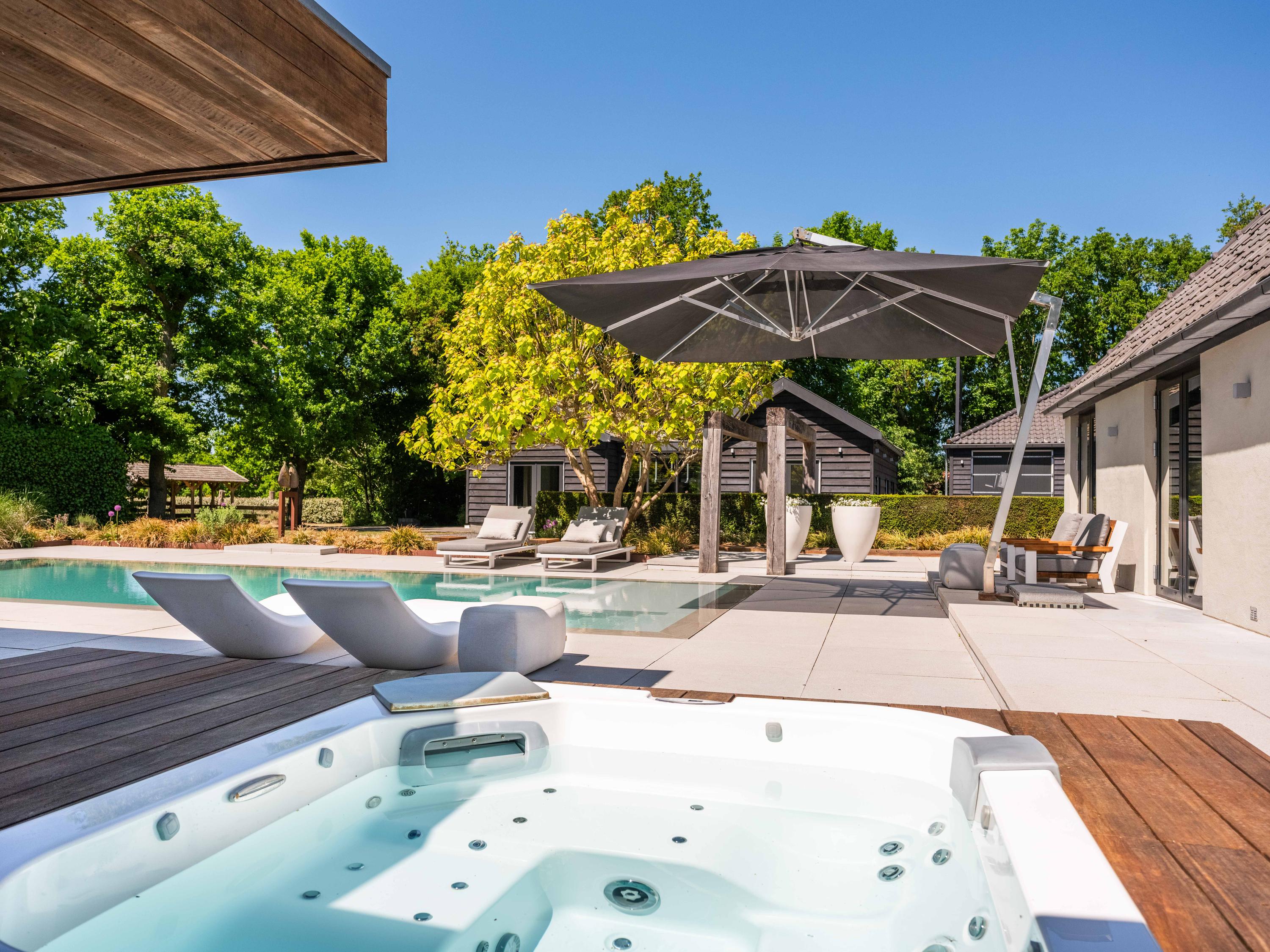 Dreaming of luxury and rural living in a unique location? This beautifully renovated farmhouse offers it all. Located in green, quiet surroundings and featuring a generous plot with swimming pool, a private meadow, a multifunctional outbuilding for office, workshop or home for carers - au pair and a spacious garage. This is a property that does not compromise on luxury or living space. This property is truly unique. This is high-level living, with all facilities on the ground floor and plenty of opportunities for work, leisure and hospitality. The property has underfloor heating for extra comfort and has energy label A.