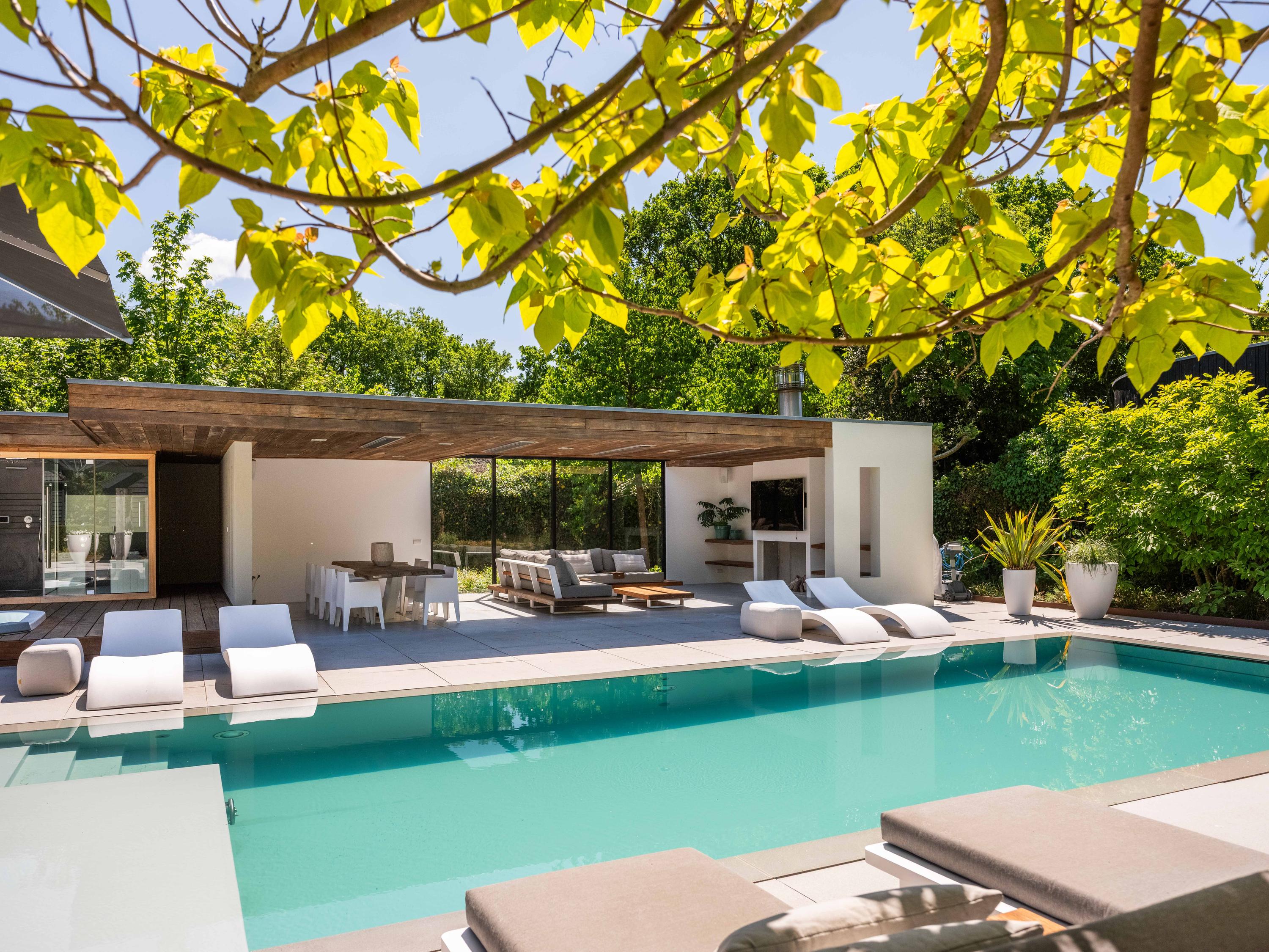 Next to the garage is an outbuilding that has several facilities and can be used for various purposes. This cottage also offers beautiful views over the plot and the swimming pool.